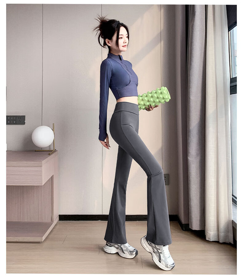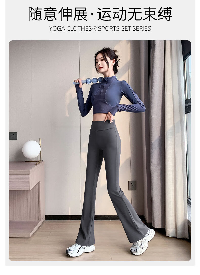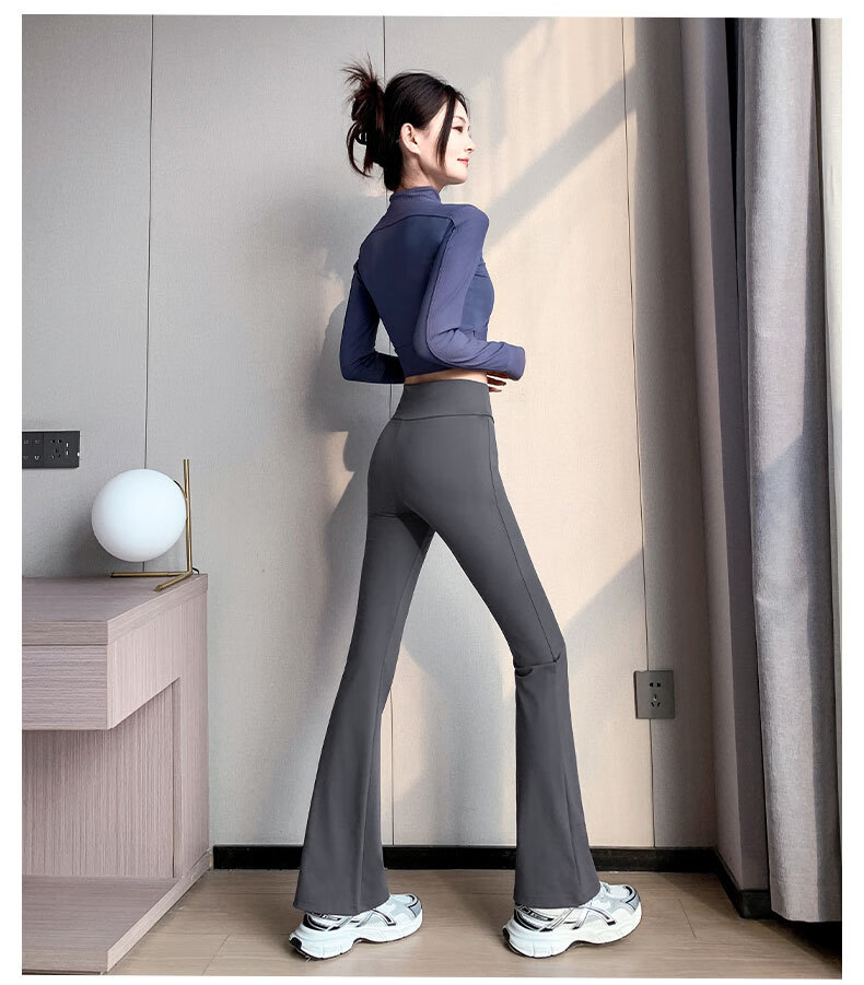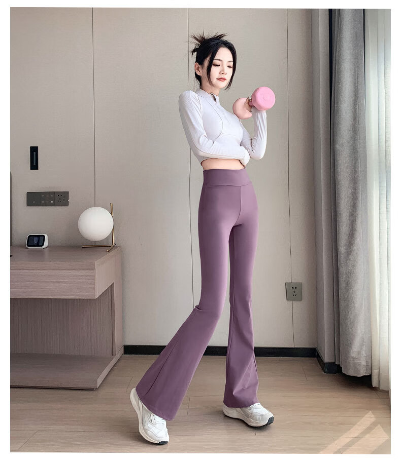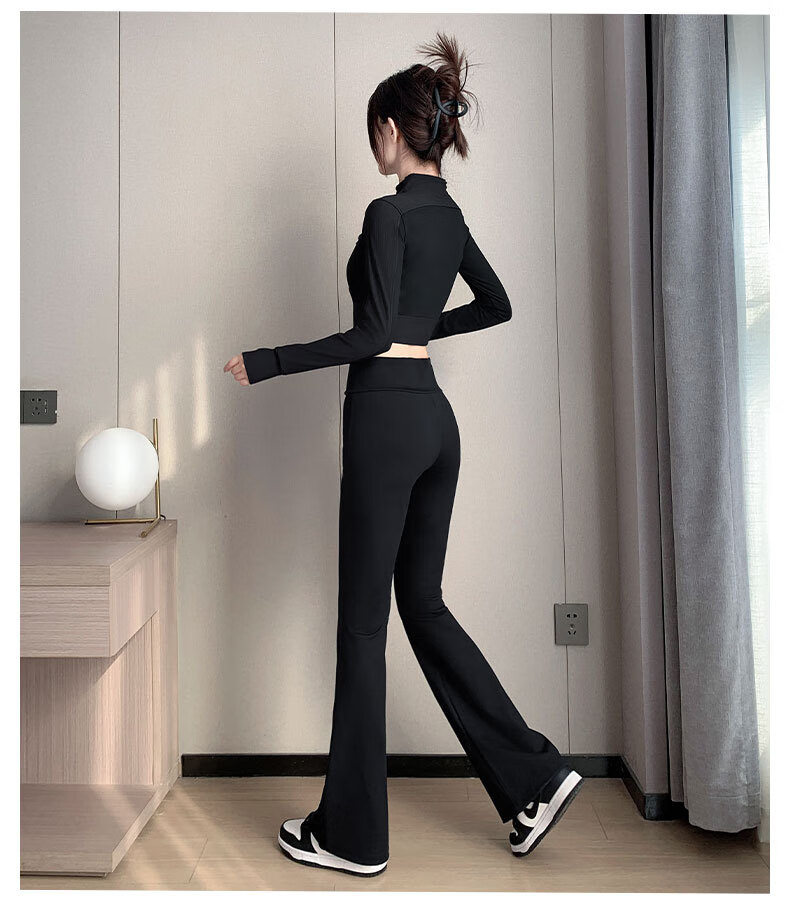 LULU CENTURY Pilates Yoga Wear Suit Women's Quick-Drying Breathable Fitness Clothing Running Sports Quick-Drying High-Waist Micro-Bell Pants Women's Flared Pants Black XL