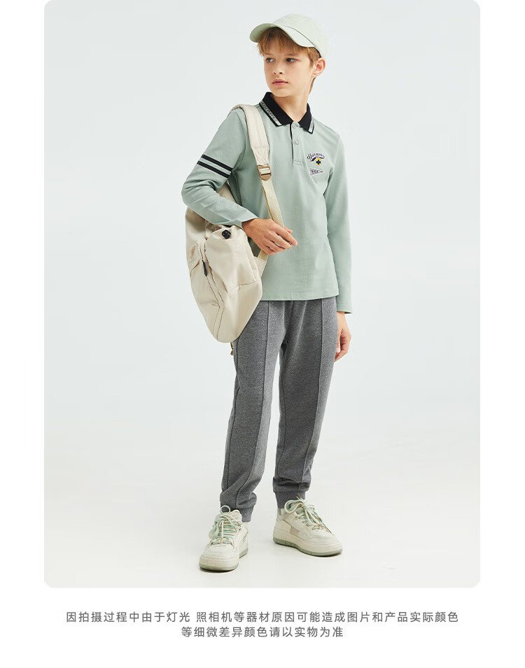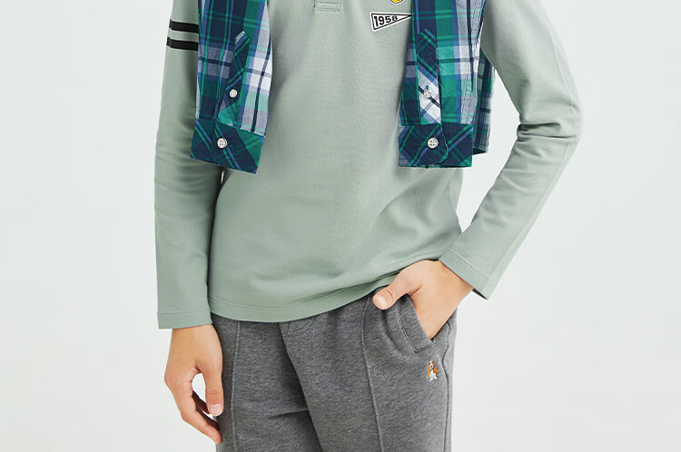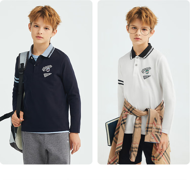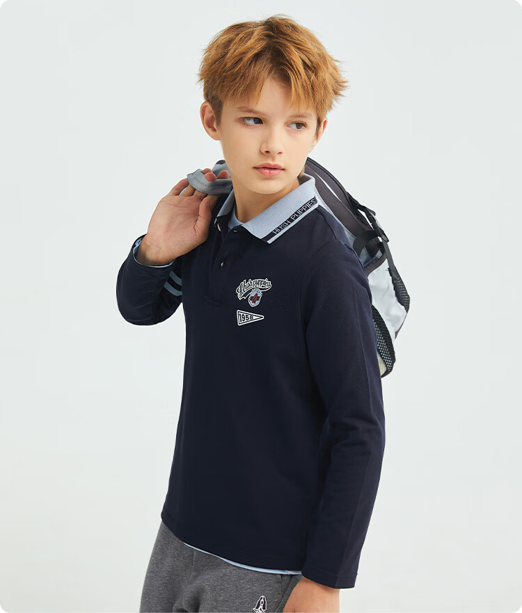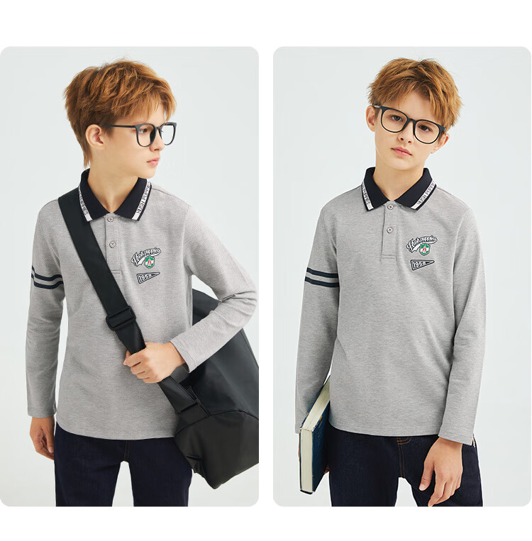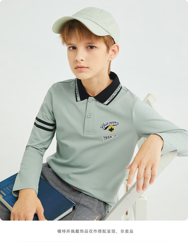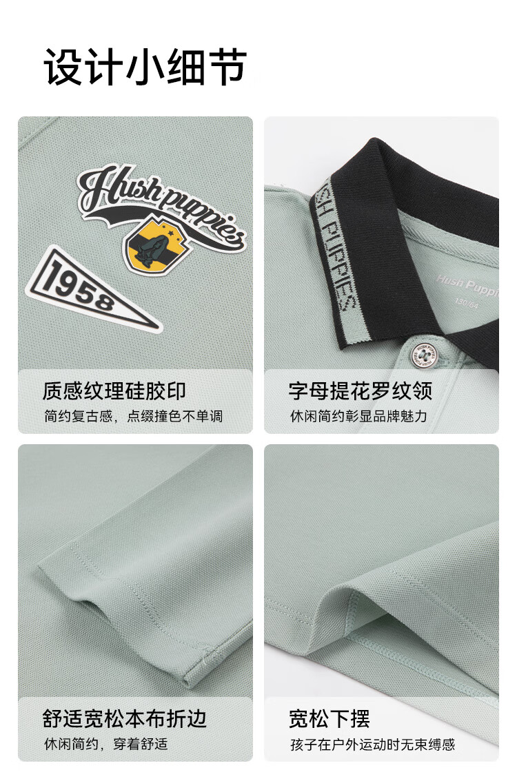 Hush Puppies preppy style children's clothing for boys and older children spring and autumn stretchy thin comfortable casual classic polo shirt floral gray 110 cm