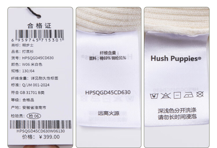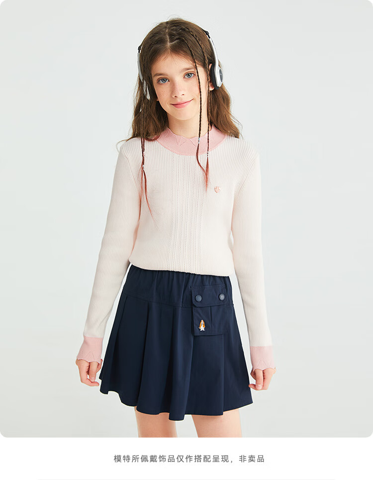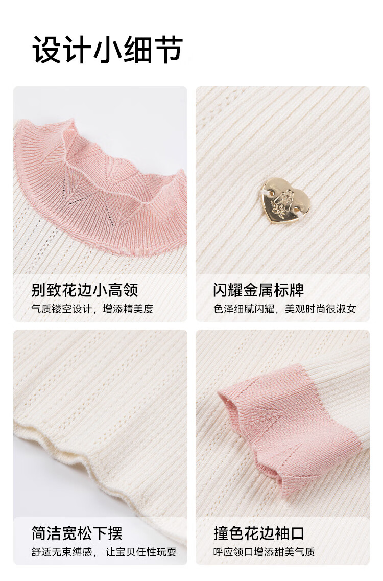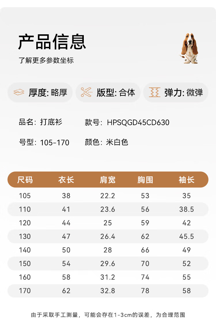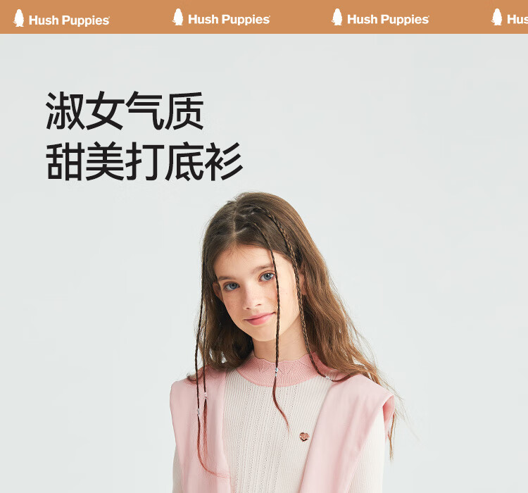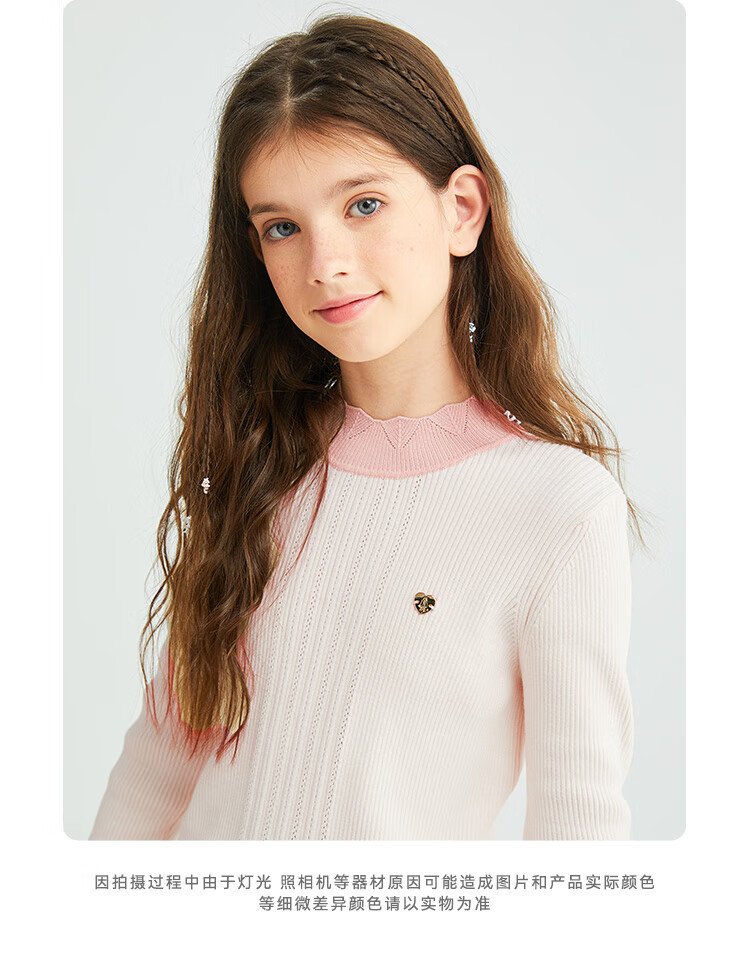 Hush Puppies children's clothing for children, girls and older children in autumn and winter, soft, comfortable, slightly elastic and sweet ladylike bottoming shirt, off-white 130 cm