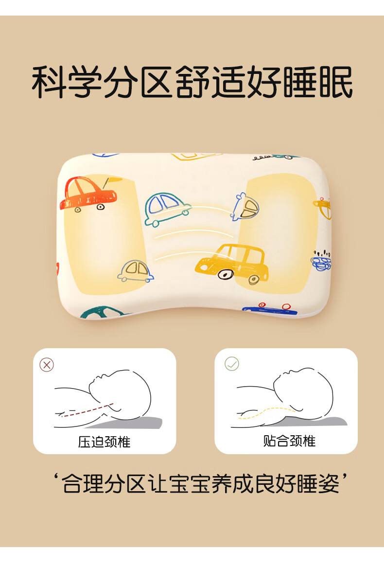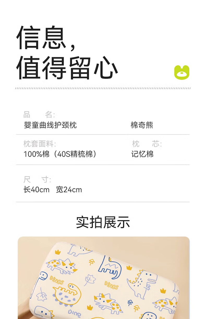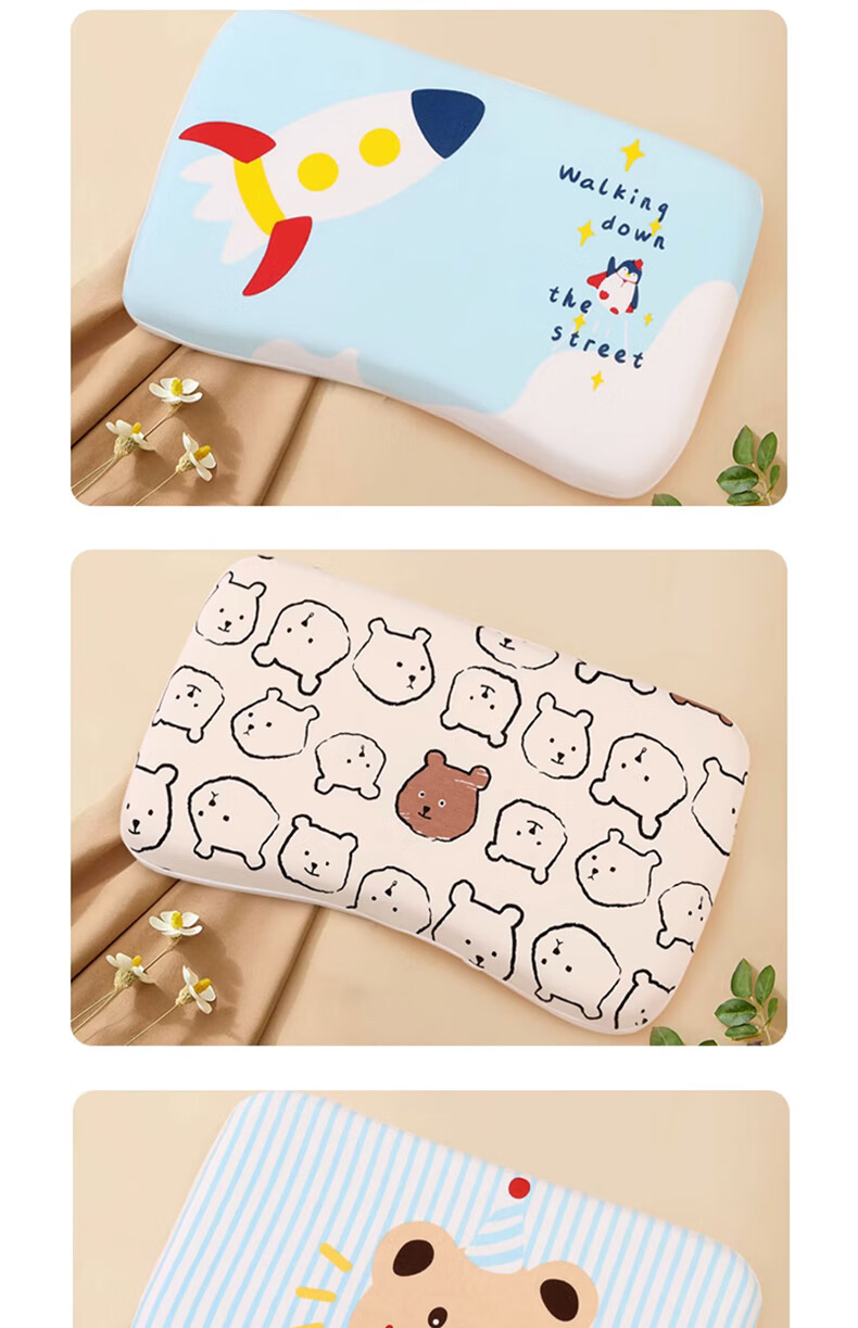 Mianqi Bear Children's Pillow 1 Baby Four Seasons 2 Baby Special Pillow 3 Months - 6 Years Old and Over Newborn 7 Kindergarten Memory Foam Pillow Pillow ZT08 - Breathable Neck Protector - Cartoon Animation 40*24*3CM Designed for Children 1-6 Years Old