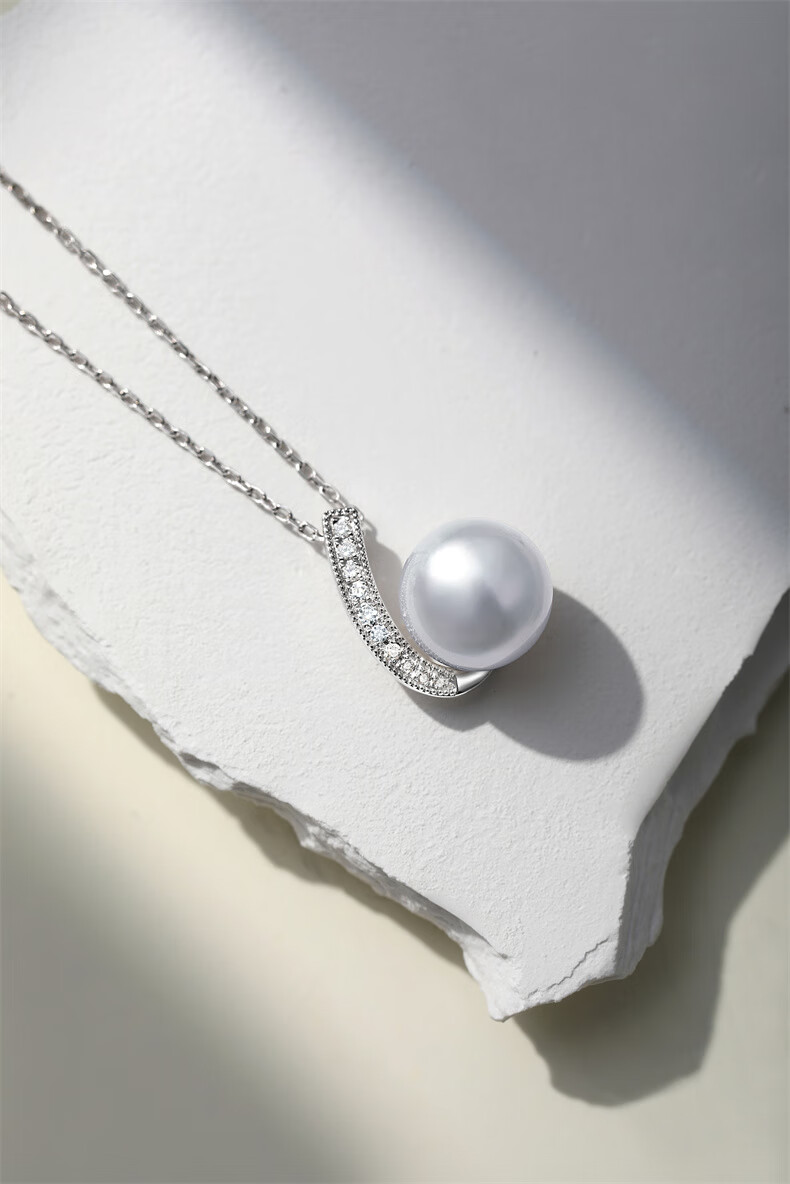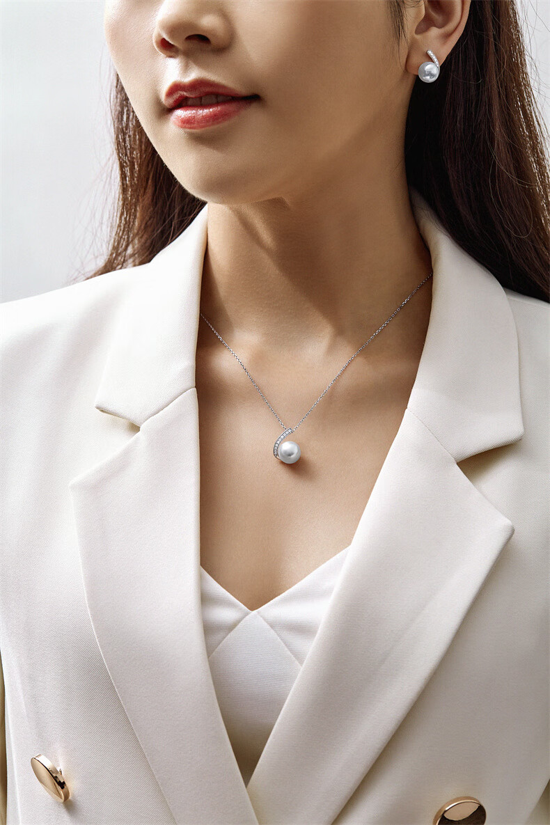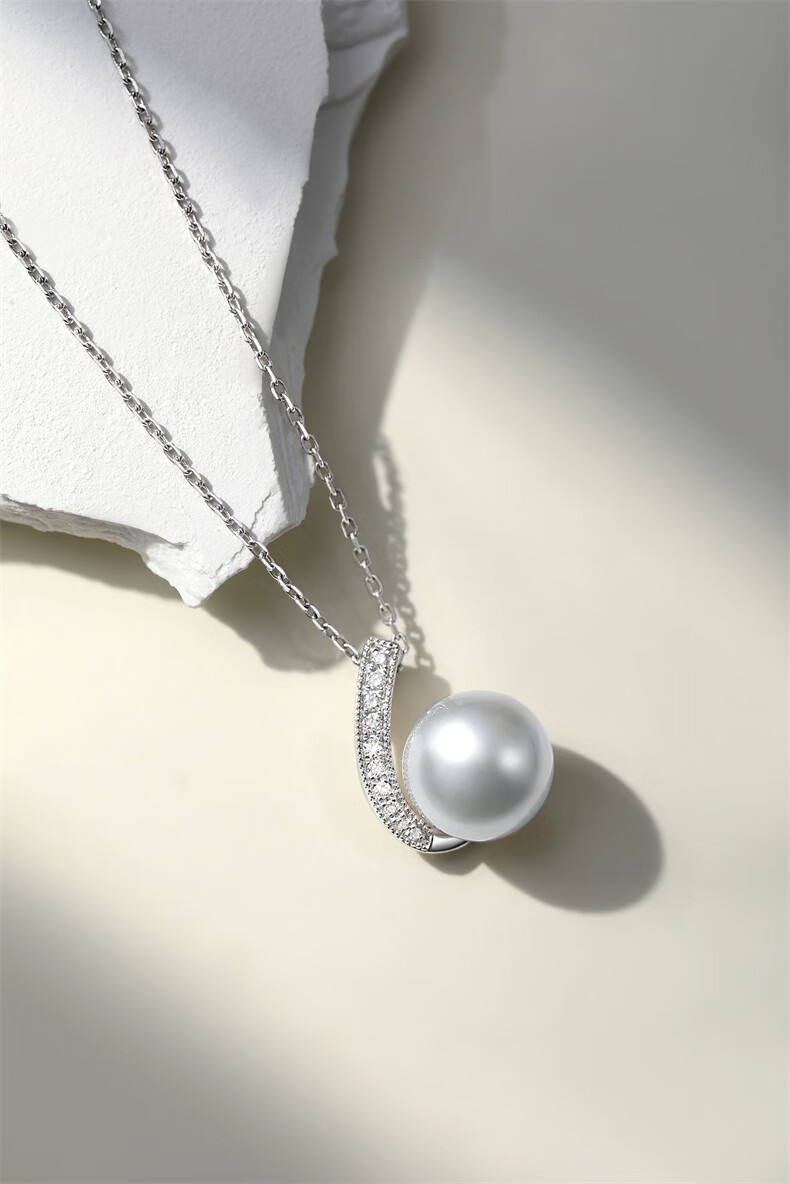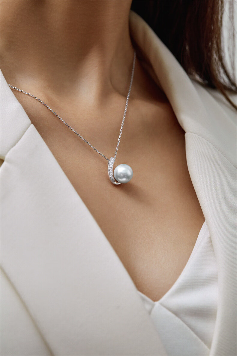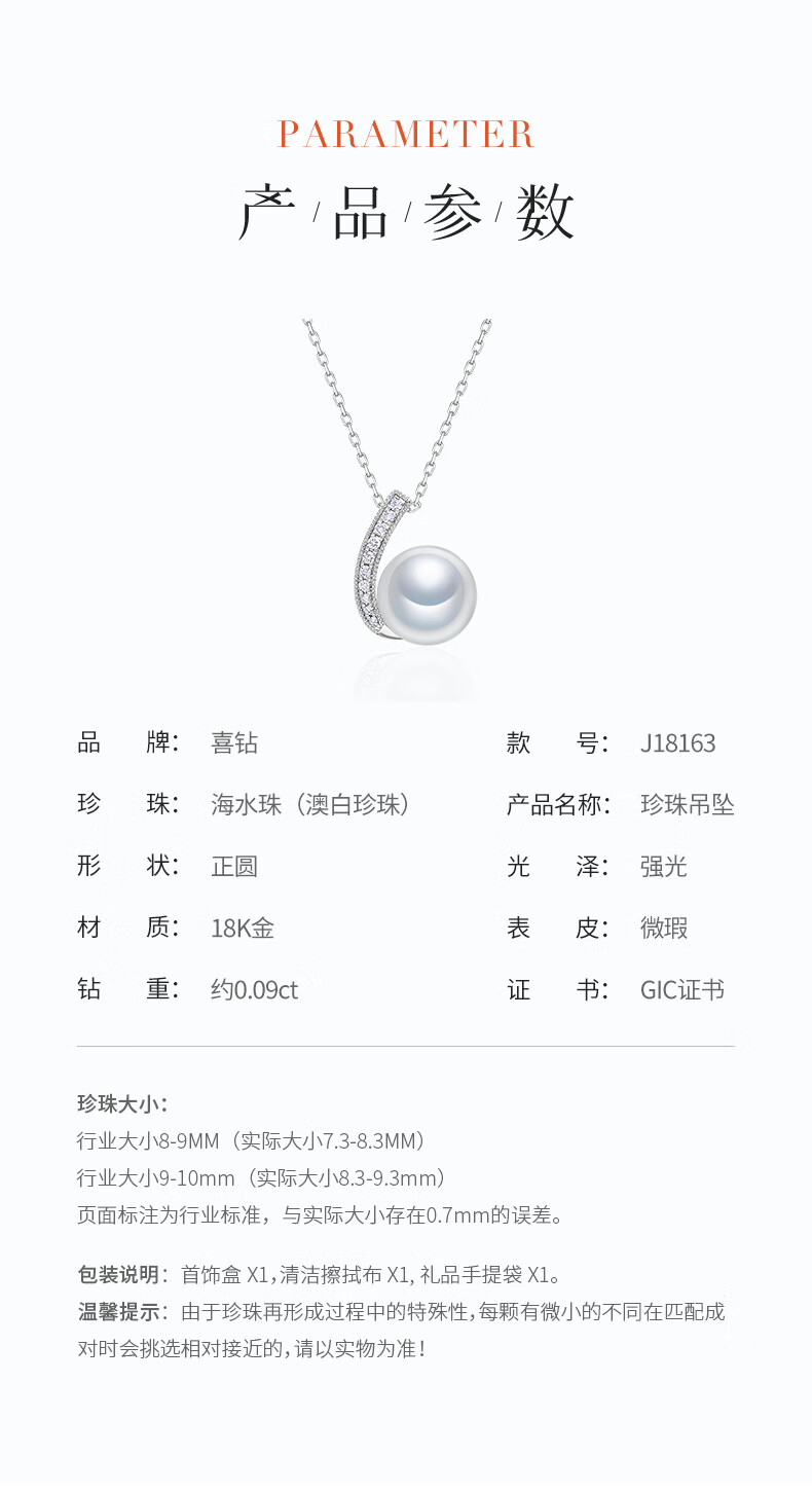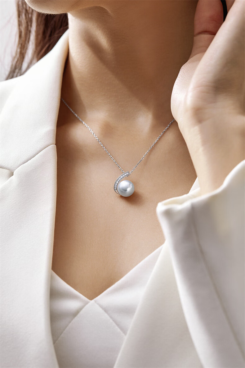 Happy Diamond 18K Gold Australian White Pearl Pendant Women's Single Perfect Round High-Light Seawater Pearl Necklace Clavicle Chain Birthday Gift White 18K Gold Australian White 10-11mm+9 Points Diamond