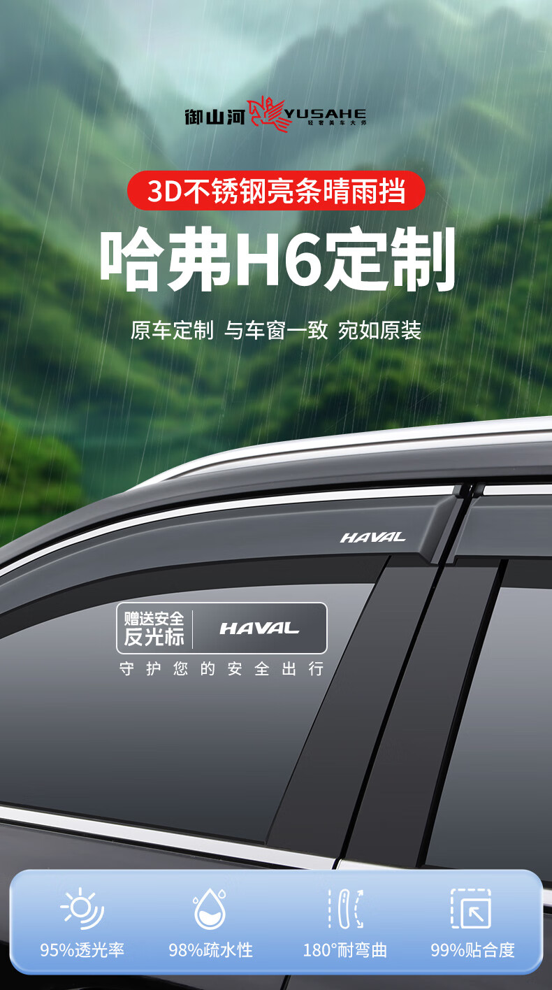 Yushanhe Haval h6 car window rain eyebrow national trend version special rain shield and rain shield rain strip accessories Harvard Automotive Supplies 21-24 third generation Haval h6*4 pieces 3D stainless steel bright strip rain shield Ten-year warranty