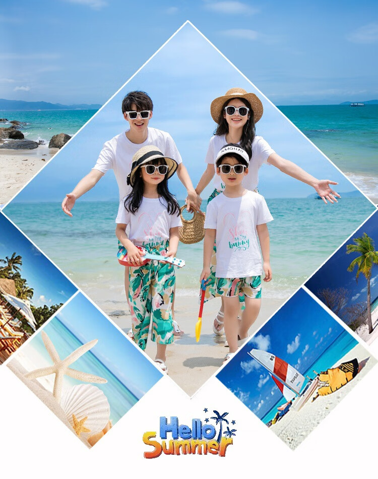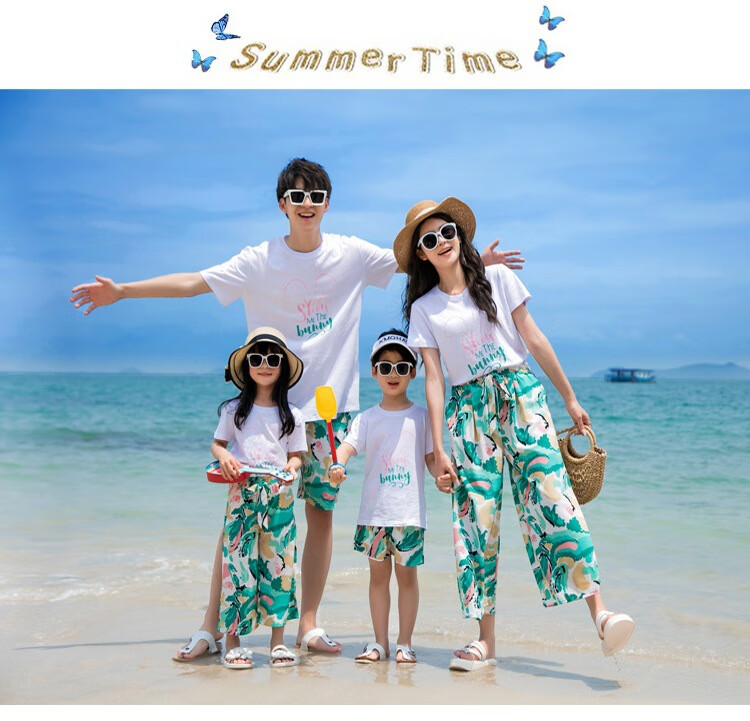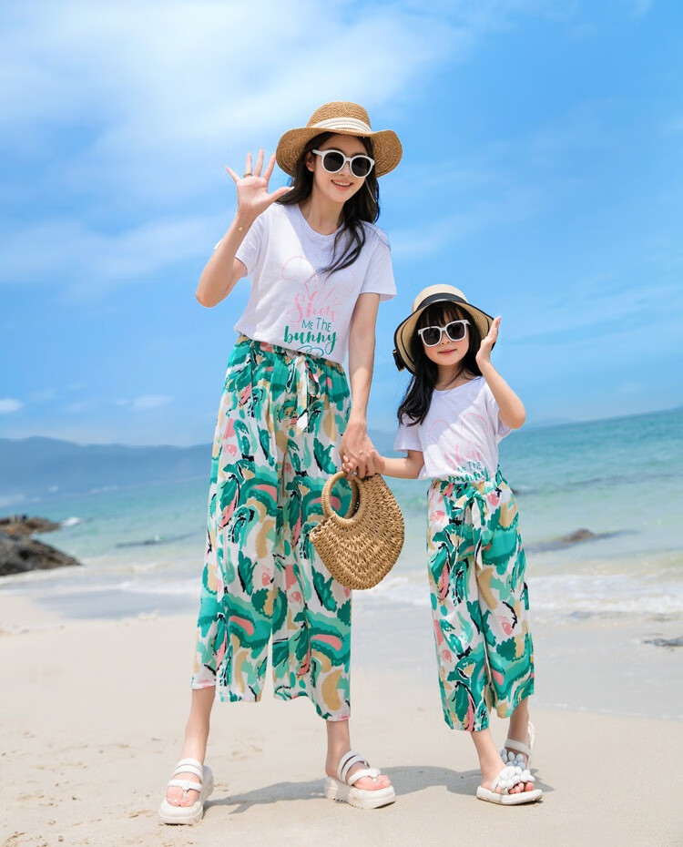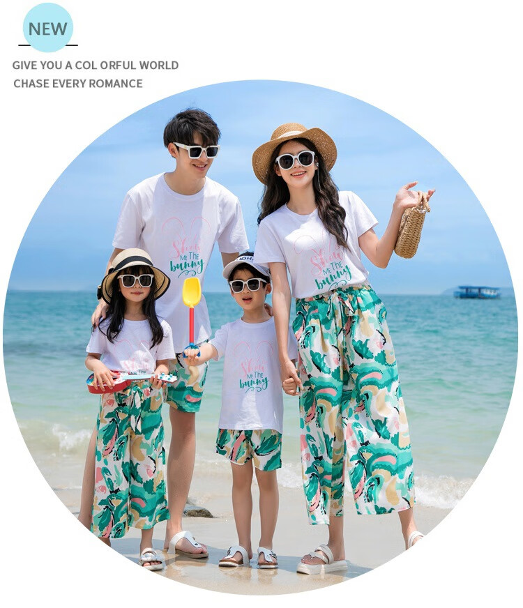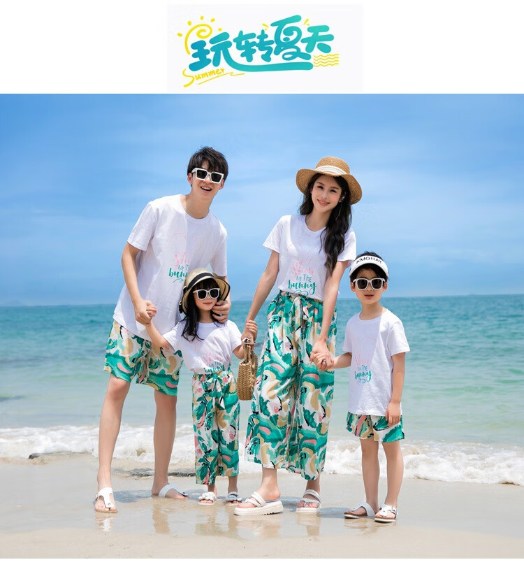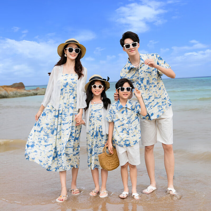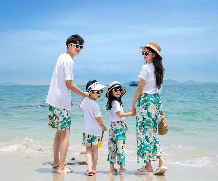 Buenpu beach parent-child clothing summer clothing new family of three or four family clothing mother-daughter mother-child travel vacation set 321 female 2XL