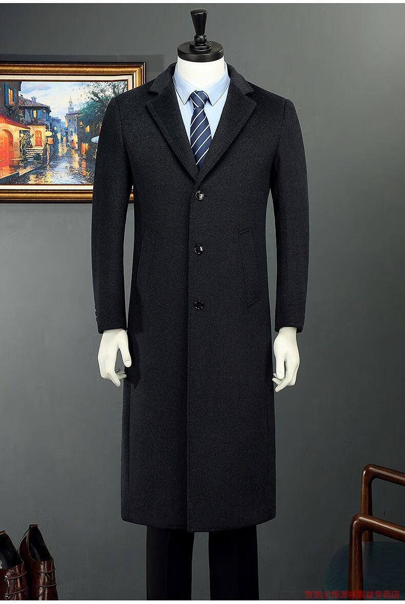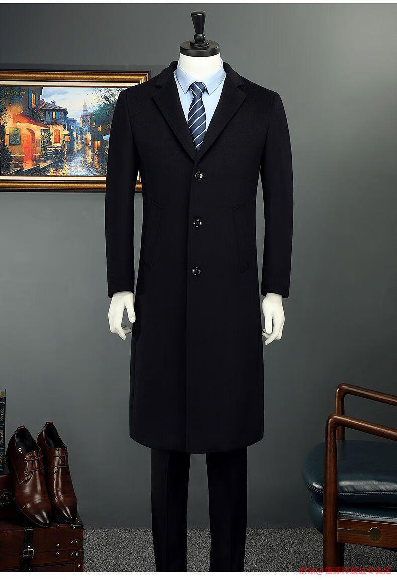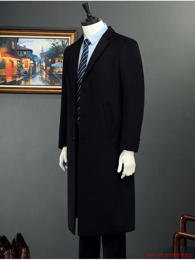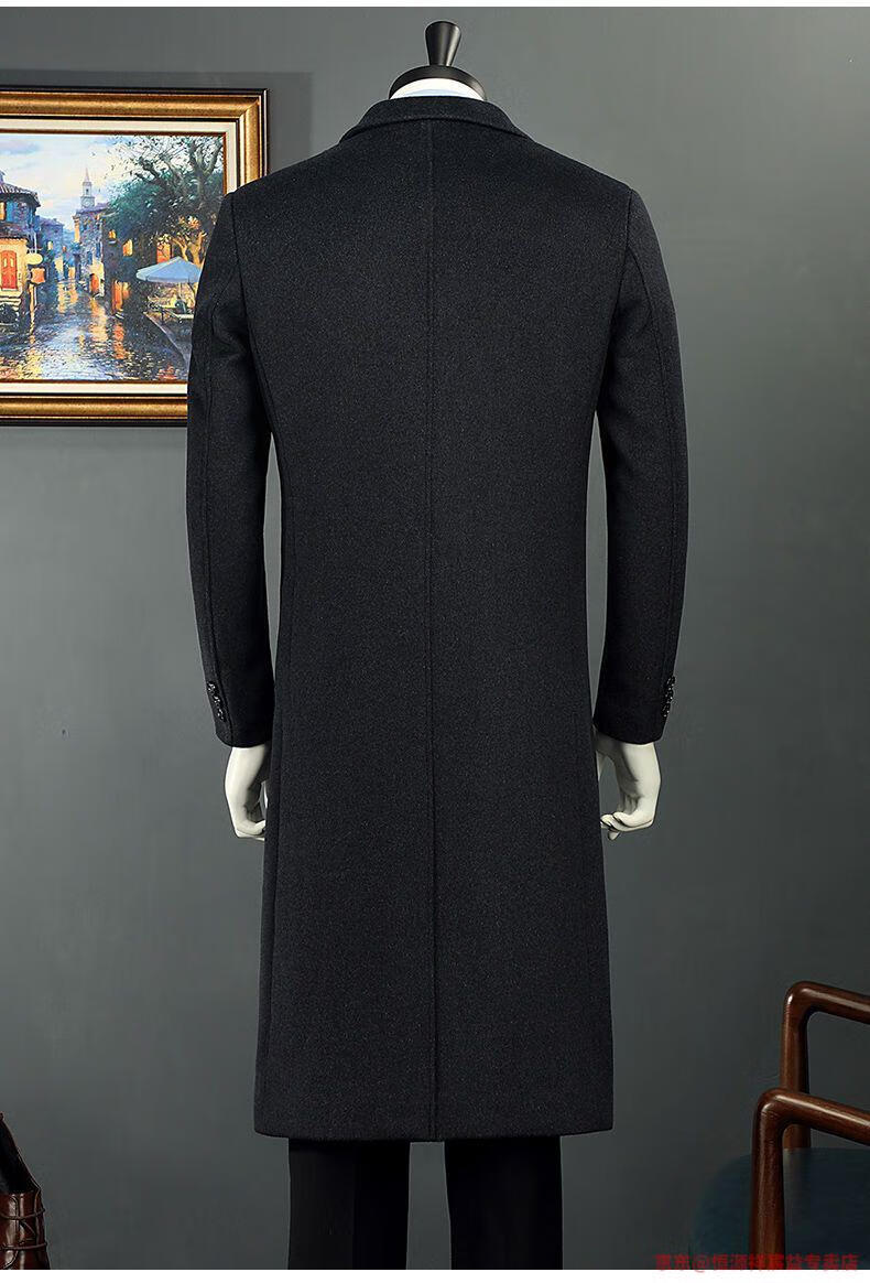 Hengyuanxiang men's coat men's long middle-aged knee-high suit collar Korean style autumn and winter windbreaker woolen coat black long 4XL 155-170Jin Jin equals 0.5 kg
