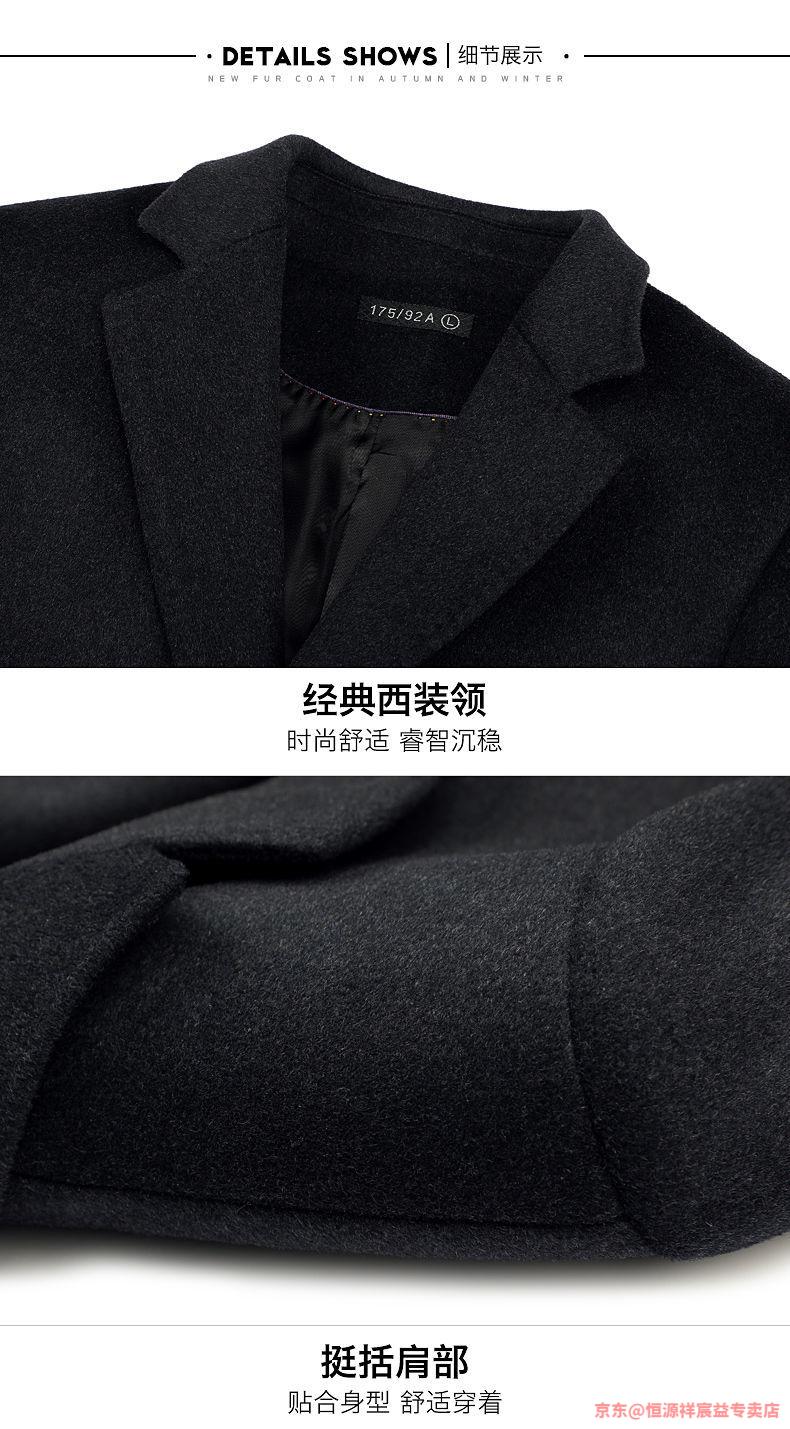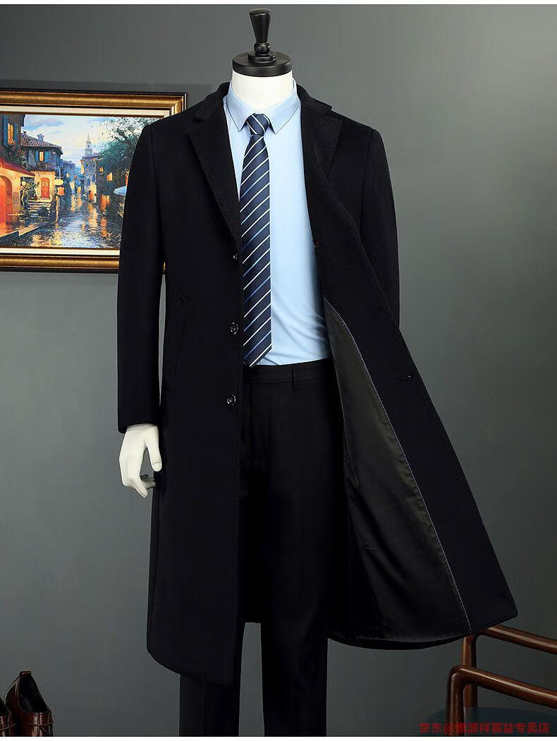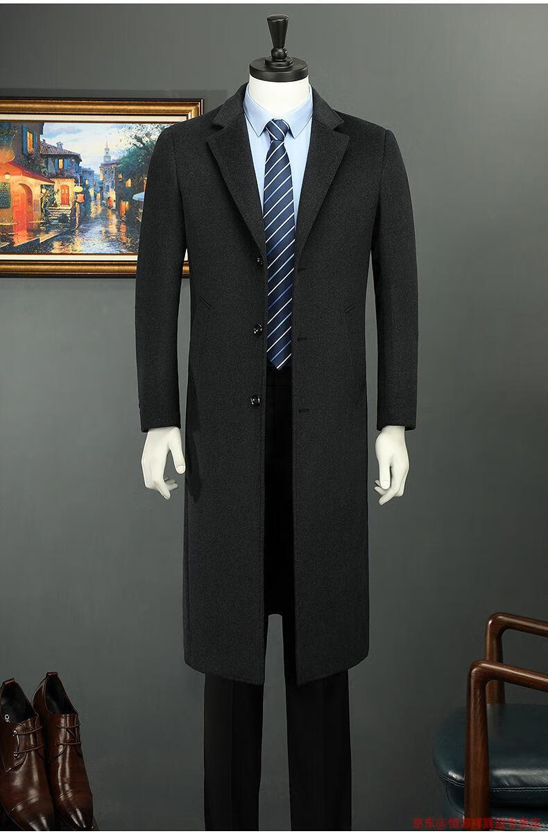 Hengyuanxiang men's coat men's long middle-aged knee-high suit collar Korean style autumn and winter windbreaker woolen coat black long 4XL 155-170Jin Jin equals 0.5 kg