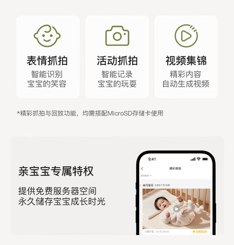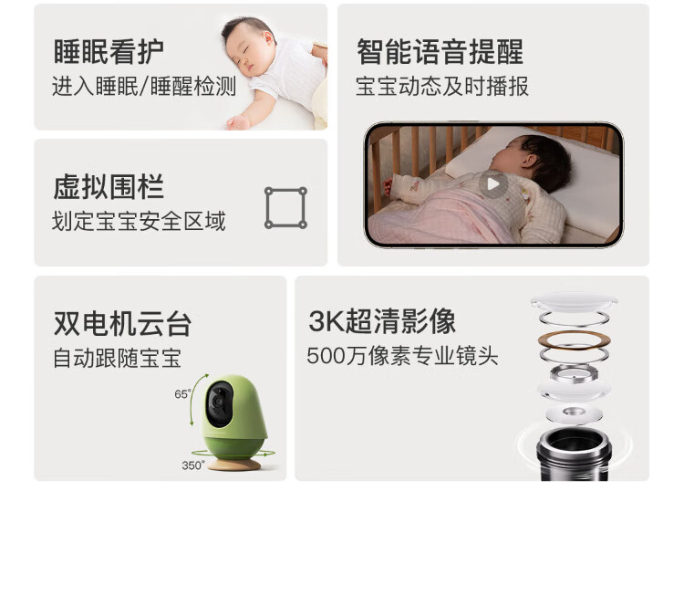 QINBAOBAO pro-baby AI smart caregiver baby monitor home monitoring crying baby bed camera baby viewing artifact caregiver + 32G storage card