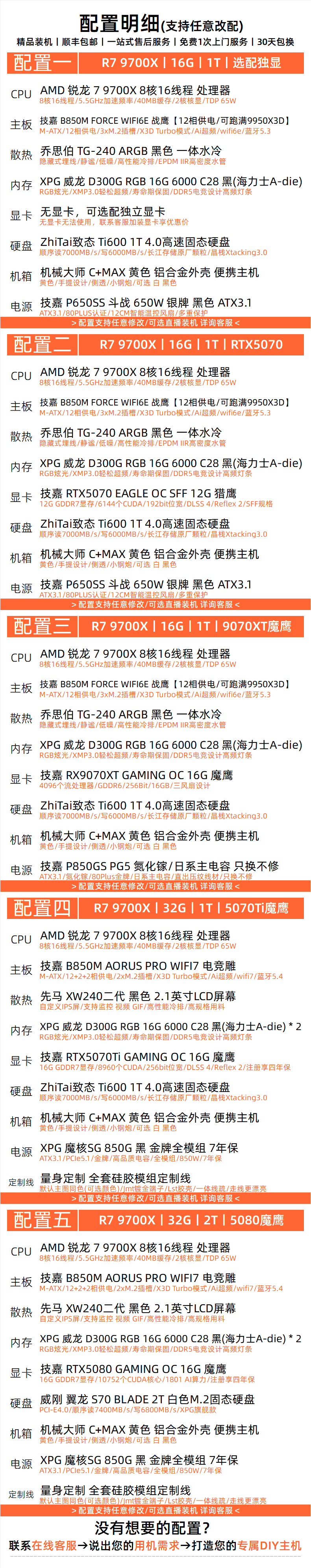 GIGABYTE AMD R7 9700X with RX9070XT/5080 Mechanical Master Little Sugar Cube C+MAX Portable ITX Small Steel Cannon Gaming Chicken AI Drawing Desktop Computer Host 1 Ryzen 7 9700X丨Optional Independent Graphics Card
