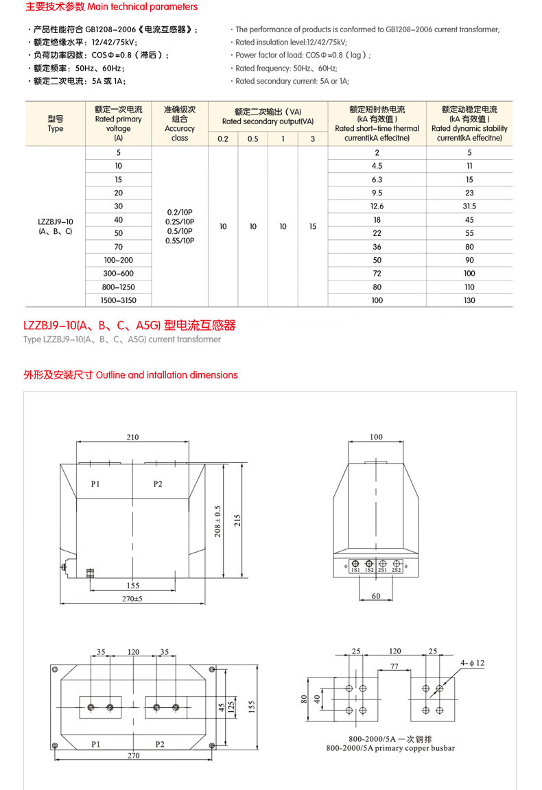 Bip Electric LZZBJ9-10 high voltage current transformer KYN28 switch cabinet dedicated 50-600/5 0.5 10P10