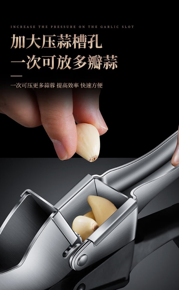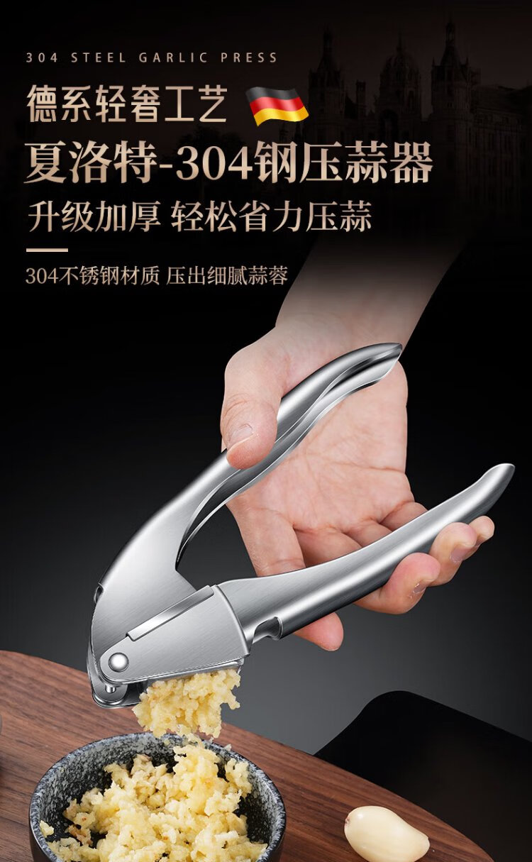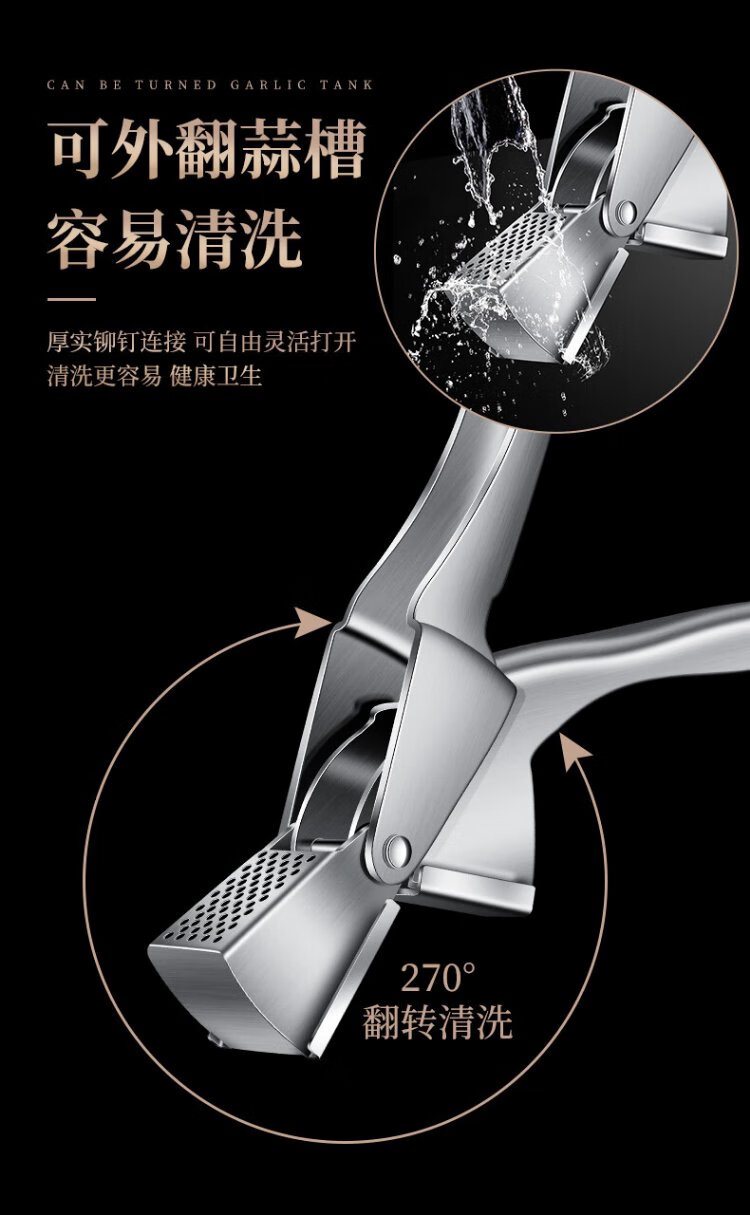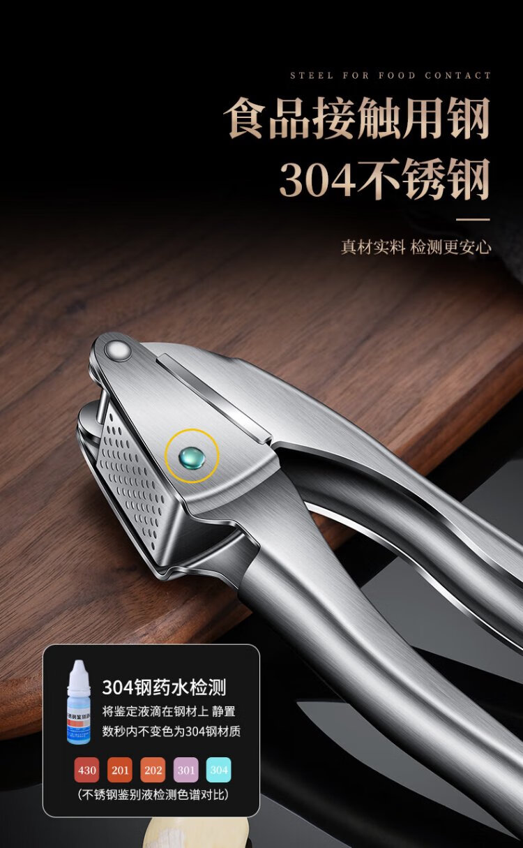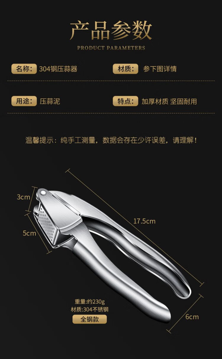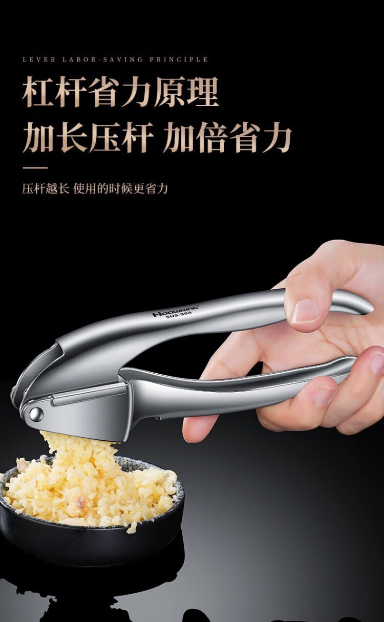 Heqing 304 stainless steel garlic press garlic masher garlic masher household manual garlic peeler garlic masher tool 304 all steel model