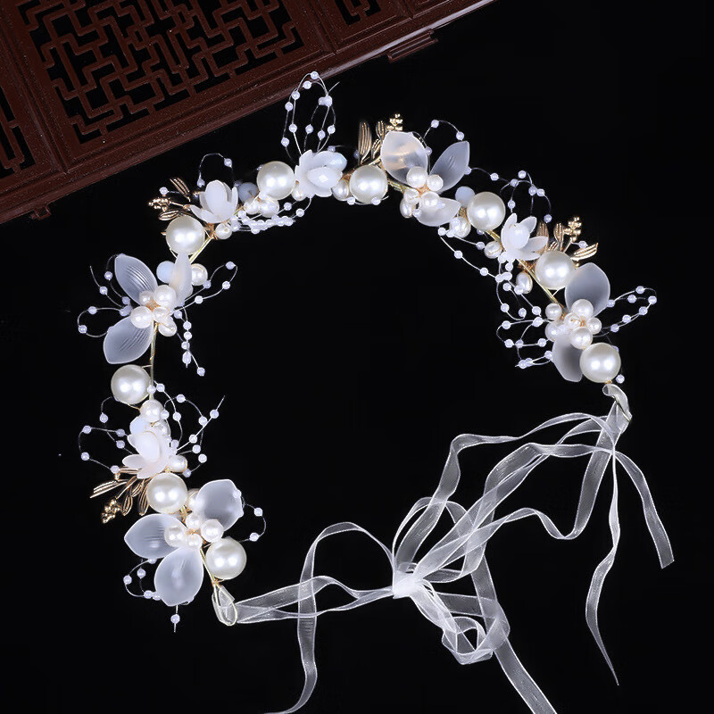 Jingmin Super Fairy Children's Headwear Beautiful Garland Head Flower Girl Hair Accessory Forest Girl Performance Host Vacation Wristband Hairband White