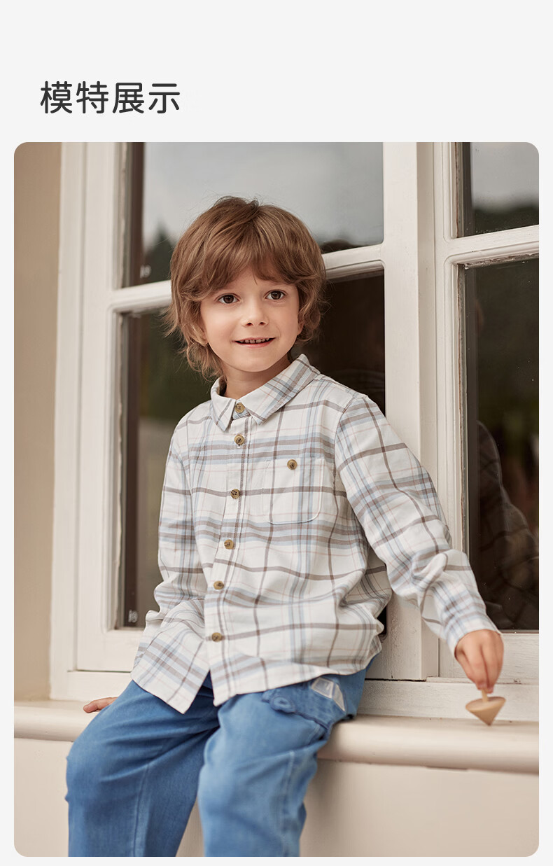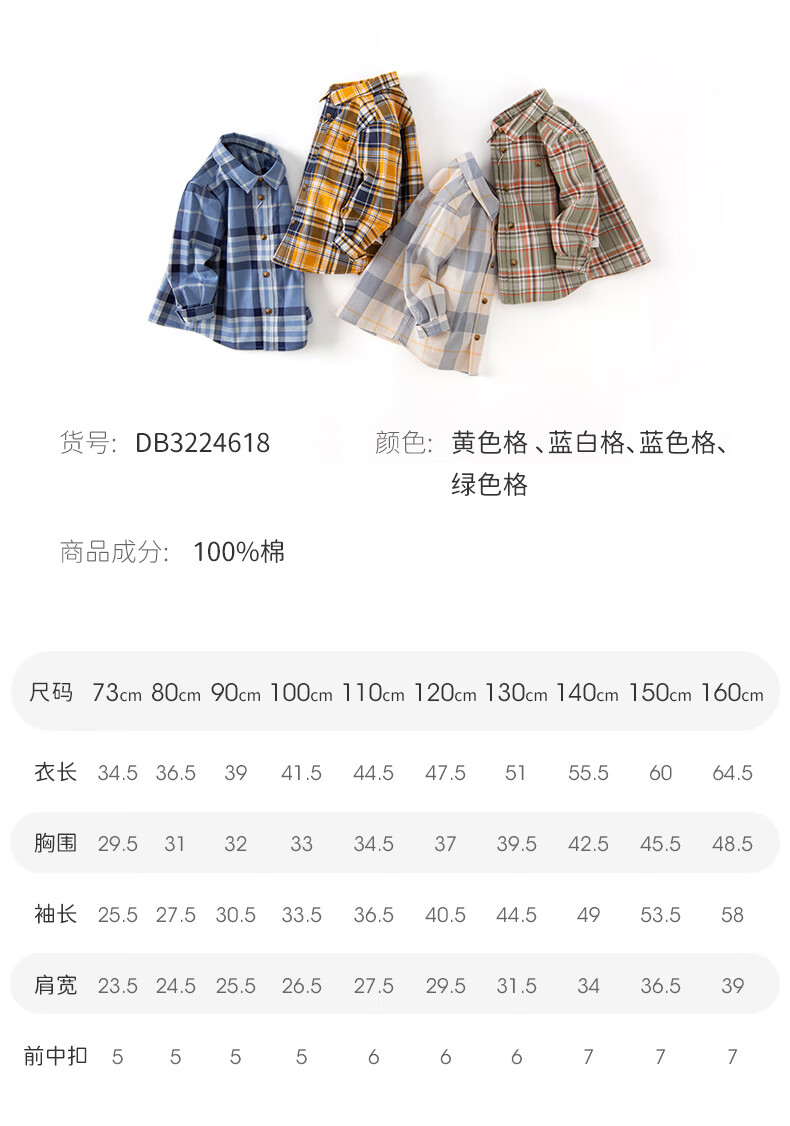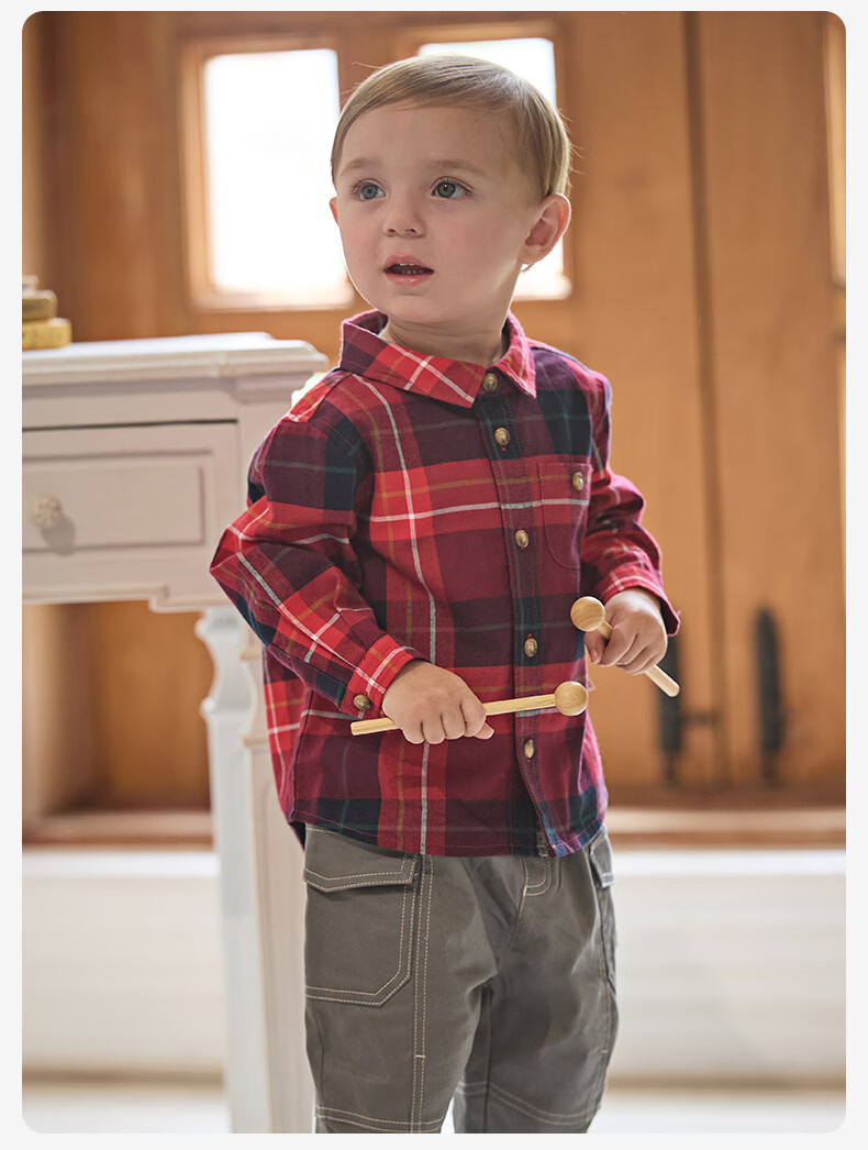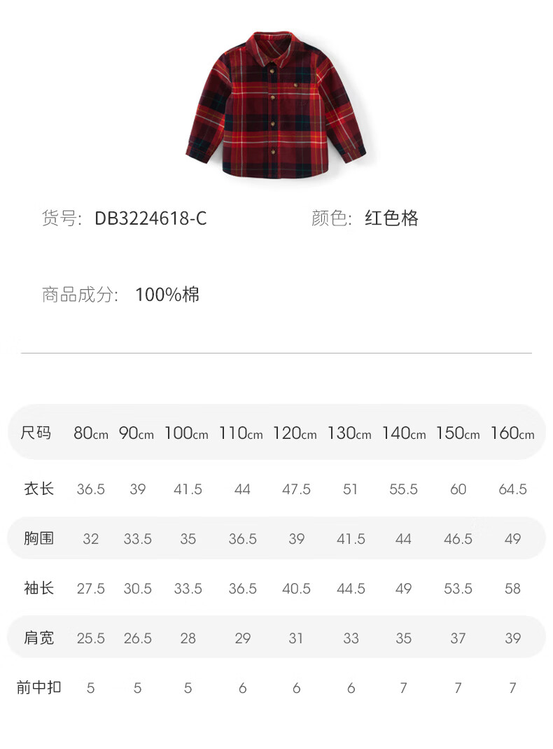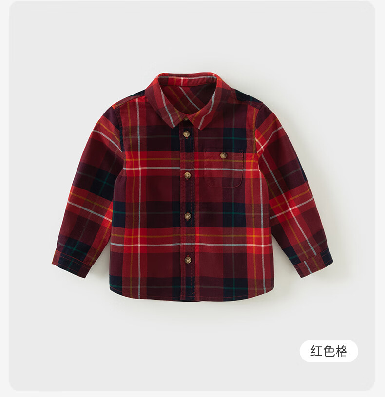 DAVE&BELLA children's clothing men's shirts children's shirts boys' long-sleeved spring clothes baby clothes spring and autumn tops big children's plaid bottoming shirt red plaid DB3224618-C 120 (recommended height 110-120cm)