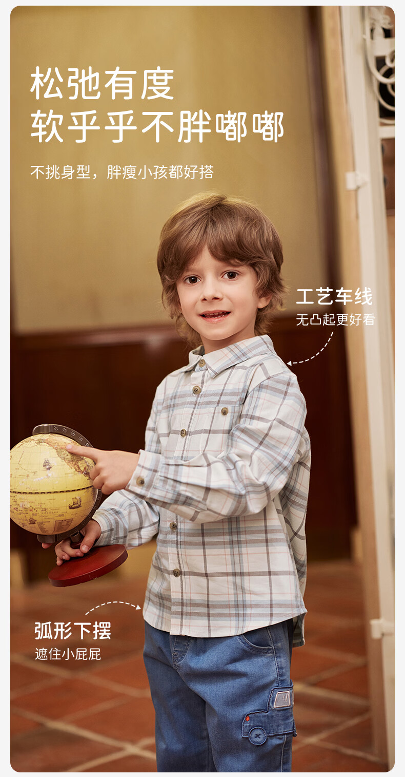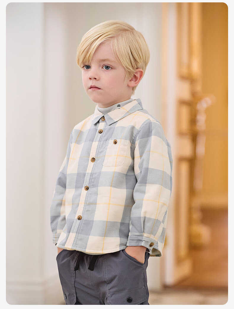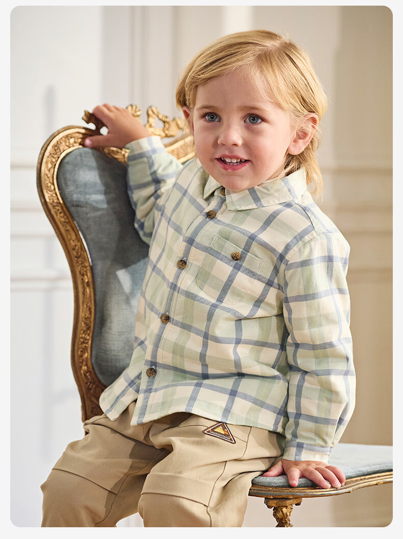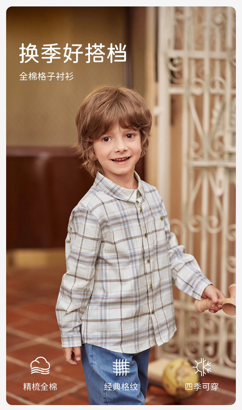 DAVE&BELLA children's clothing men's shirts children's shirts boys' long-sleeved spring clothes baby clothes spring and autumn tops big children's plaid bottoming shirt red plaid DB3224618-C 120 (recommended height 110-120cm)