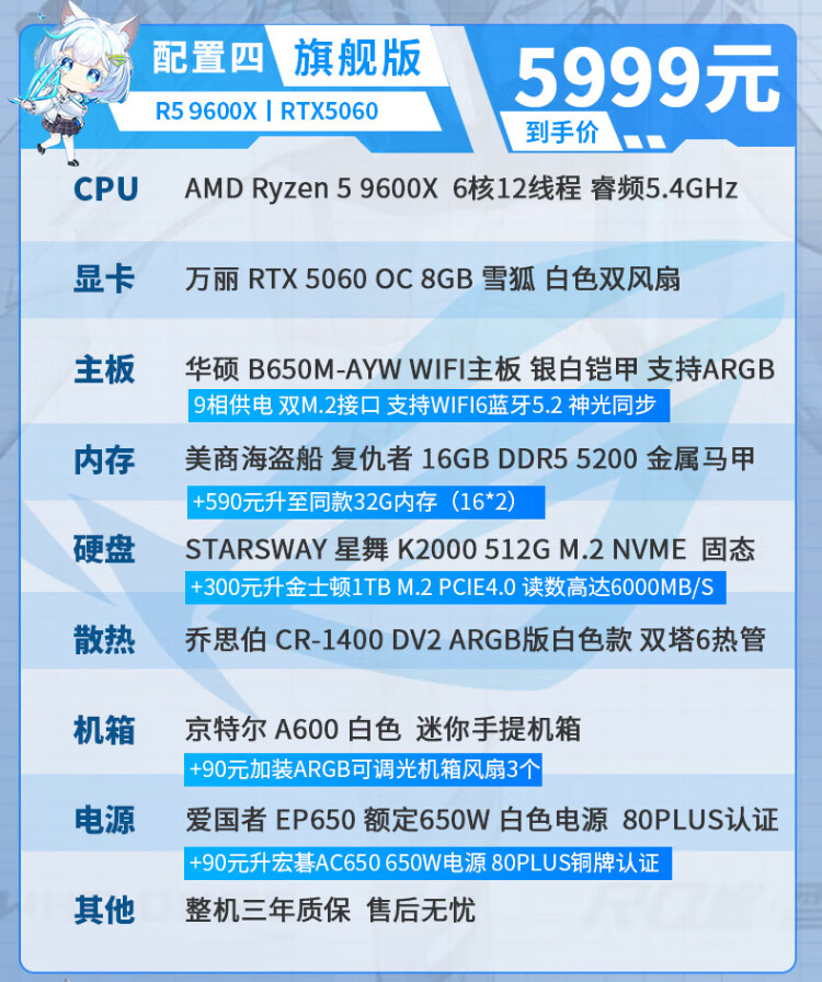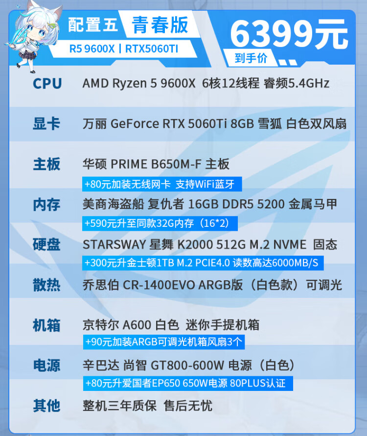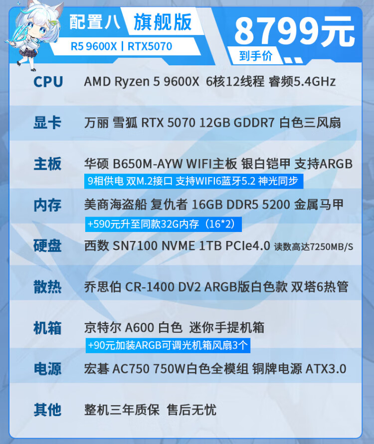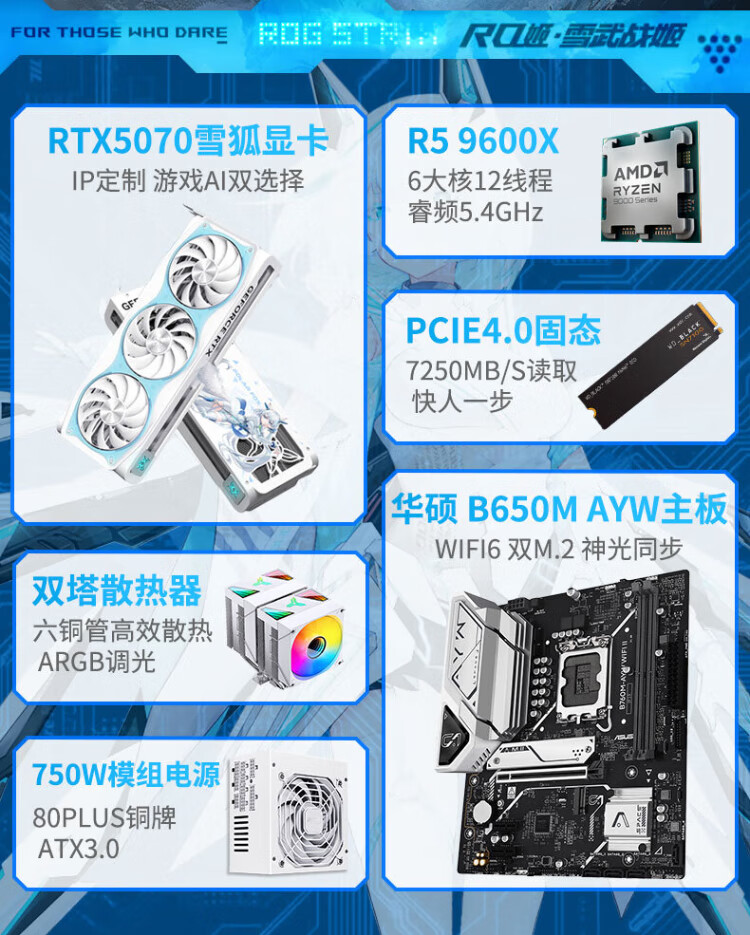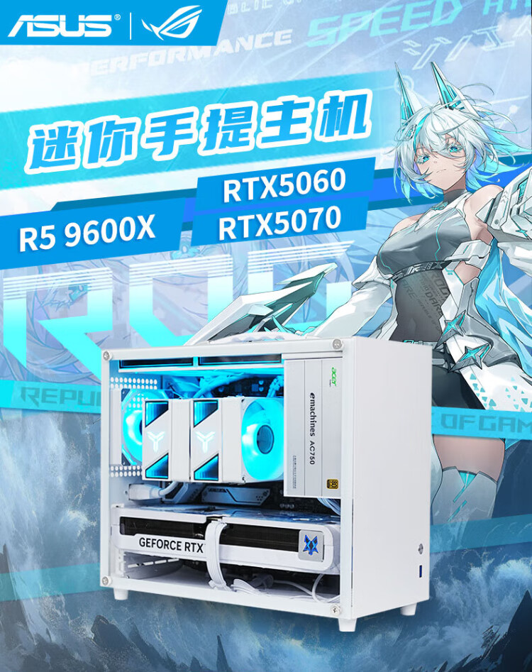 ASUS AMD Ryzen R5 9600X/RTX5070/RTX5060TI pure white high-end mini desktop assembly computer host e-sports live game rendering design DIY complete machine Configuration 2丨9600X丨16G+1TB丨Ultimate Edition