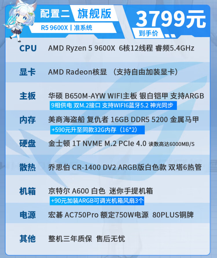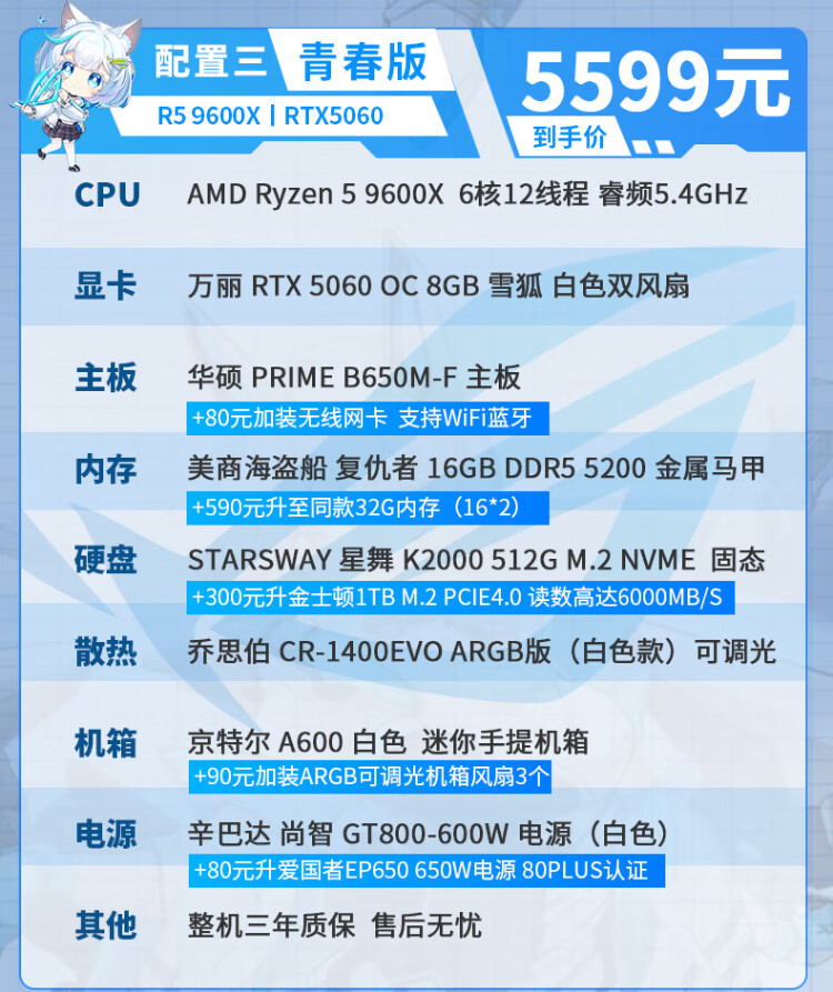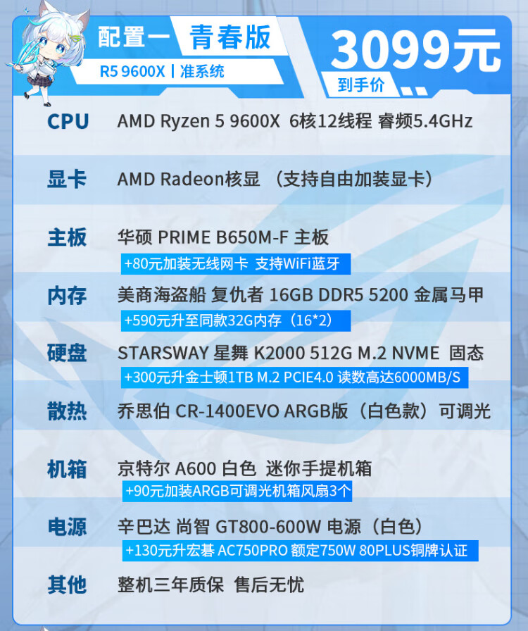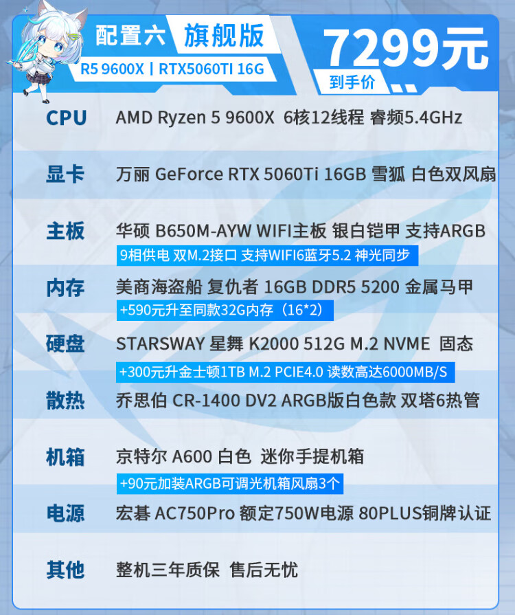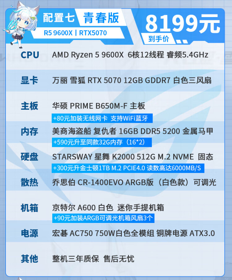ASUS AMD Ryzen R5 9600X/RTX5070/RTX5060TI pure white high-end mini desktop assembly computer host e-sports live game rendering design DIY complete machine Configuration 2丨9600X丨16G+1TB丨Ultimate Edition