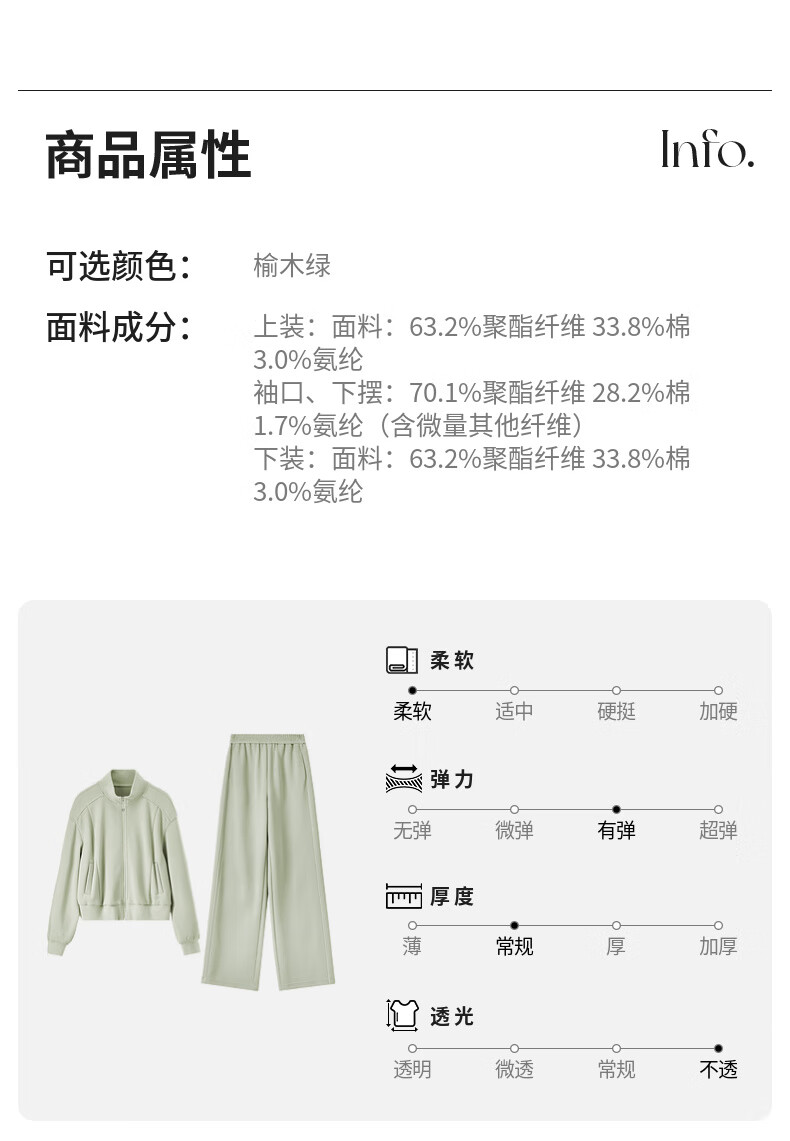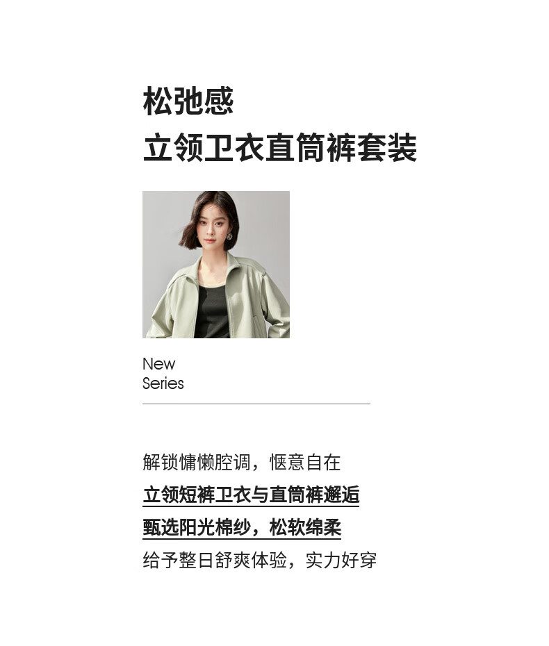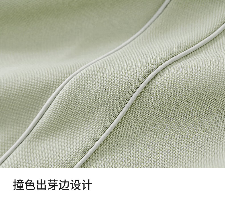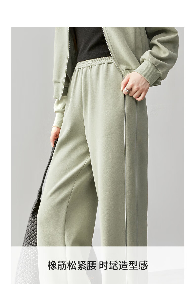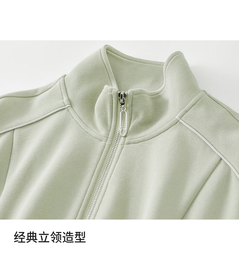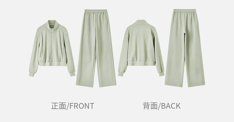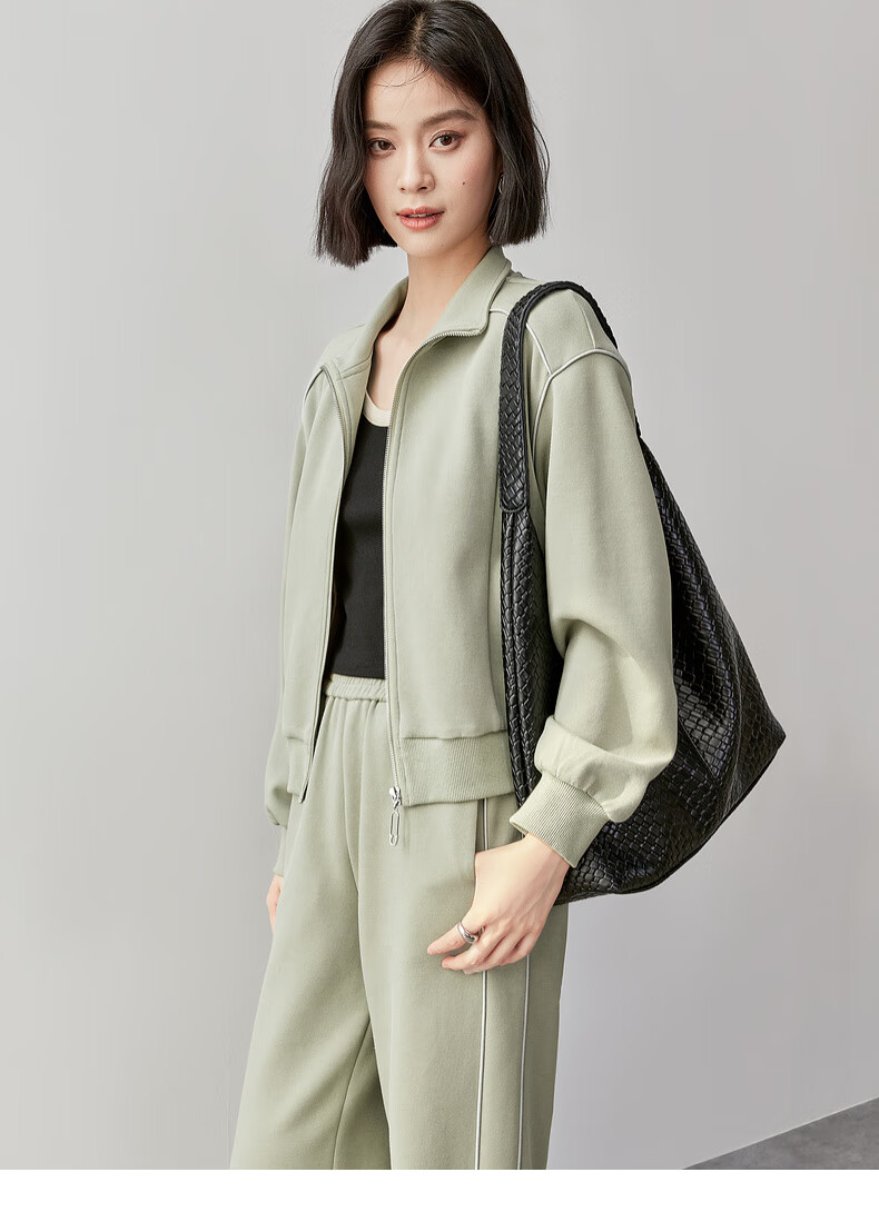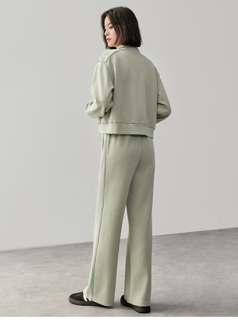 Shandubila Comfortable Casual Contrast Color Stand Collar Sweatshirt Spring and Autumn Short Straight Pants Knitted Cotton Suit Elm Green L