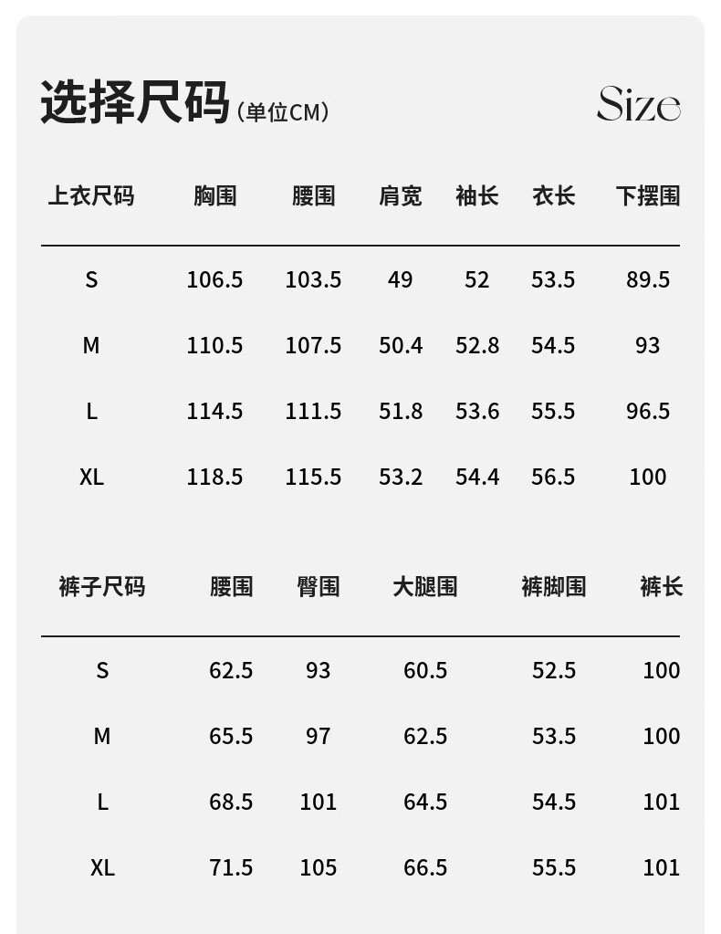 China (cm) 160-165/84-86 165-170 / 88-90 167-172 / 92-96 168-173 / 98-102 170-176 / 106-110