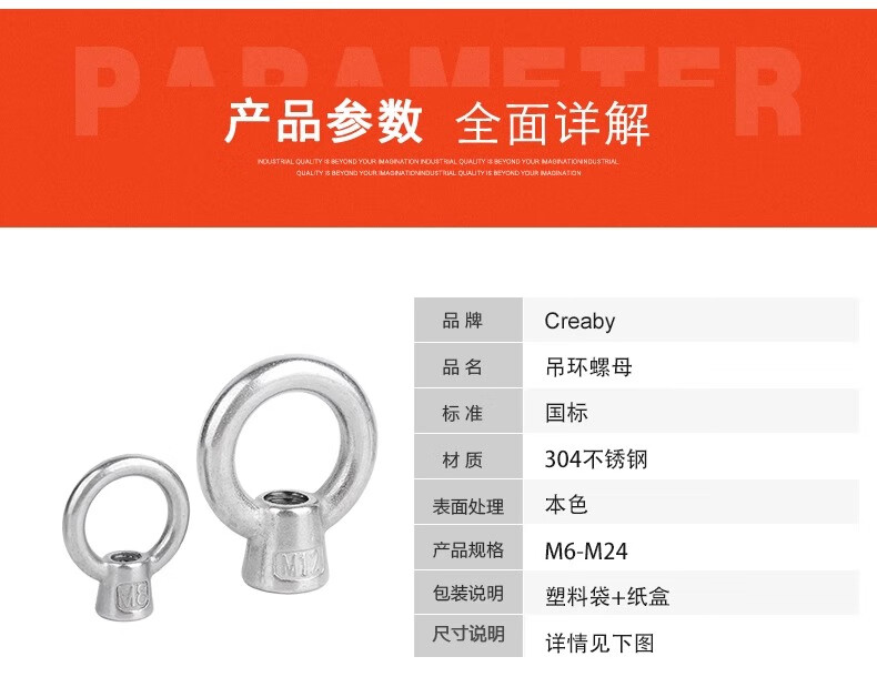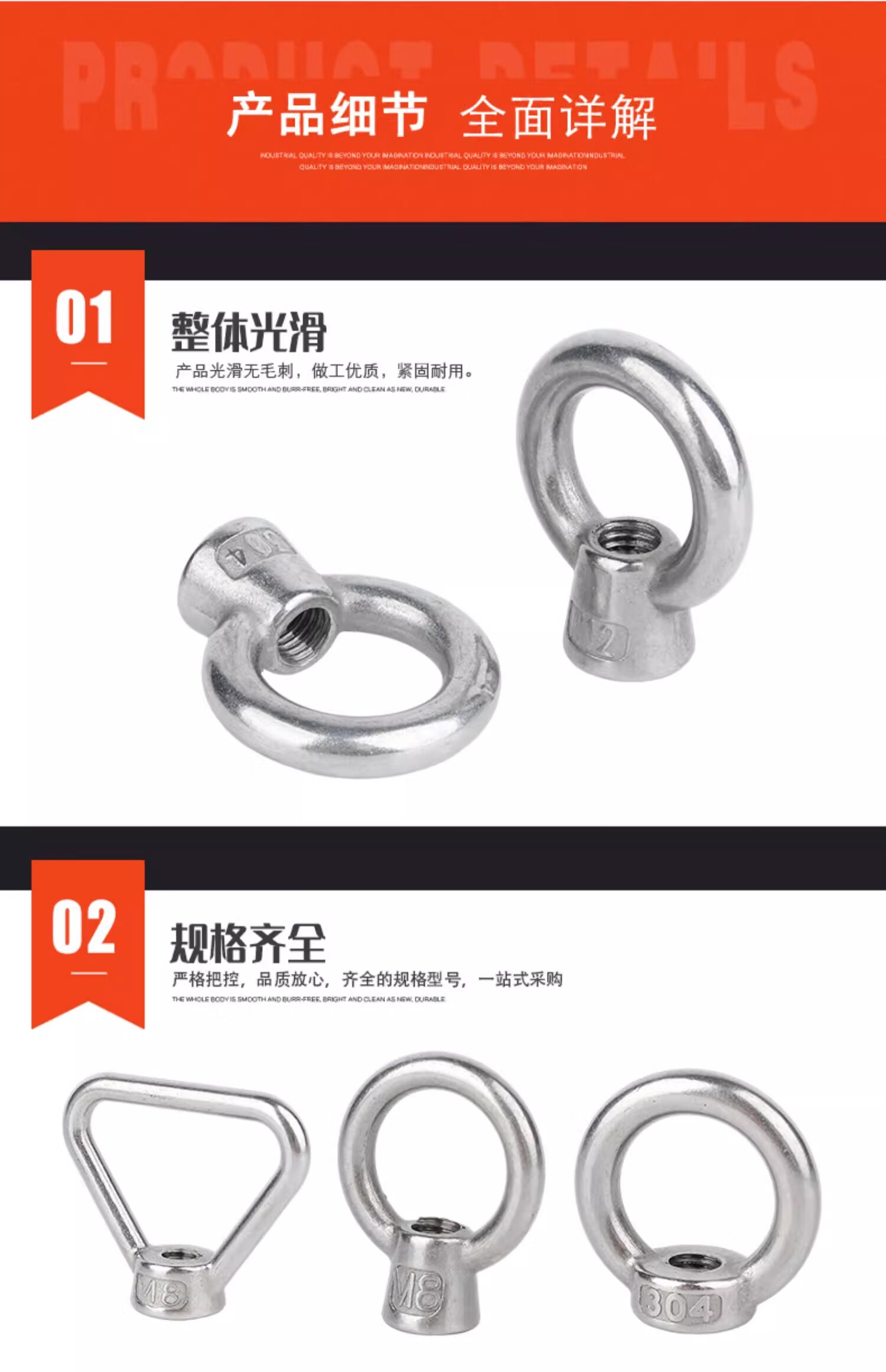 Creaby304 stainless steel eye nut ring nut marine lifting extension screw bolt M24 1 Japanese style eye nut