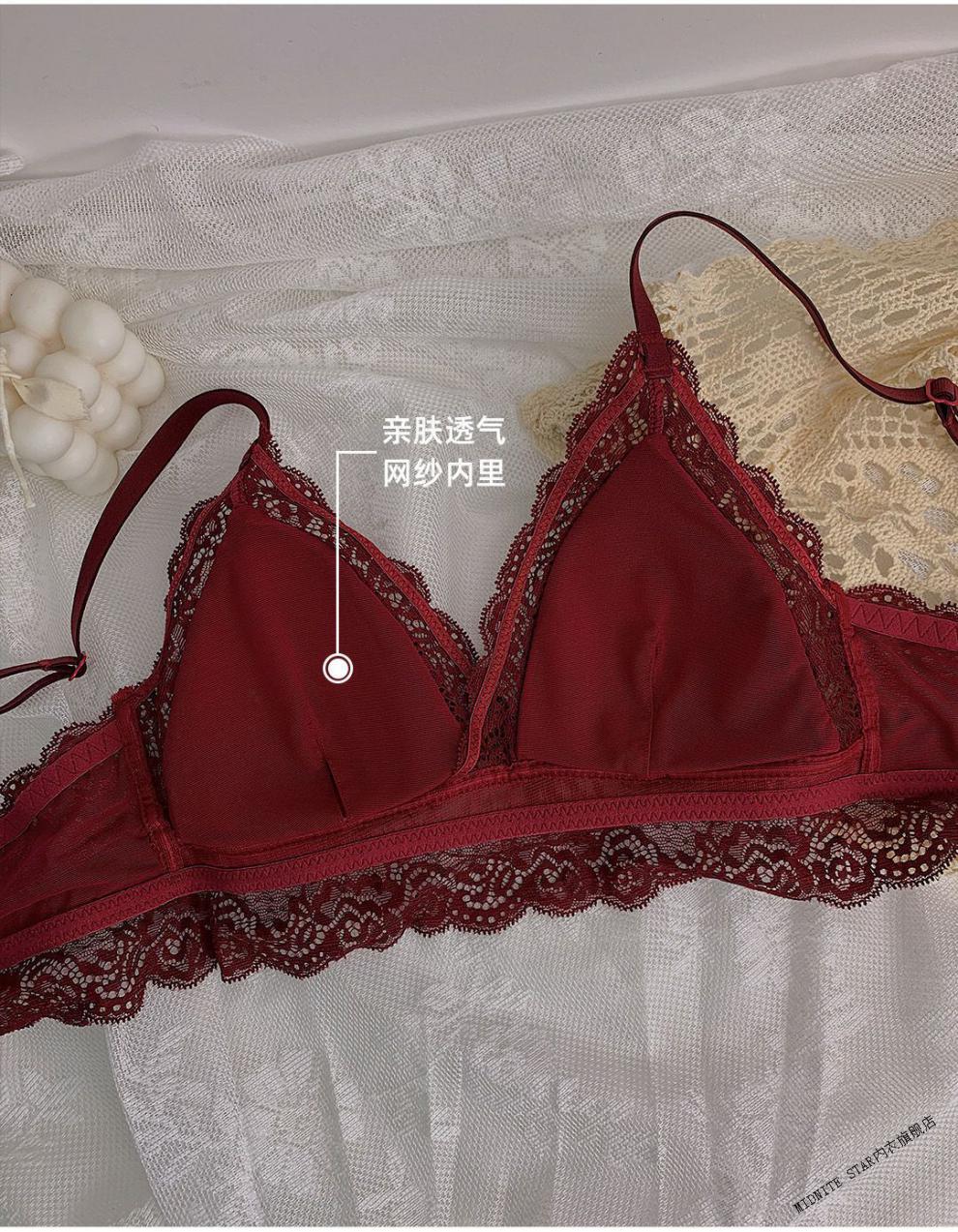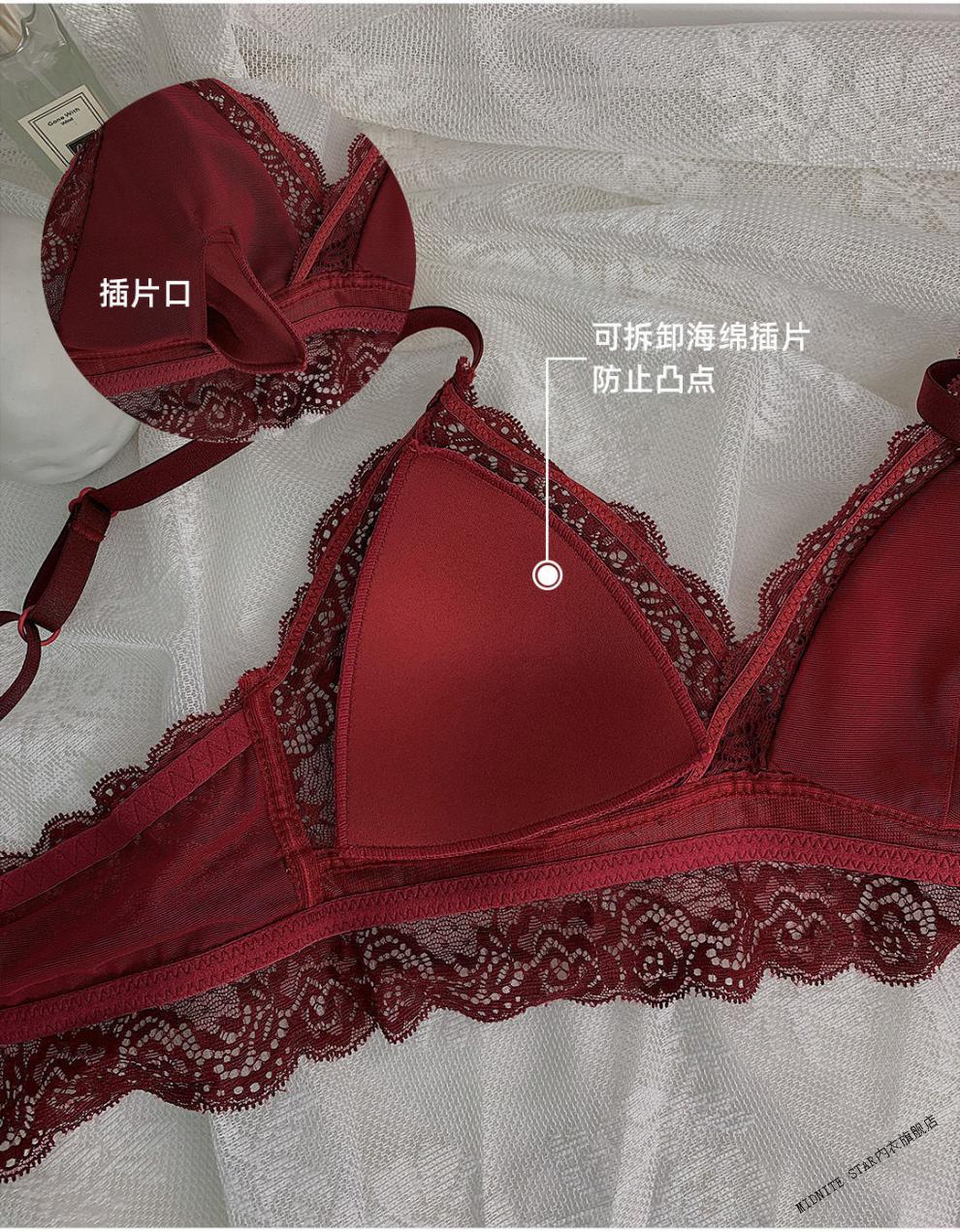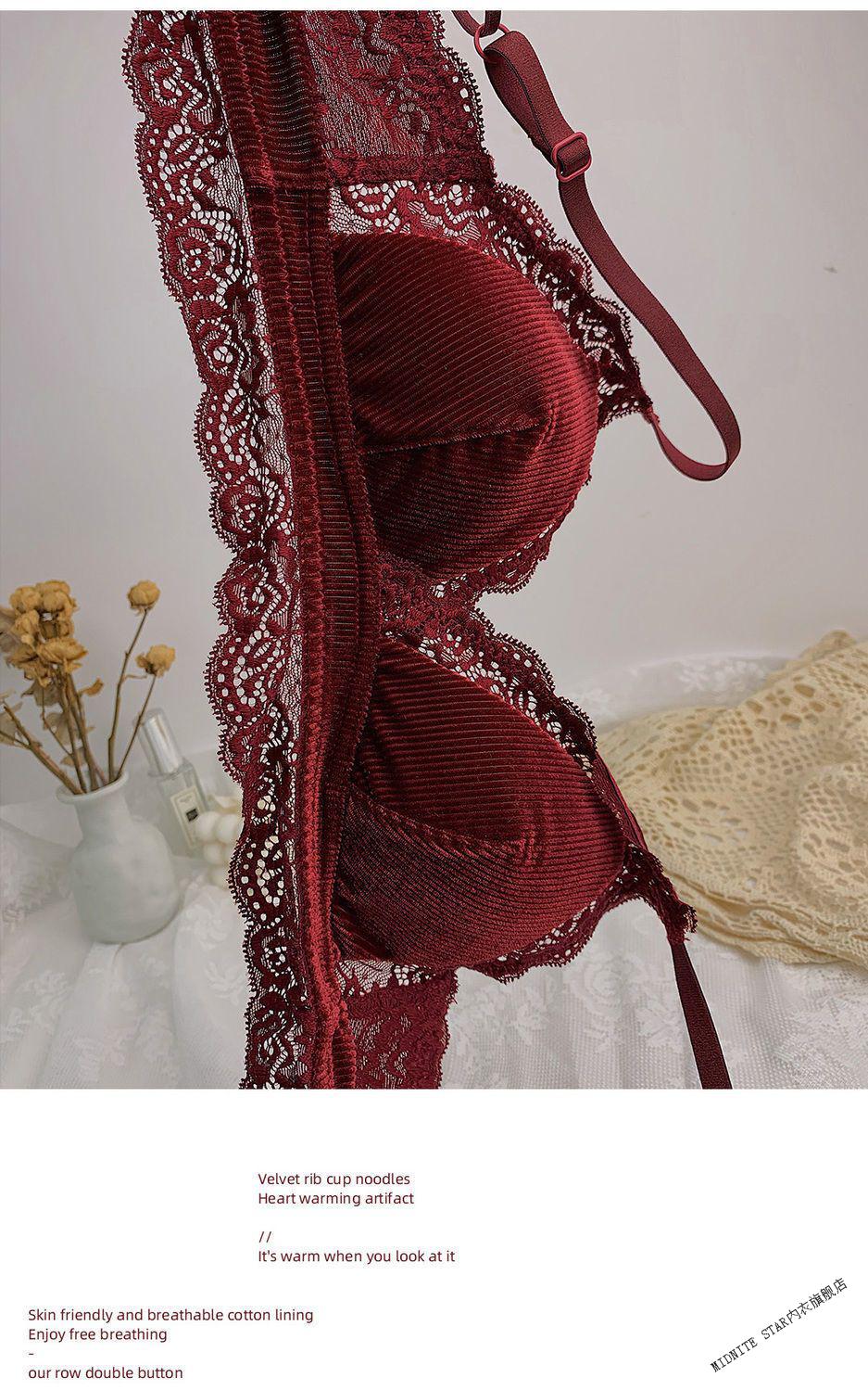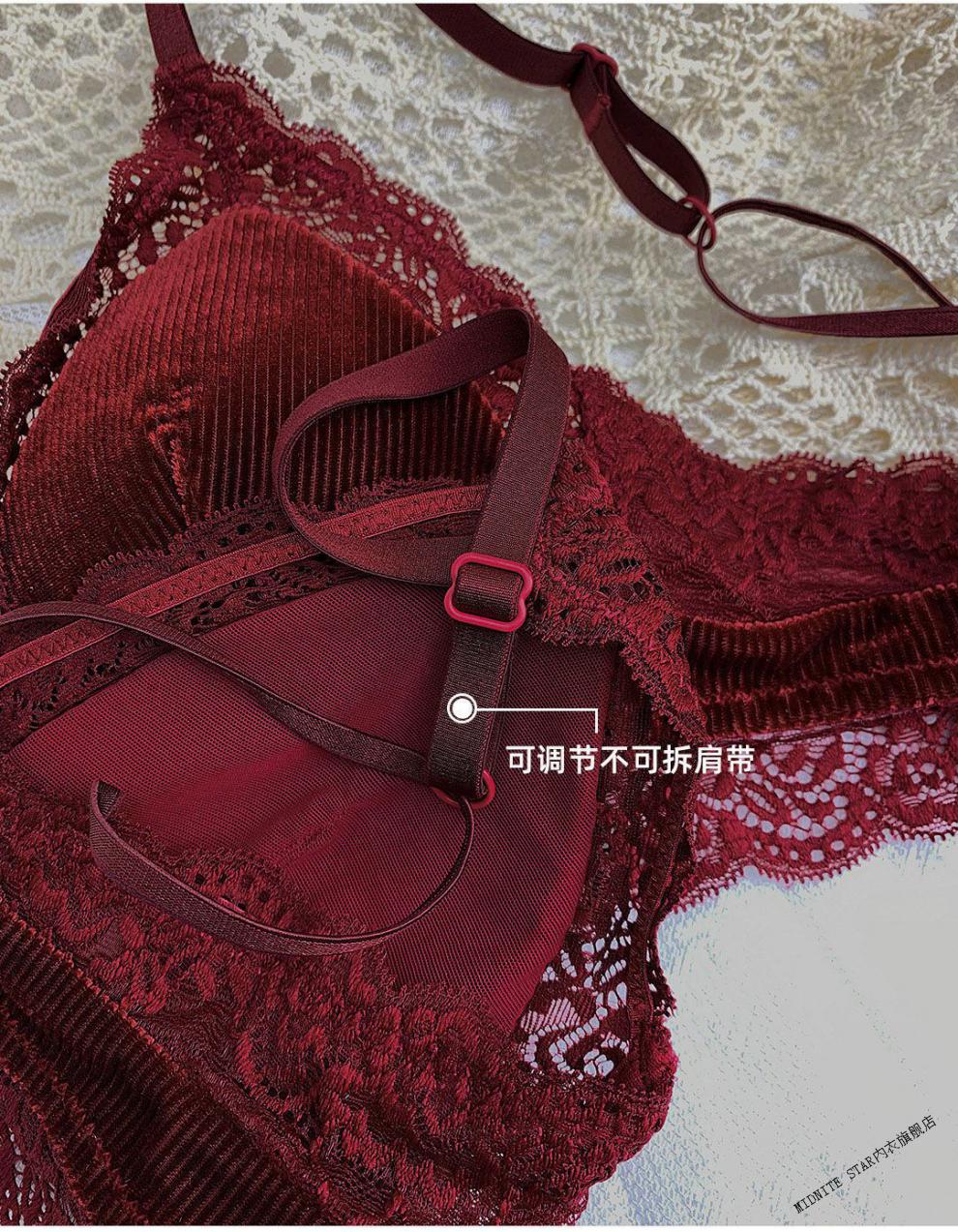 MIDNITE STAR underwear women's thin large breasts showing small breasts push-up bra sexy French wire-free red bra wedding animal year burgundy suit 32/70B