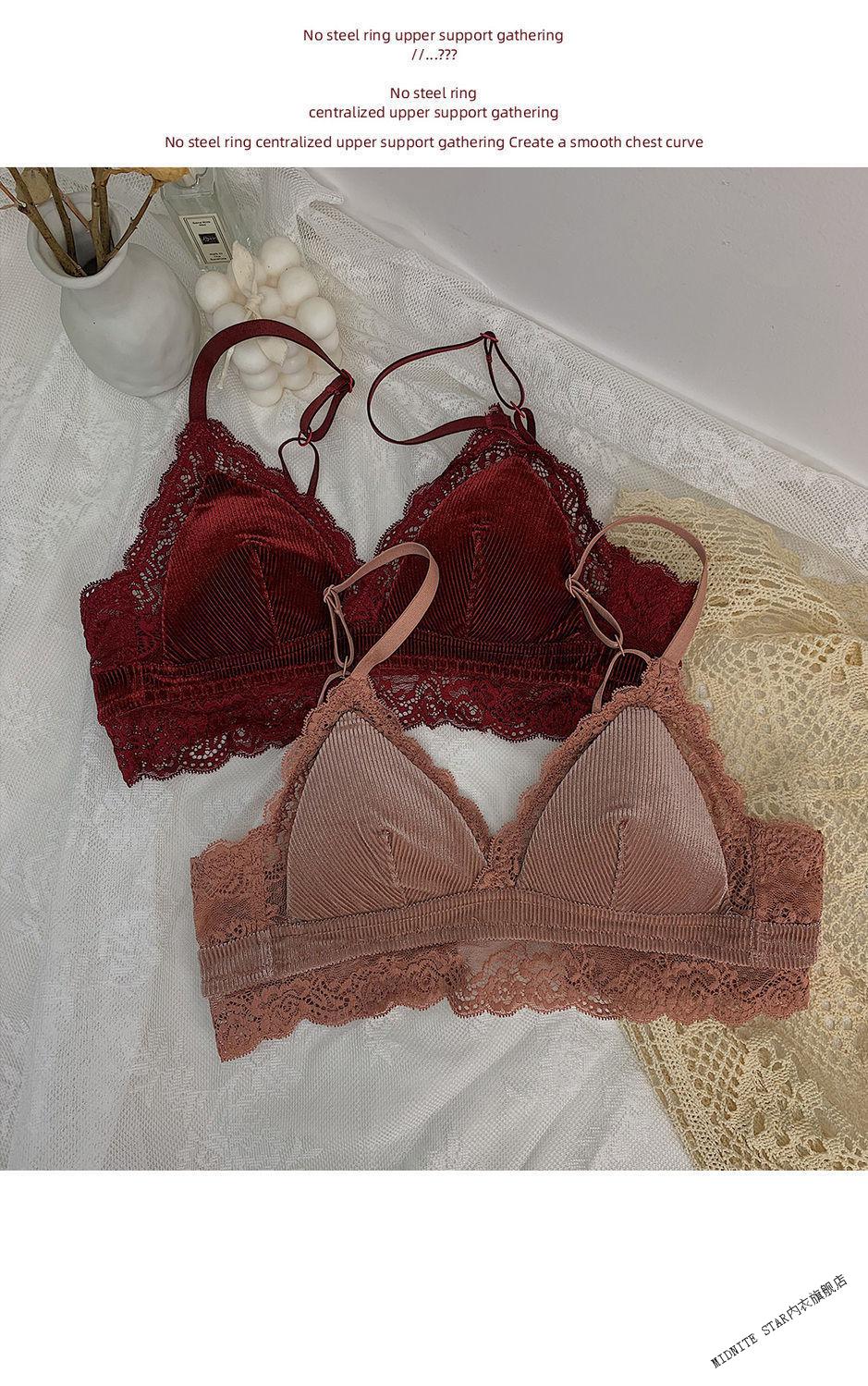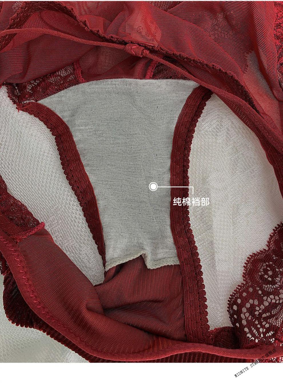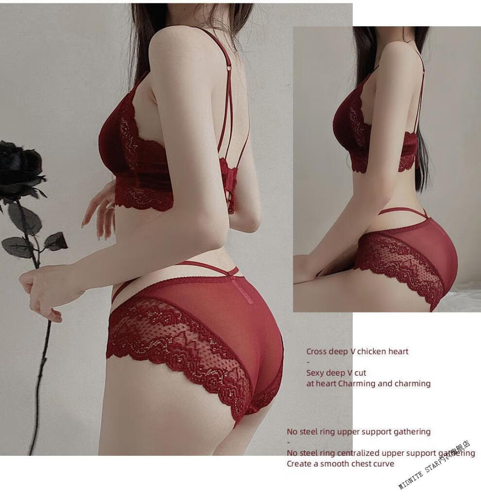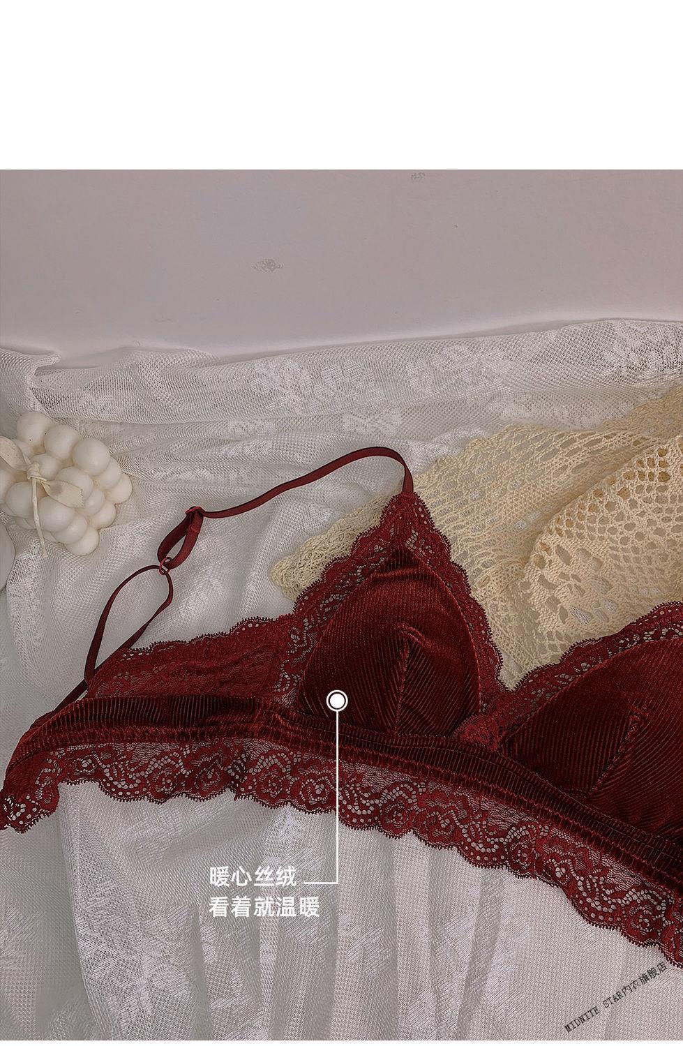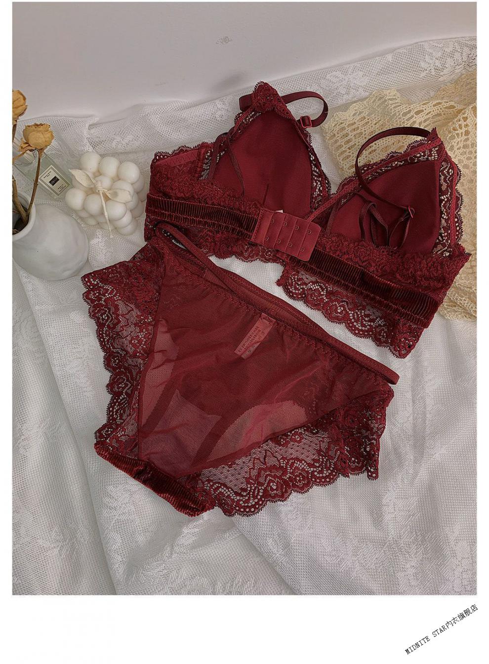 MIDNITE STAR underwear women's thin large breasts showing small breasts push-up bra sexy French wire-free red bra wedding animal year burgundy suit 32/70B