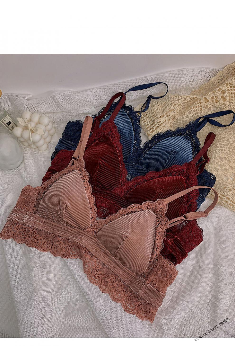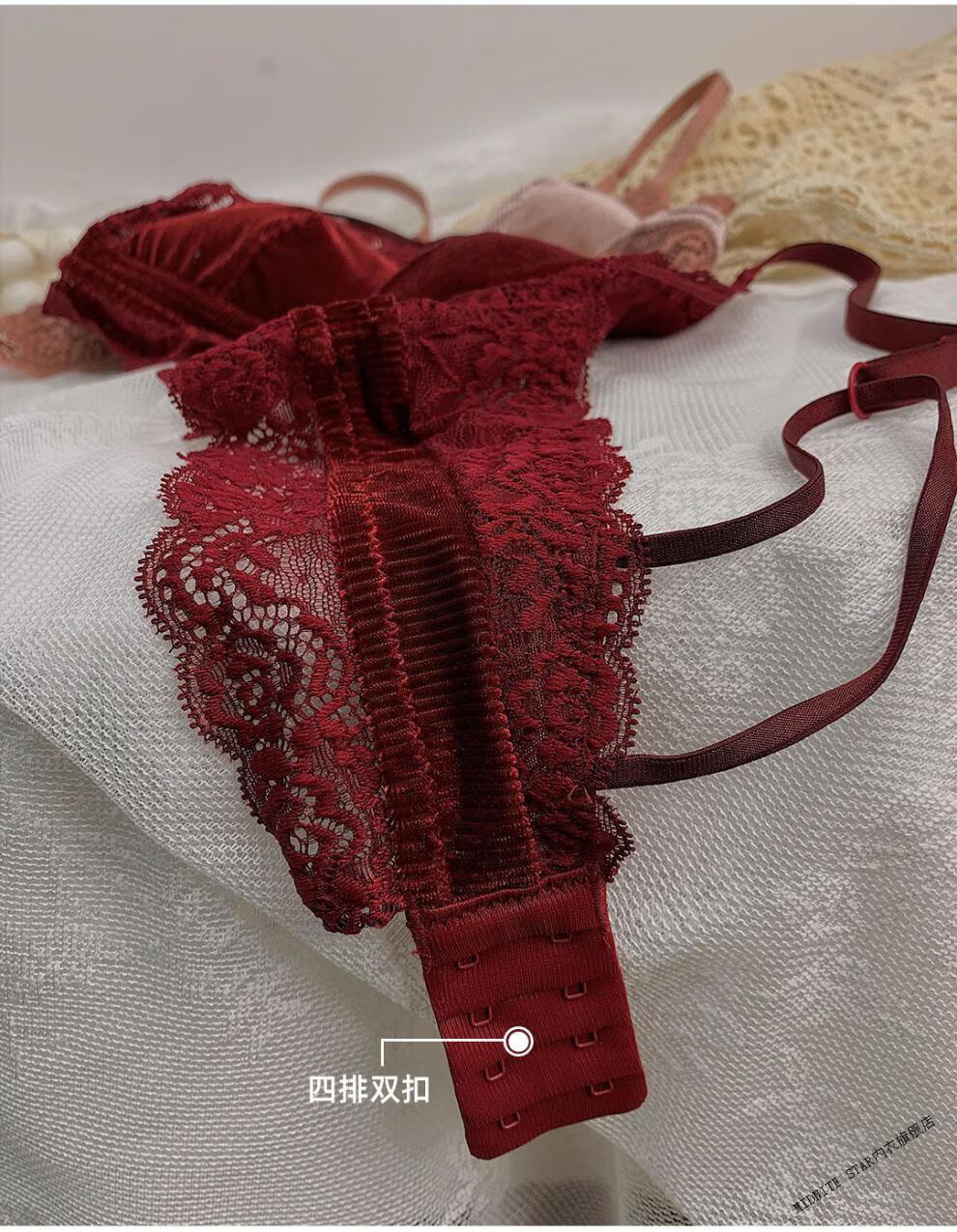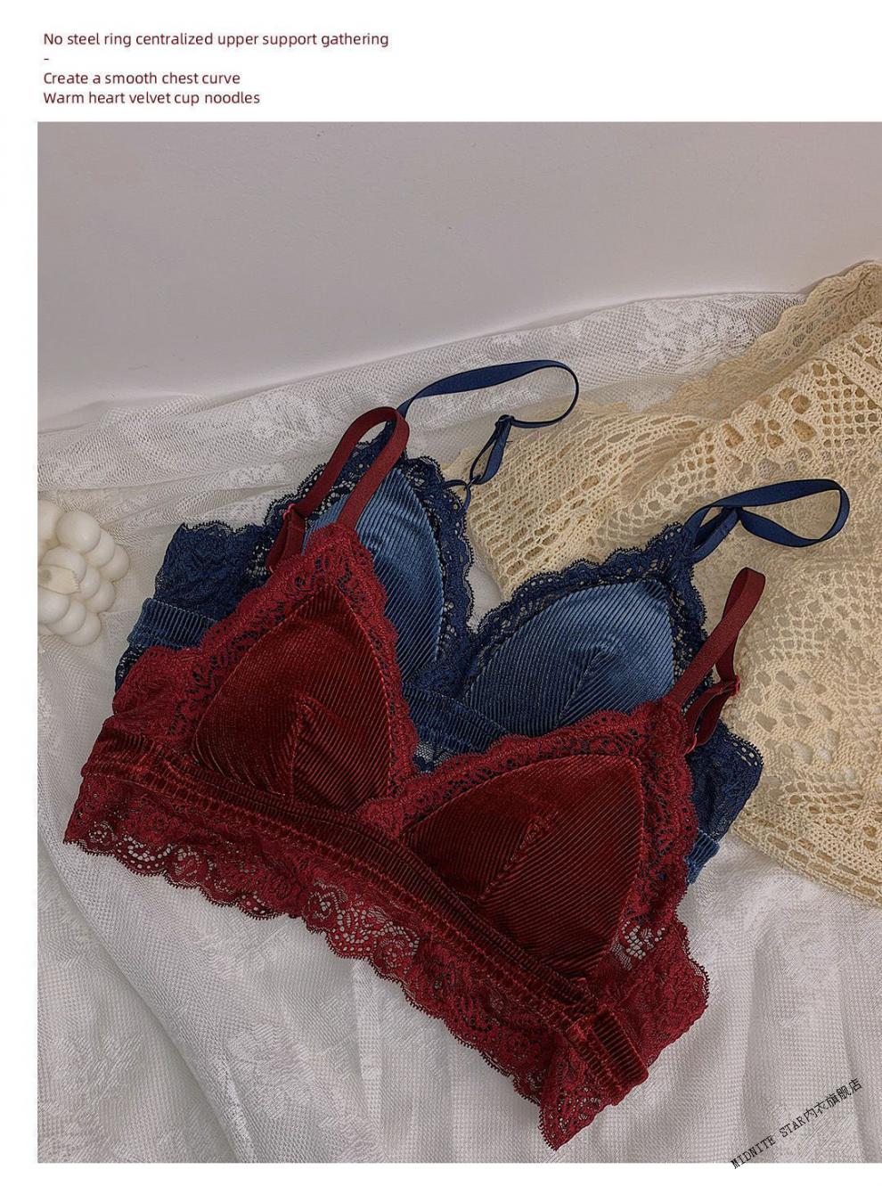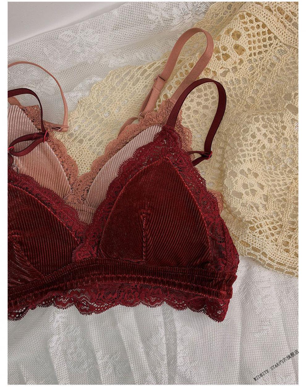 MIDNITE STAR underwear women's thin large breasts showing small breasts push-up bra sexy French wire-free red bra wedding animal year burgundy suit 32/70B