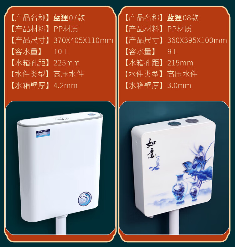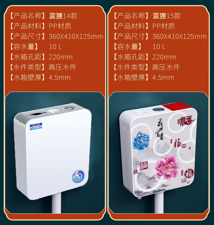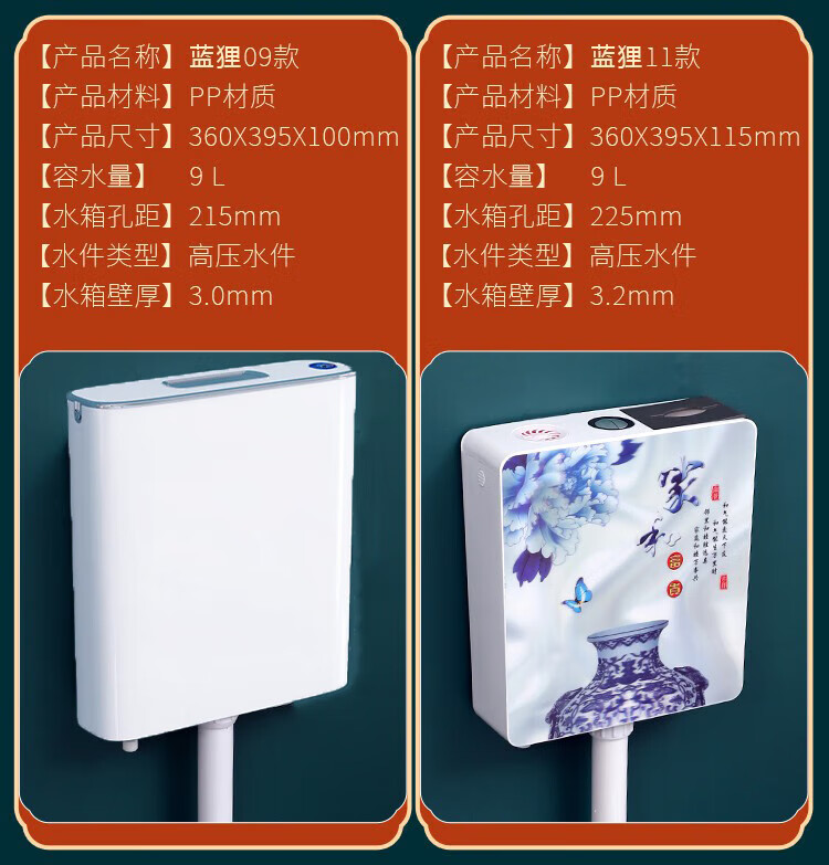 Jiumuwang household water tank bathroom squat toilet energy-saving toilet water tank squatting pit pumping thickened wall-mounted toilet flush tank 04 models with spice box