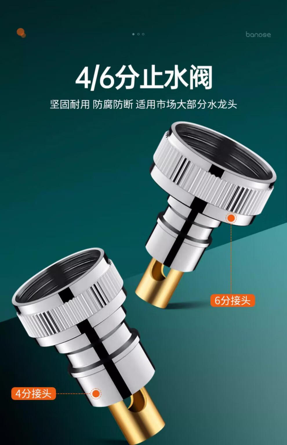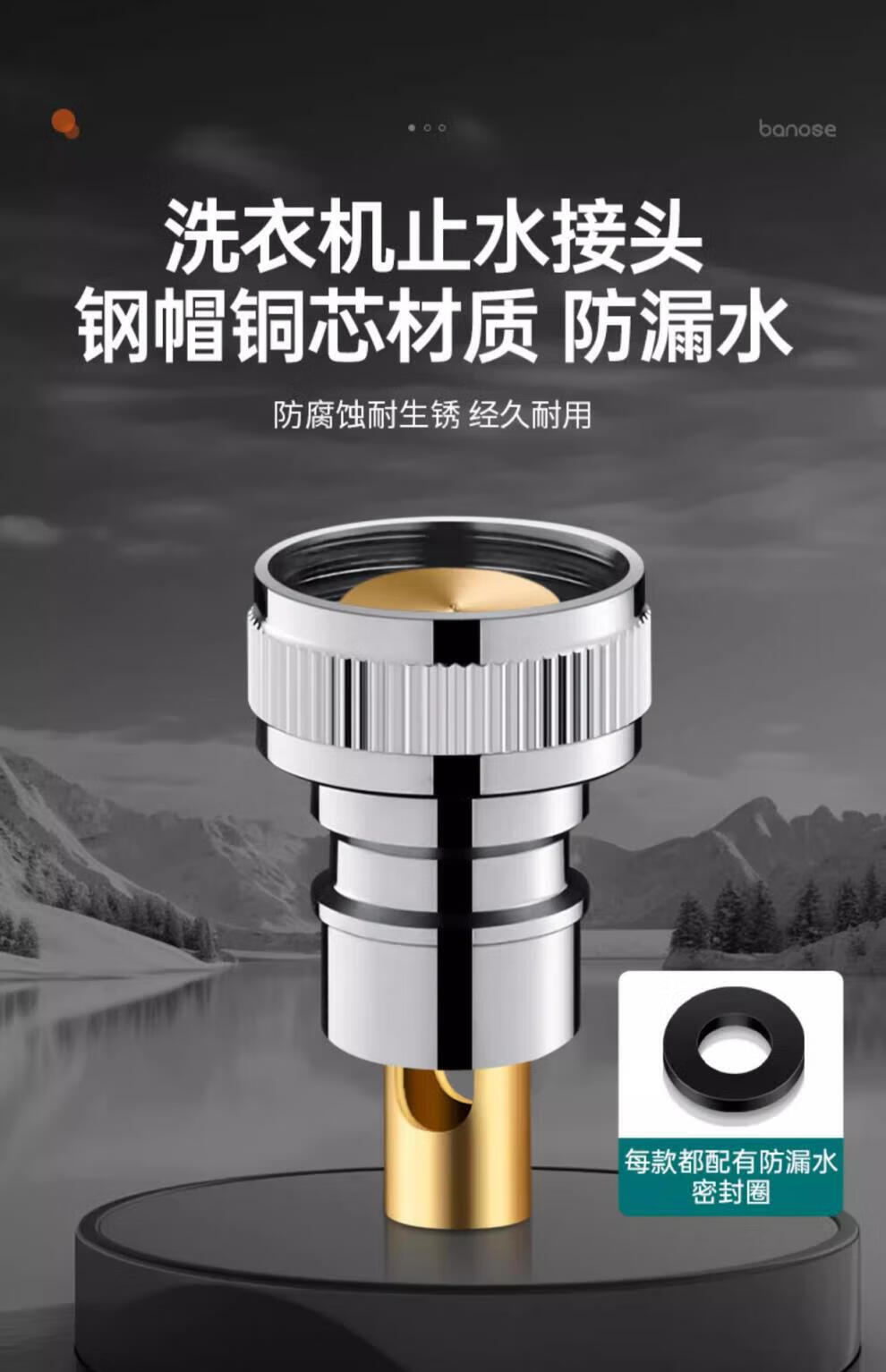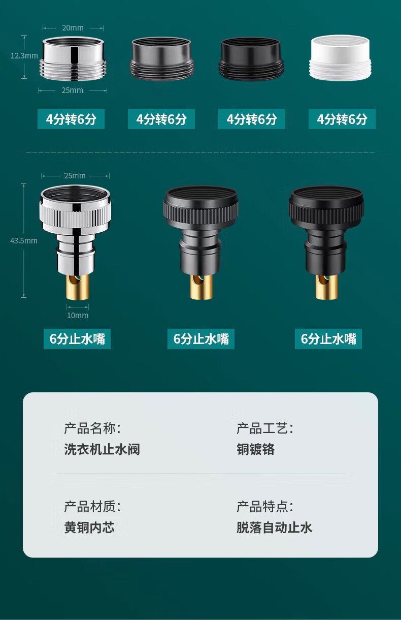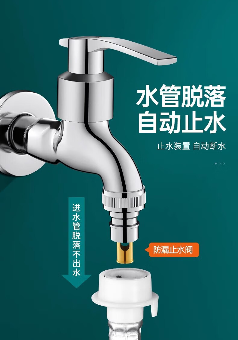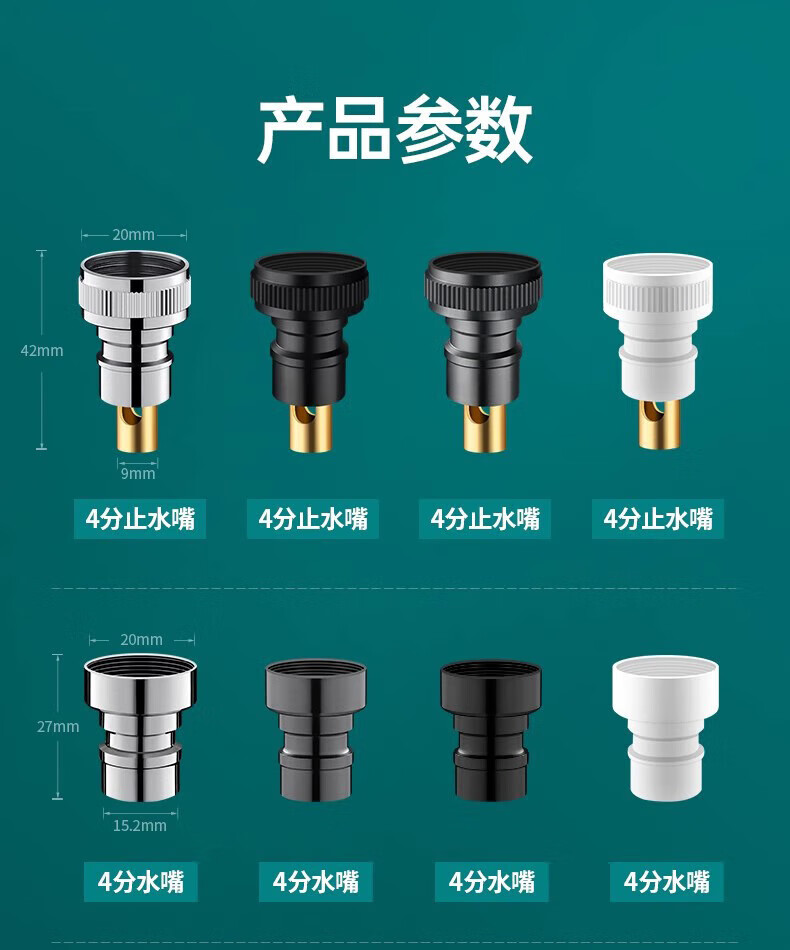 Jiumuwang fully automatic washing machine faucet water stop valve anti-falling check valve all-copper spout 4-point conversion 6-point connector silver model copper 4-point automatic water stop rod