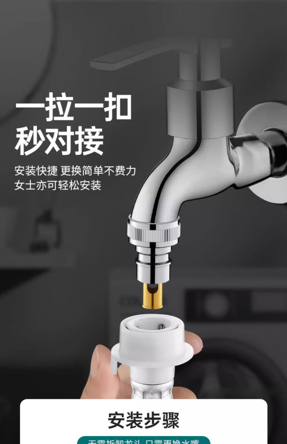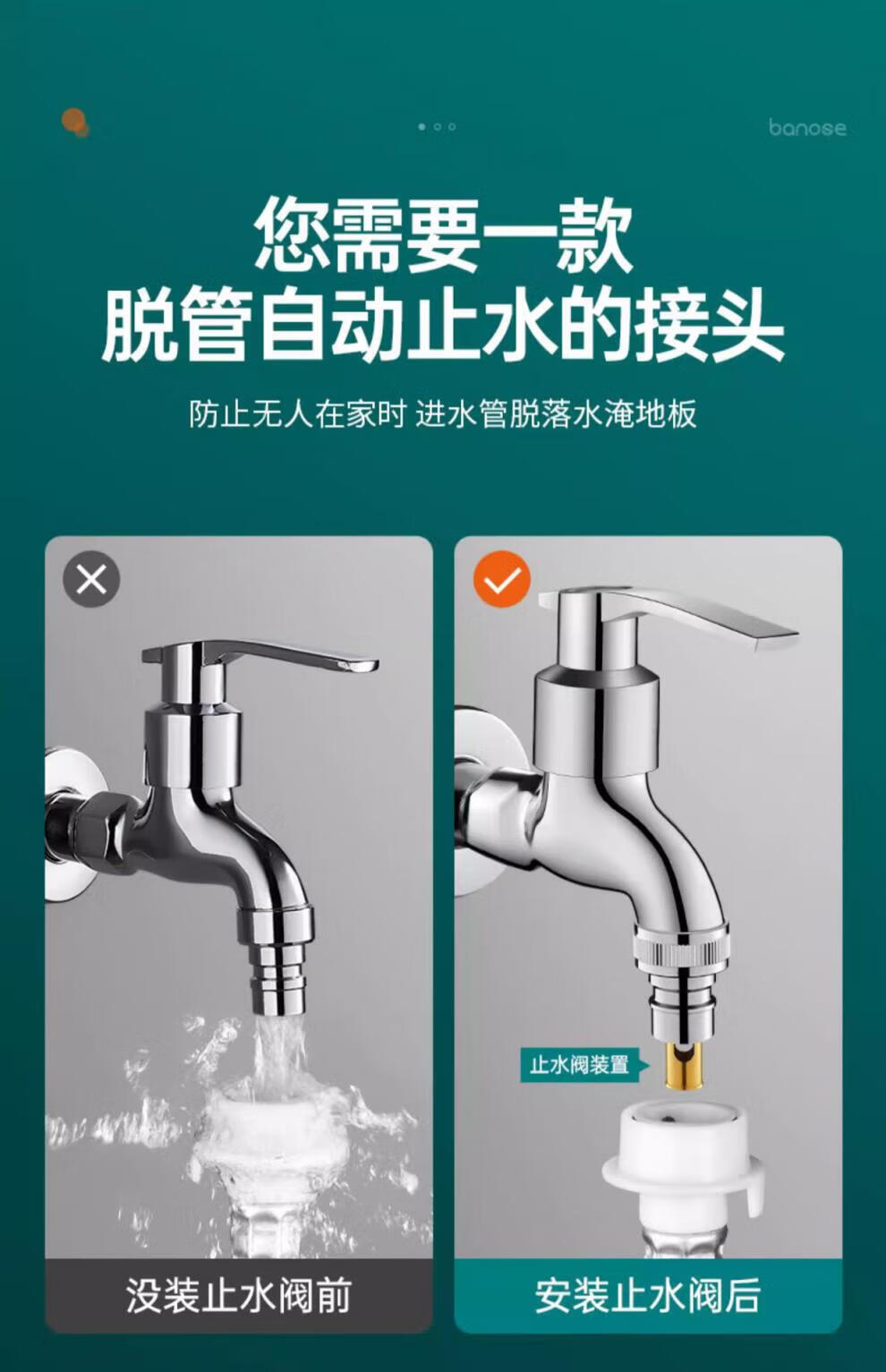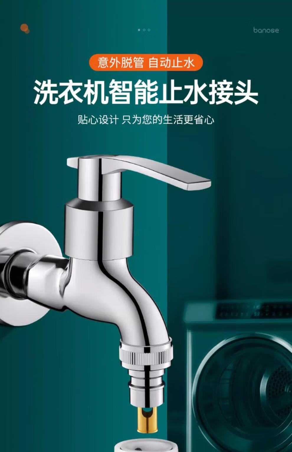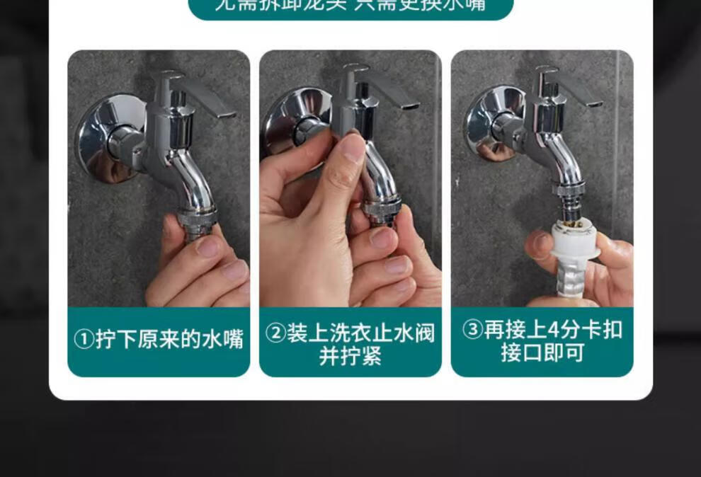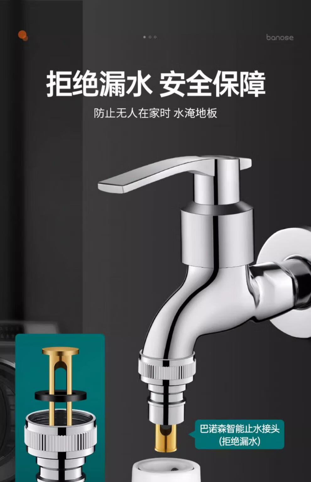 Jiumuwang fully automatic washing machine faucet water stop valve anti-falling check valve all-copper spout 4-point conversion 6-point connector silver model copper 4-point automatic water stop rod
