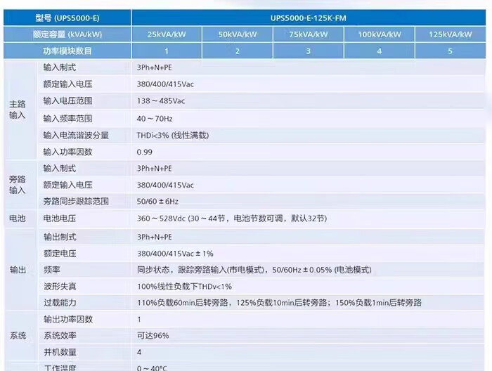UPS power supply modular 5000-E-120K-FM 120KVA cabinet equipped with 30KW power module