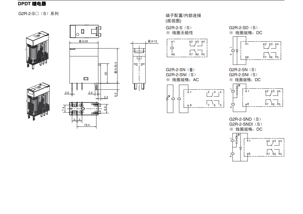 G2R-1 2-SND SN(S) DC24V Omron intermediate relay 24VDC universal small power pluggable G2R-2-SN DC24(L) two open and two closed 8 feet 5A