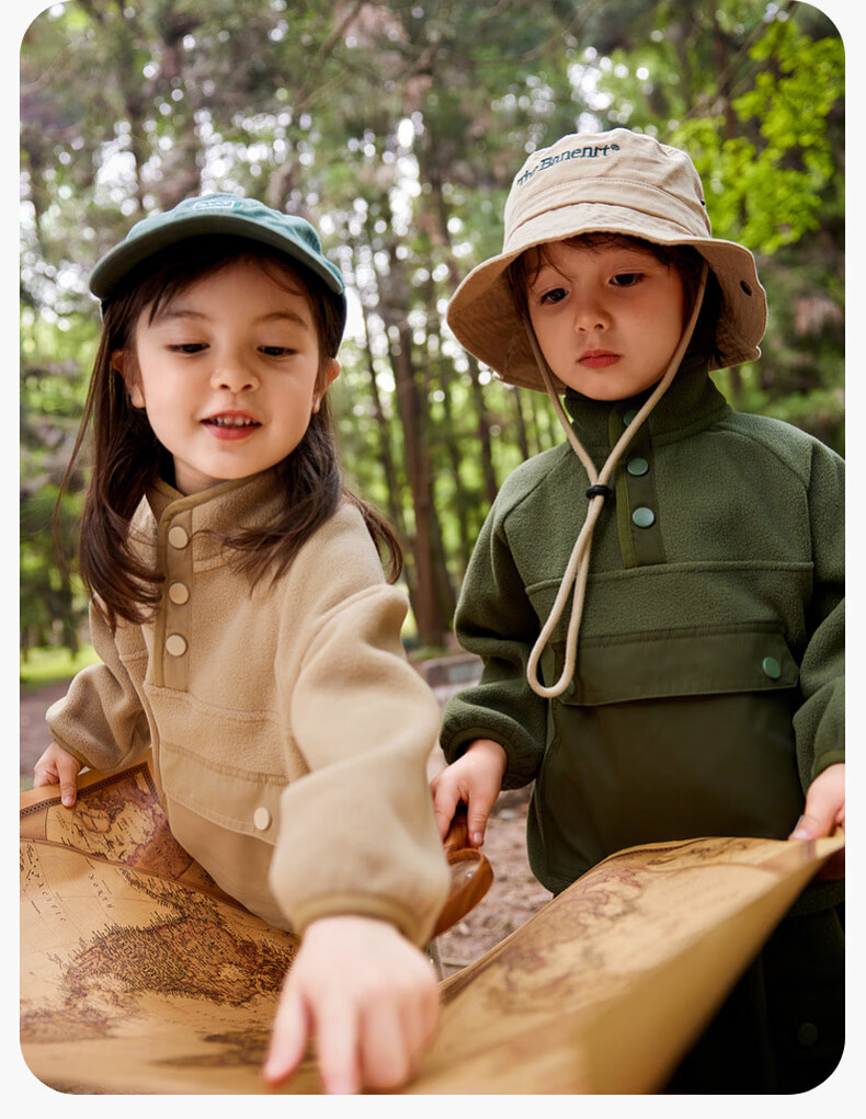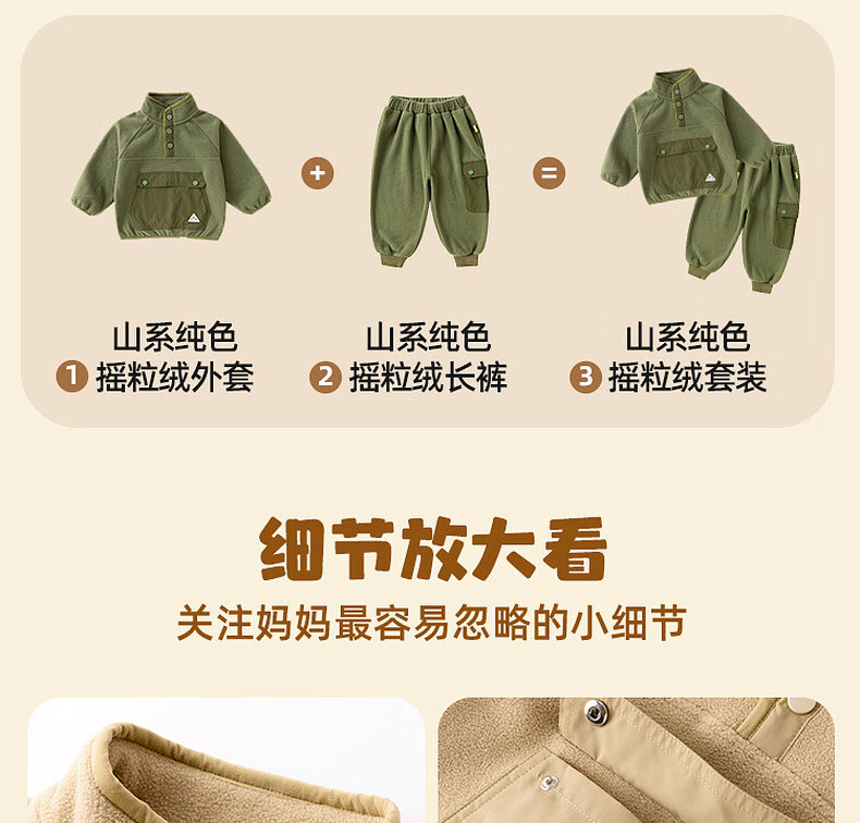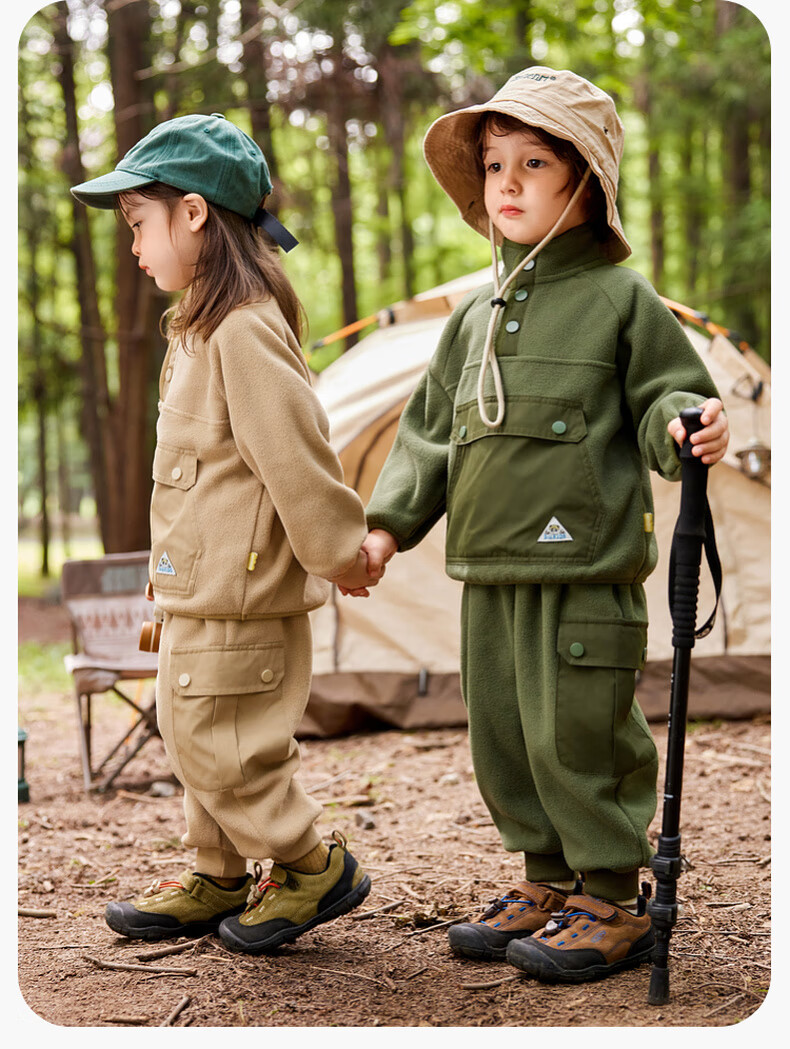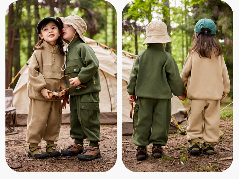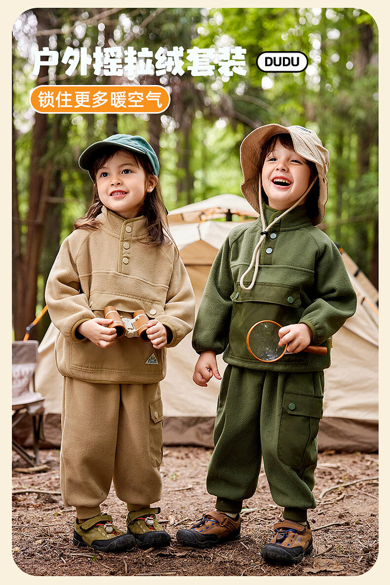 Dudujia Boys Outdoor Suit Autumn Clothes Children's Camping Style Stand Collar Pullover Trousers Girls Fashionable Fleece Jackets Tops and Pants Green 90