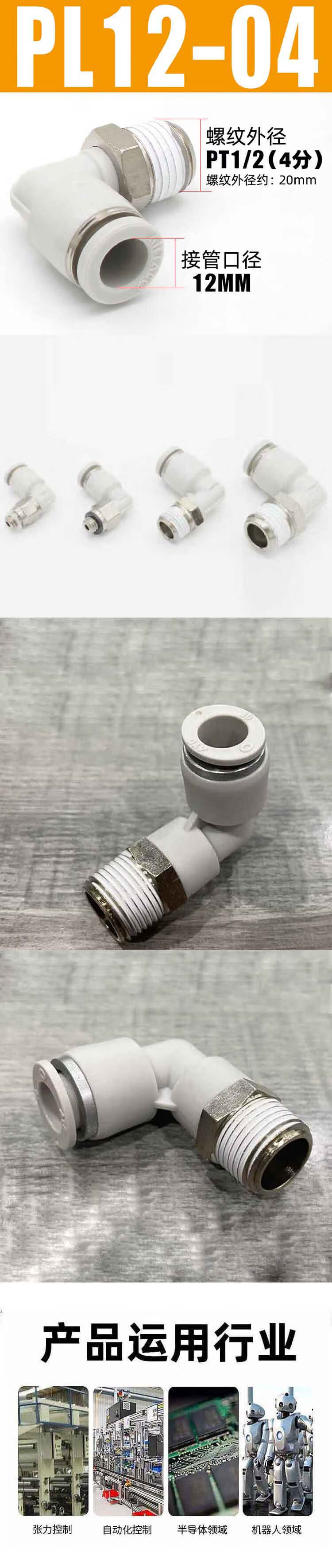 Airtac Threaded Tracheal Elbow PL12-04 1 pack 3 pcs/pack