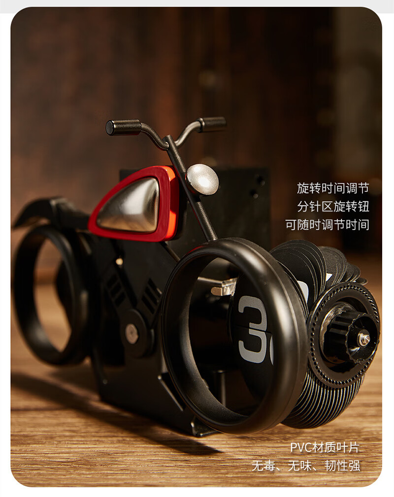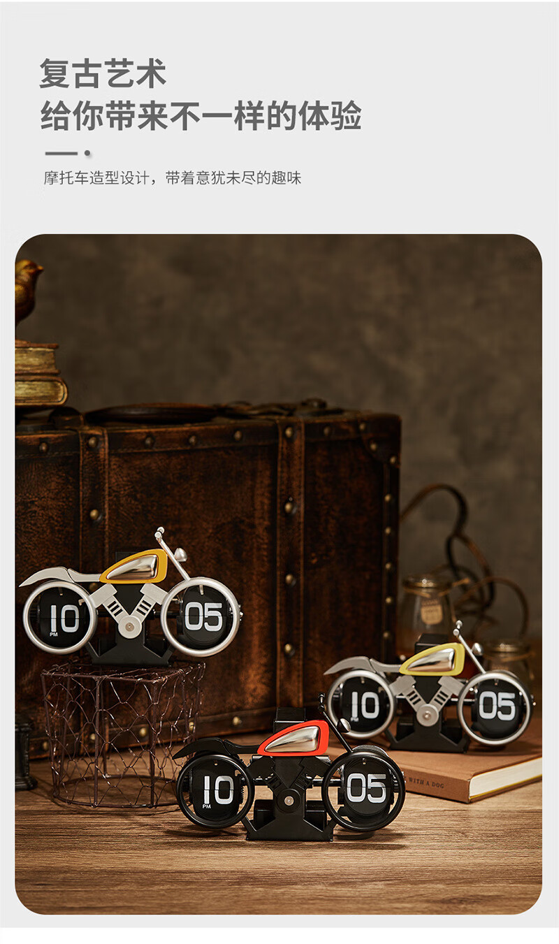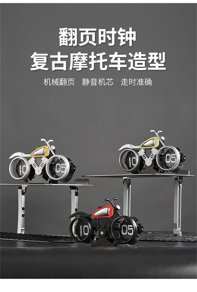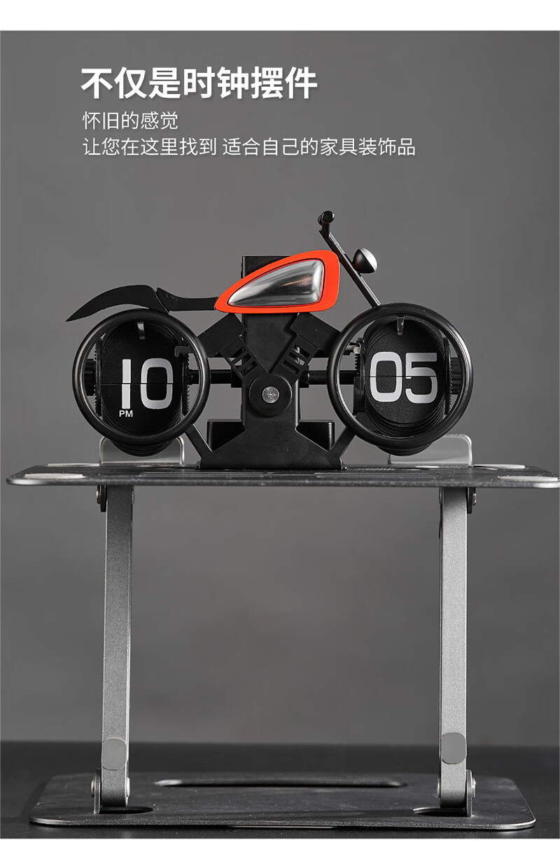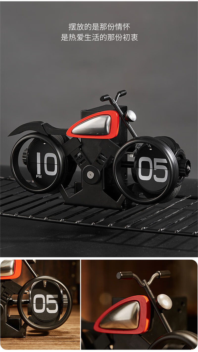 Retro European-style desktop mechanical automatic page-turning clock for home living room and office creative desktop clock ornaments, motorcycle matte black and red, free battery