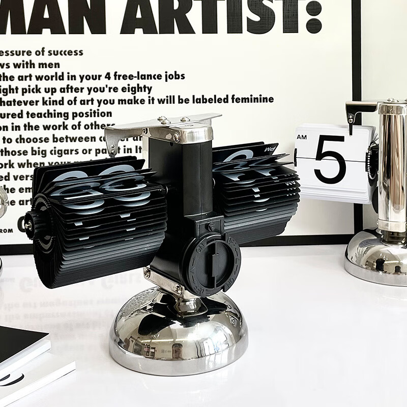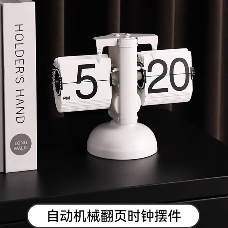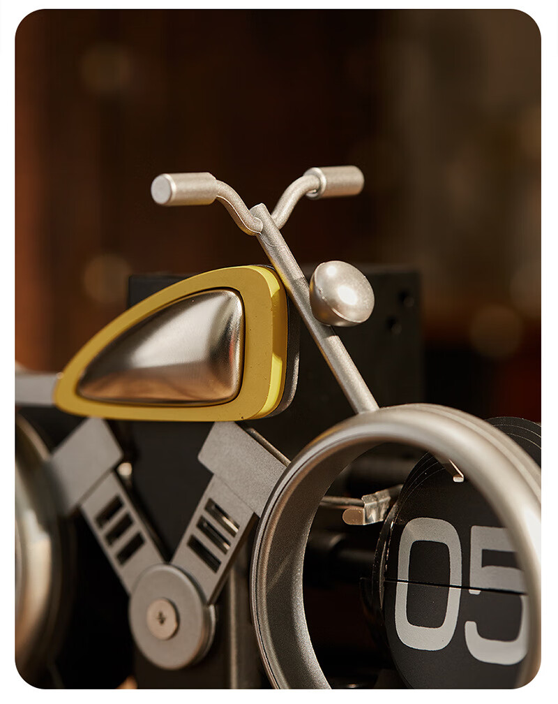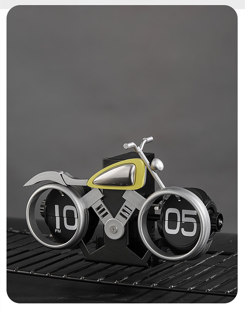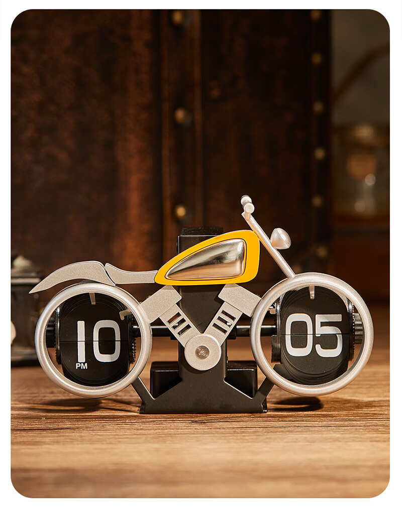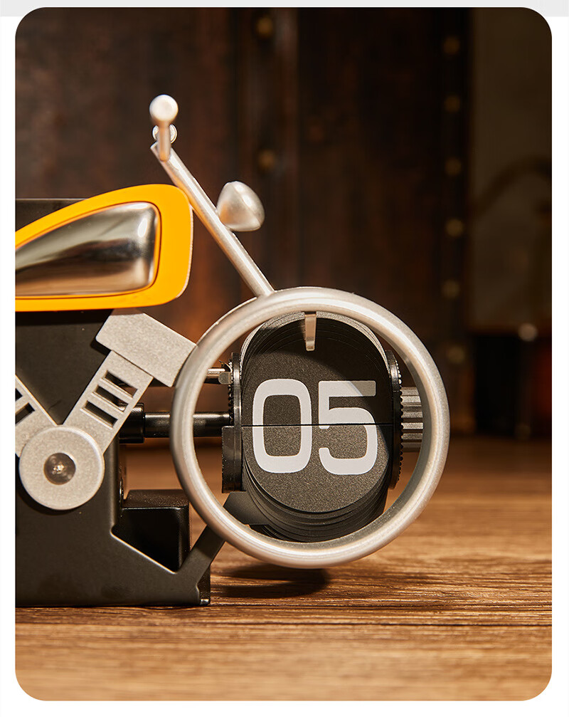 Retro European-style desktop mechanical automatic page-turning clock for home living room and office creative desktop clock ornaments, motorcycle matte black and red, free battery