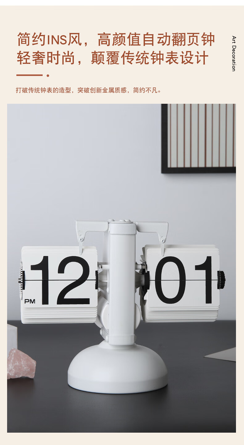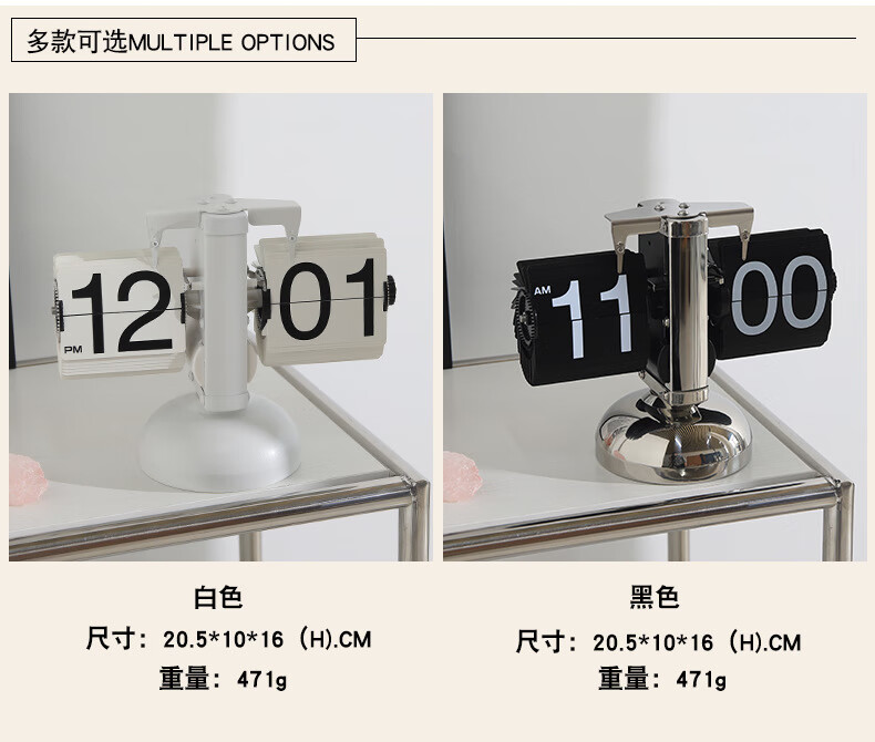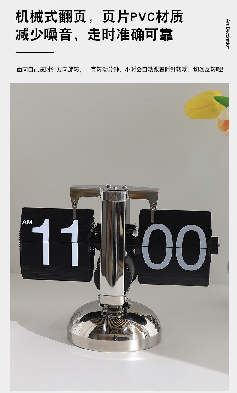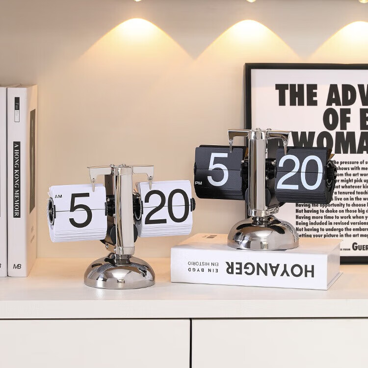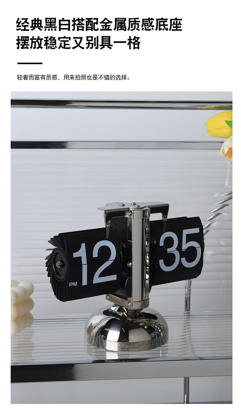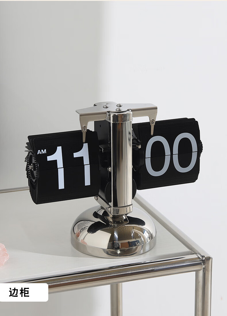 Retro European-style desktop mechanical automatic page-turning clock for home living room and office creative desktop clock ornaments, motorcycle matte black and red, free battery