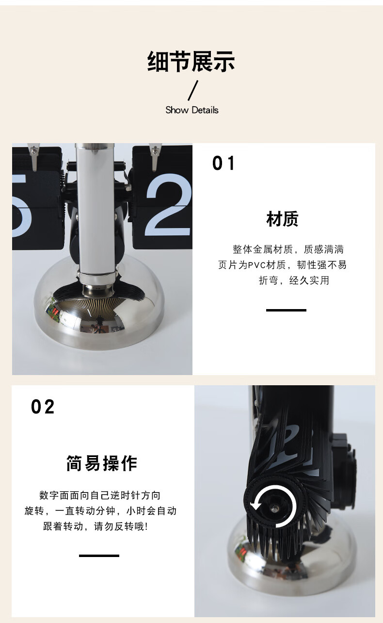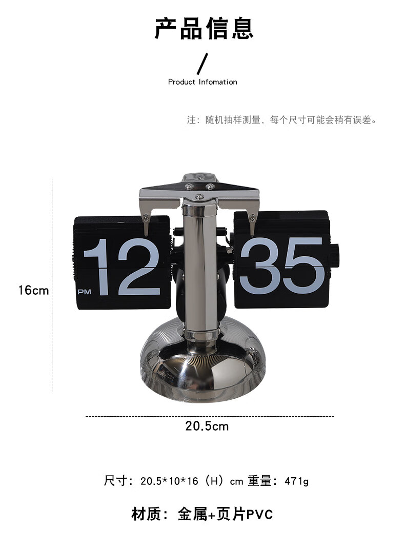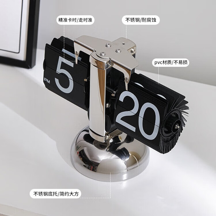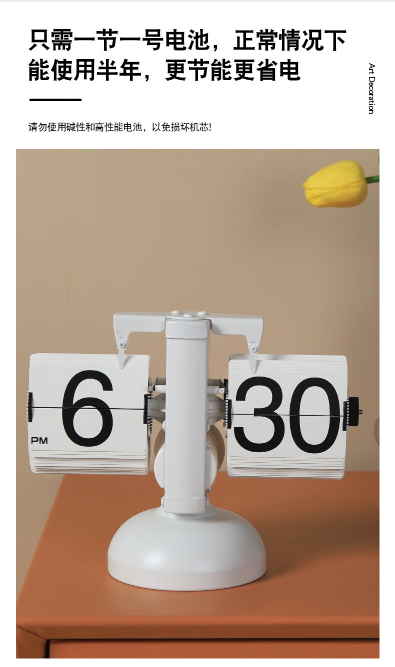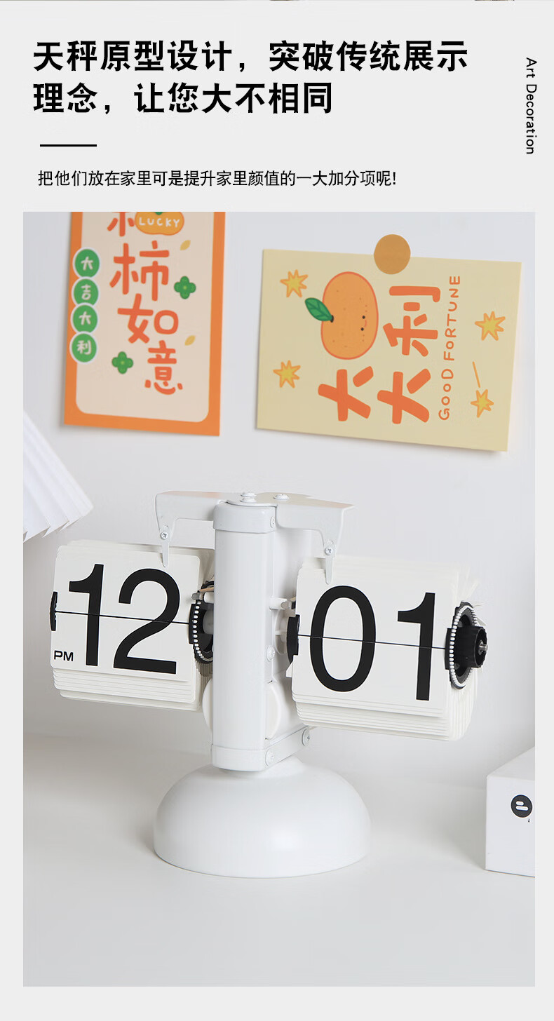 Retro European-style desktop mechanical automatic page-turning clock for home living room and office creative desktop clock ornaments, motorcycle matte black and red, free battery