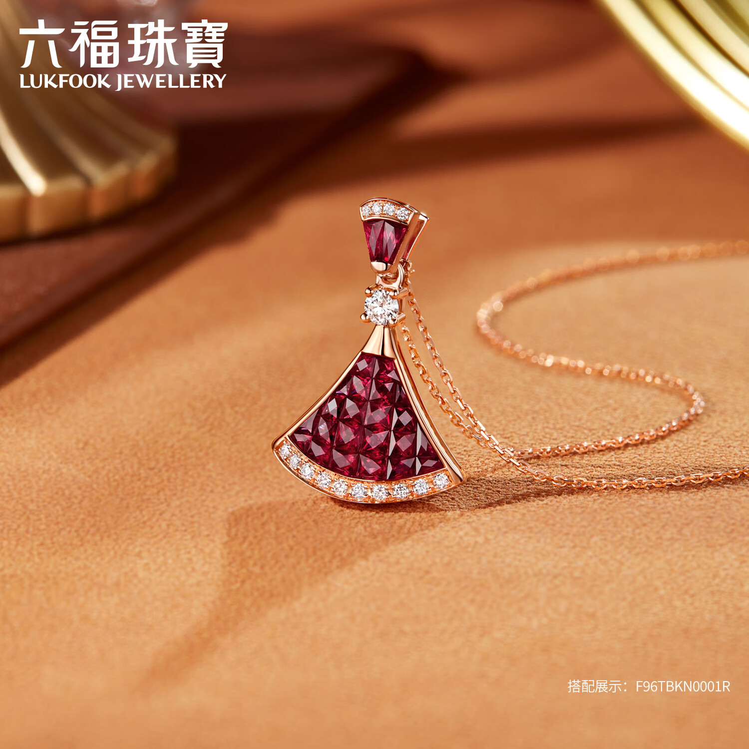 Lukfook Jewelry 18K gold mini skirt ruby diamond pendant pendant without necklace G02DSKP0001R total weight 2.11 grams