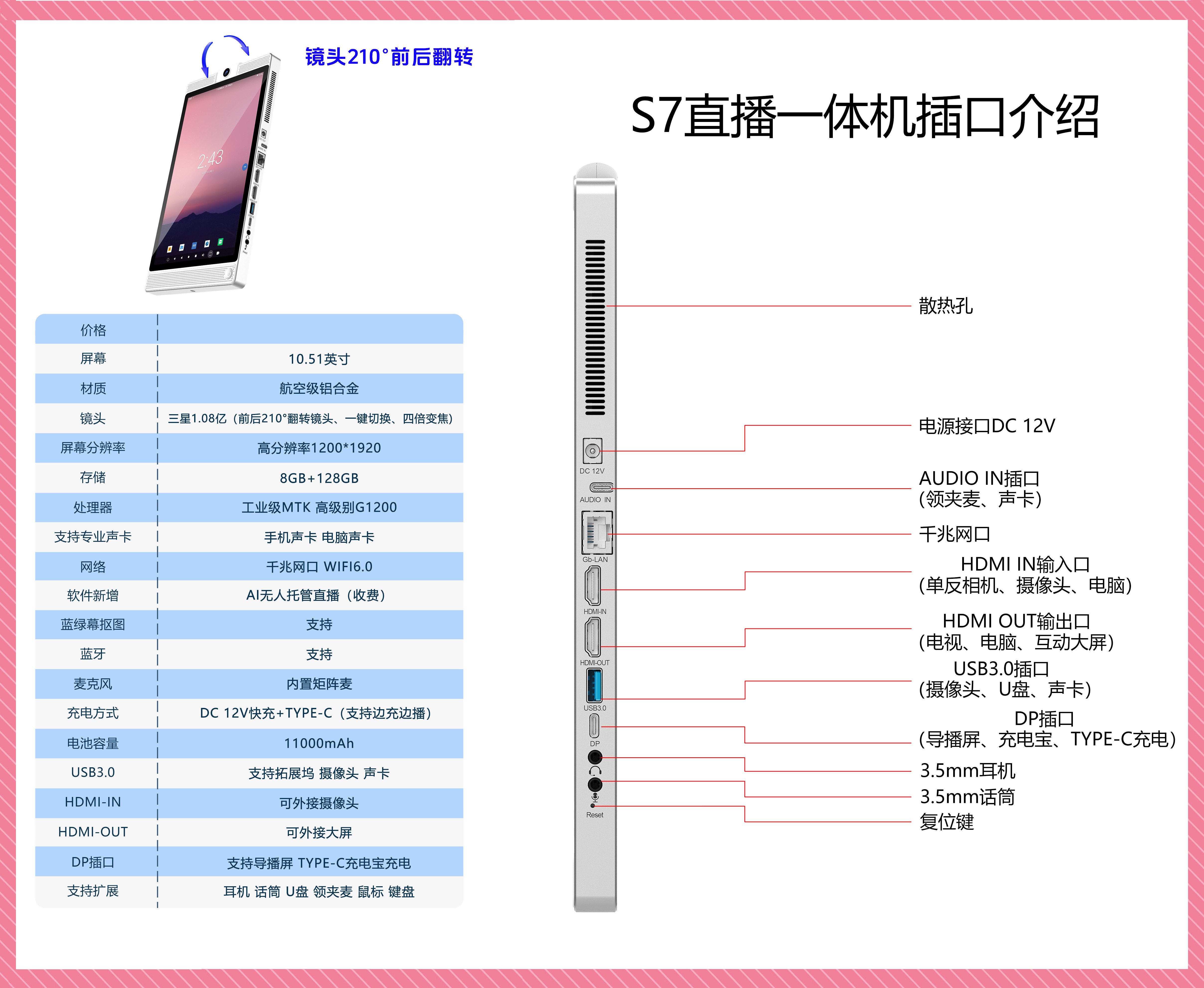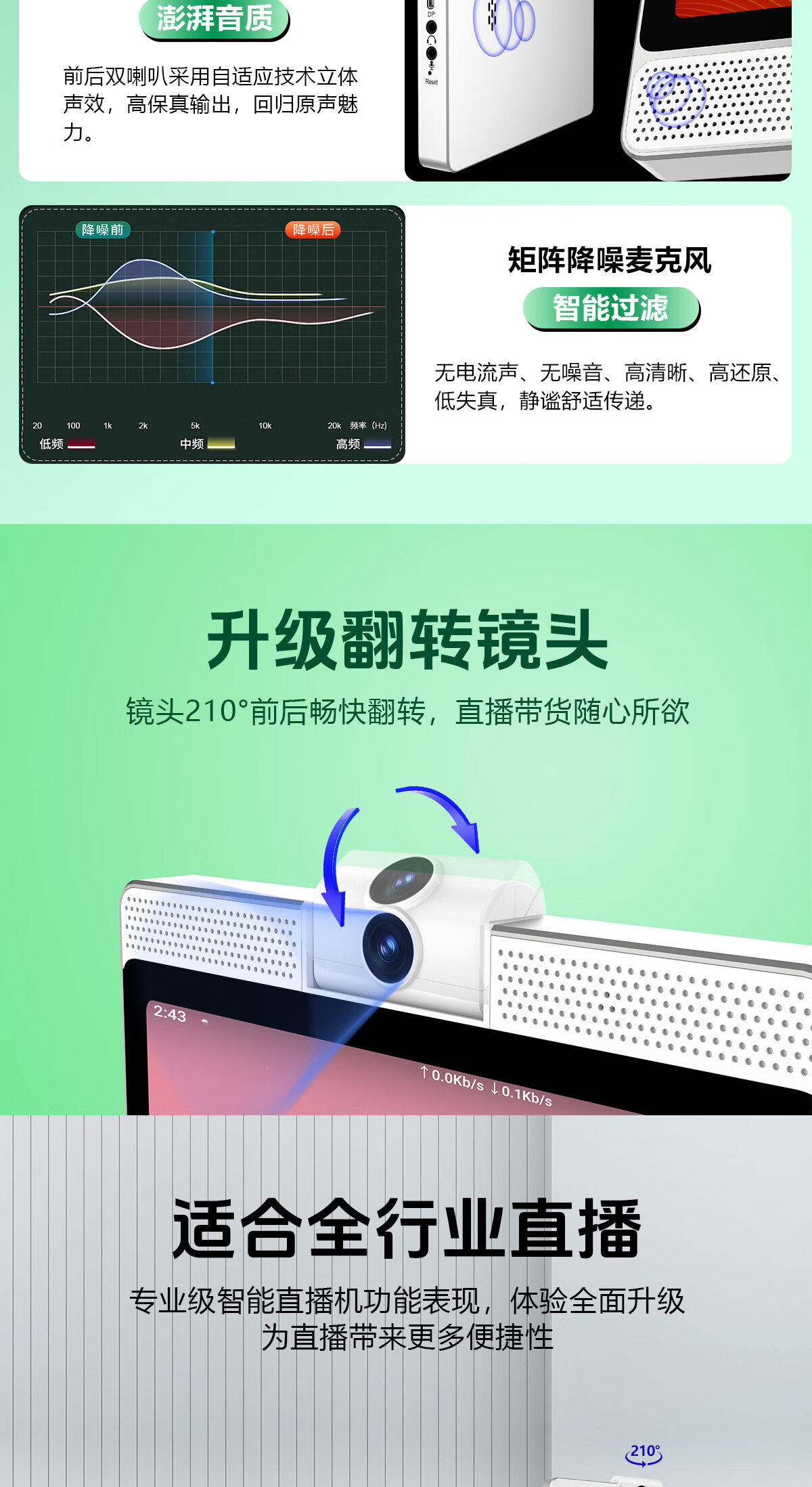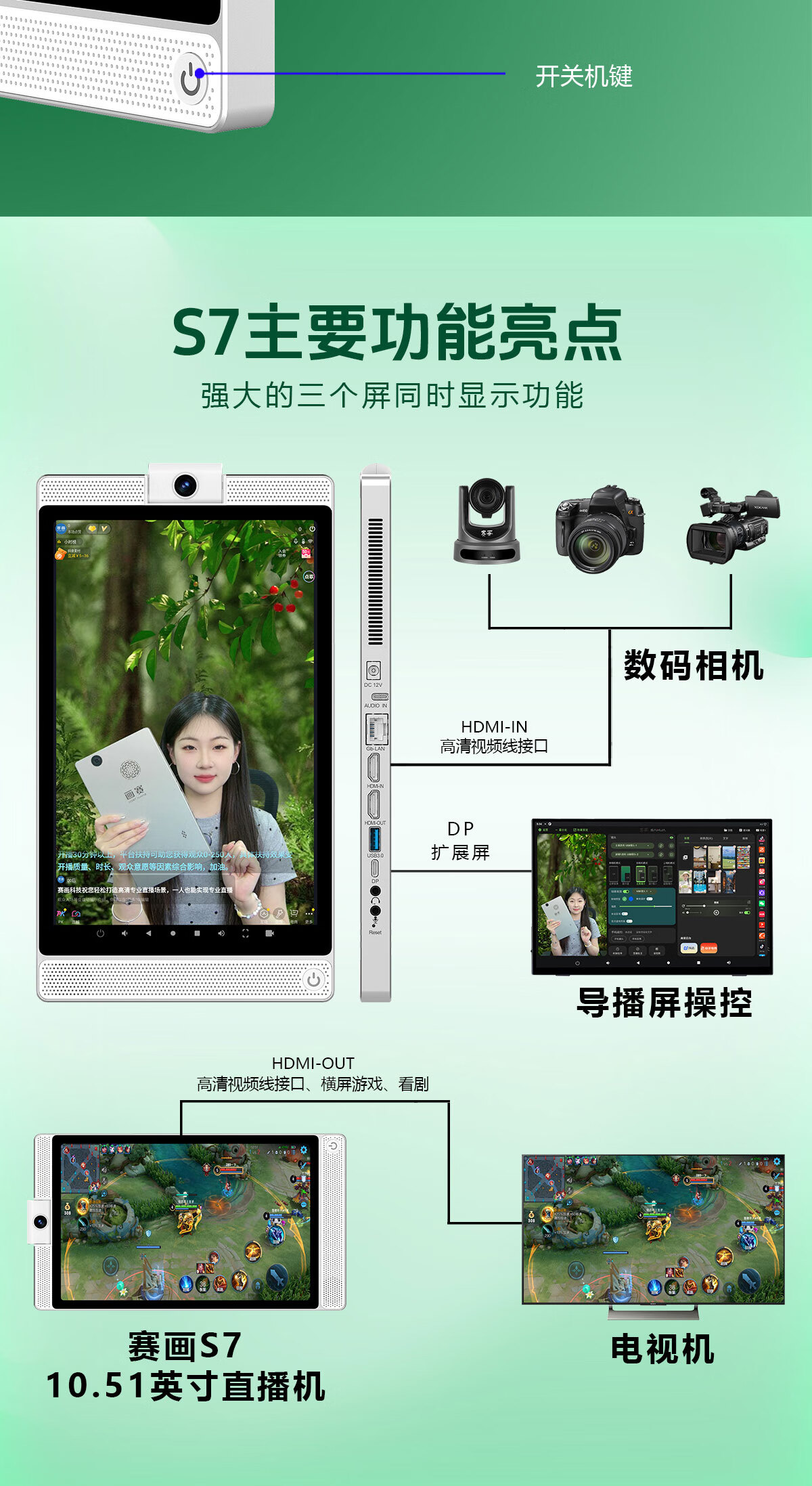 Saihua live broadcast machine New Saihua S7 live broadcast all-in-one machine 100 million pixels reversal lens live broadcast equipment full set of high-definition green screen virtual background live broadcast Douyin AI hosting (shipped nearby) S7+green screen+desktop stand+storage bag+AI live broadcast