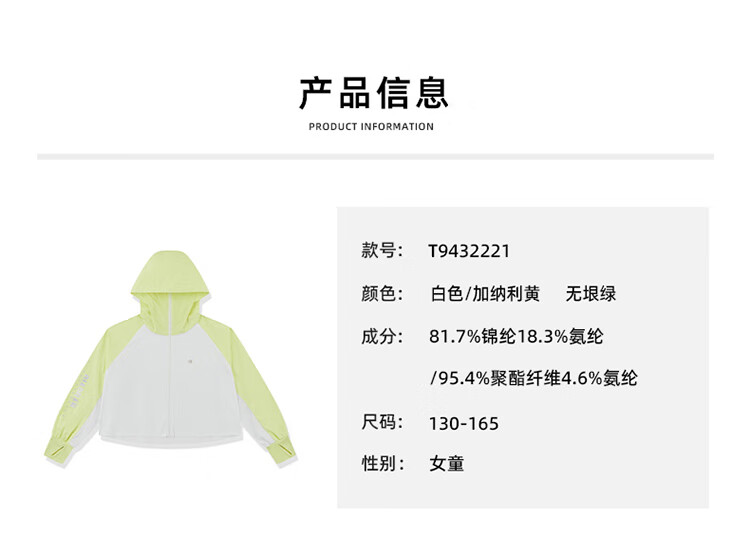 Jordan QIAODAN shopping mall same style children's clothing, girls' sun protection clothes, children's thin coat, summer new big children's cape cover, white/Canary yellow 160