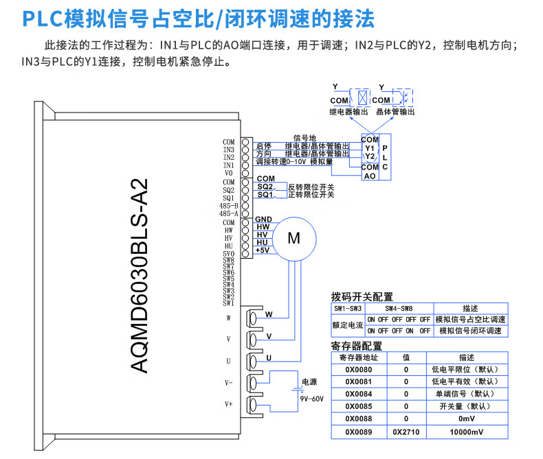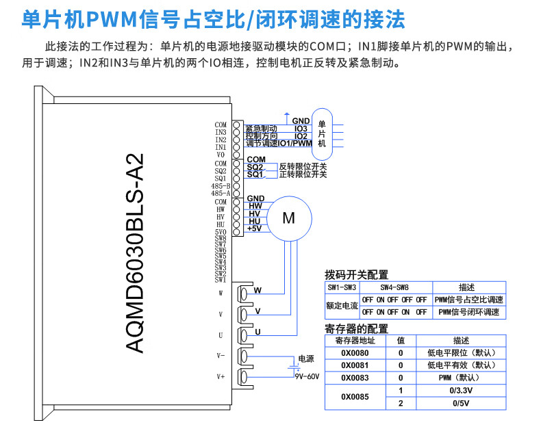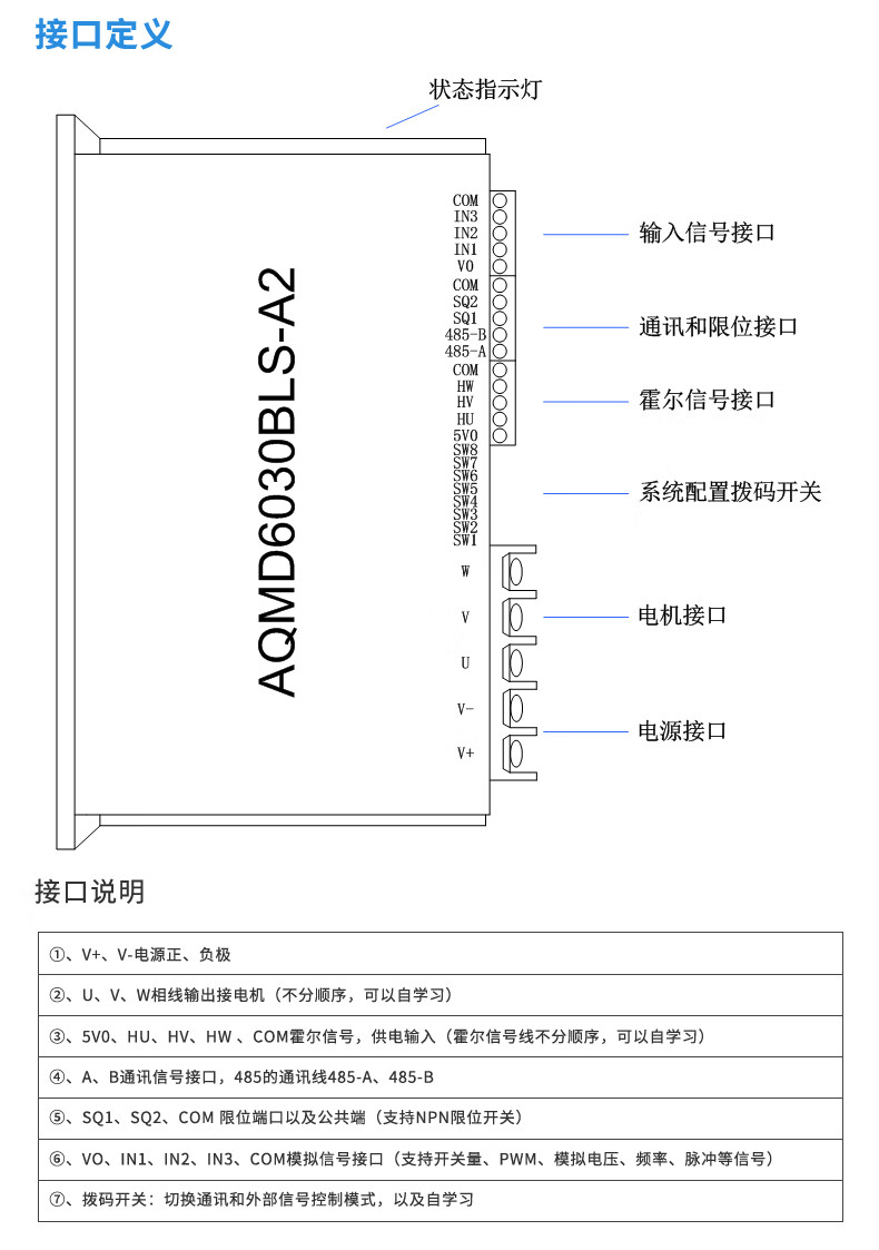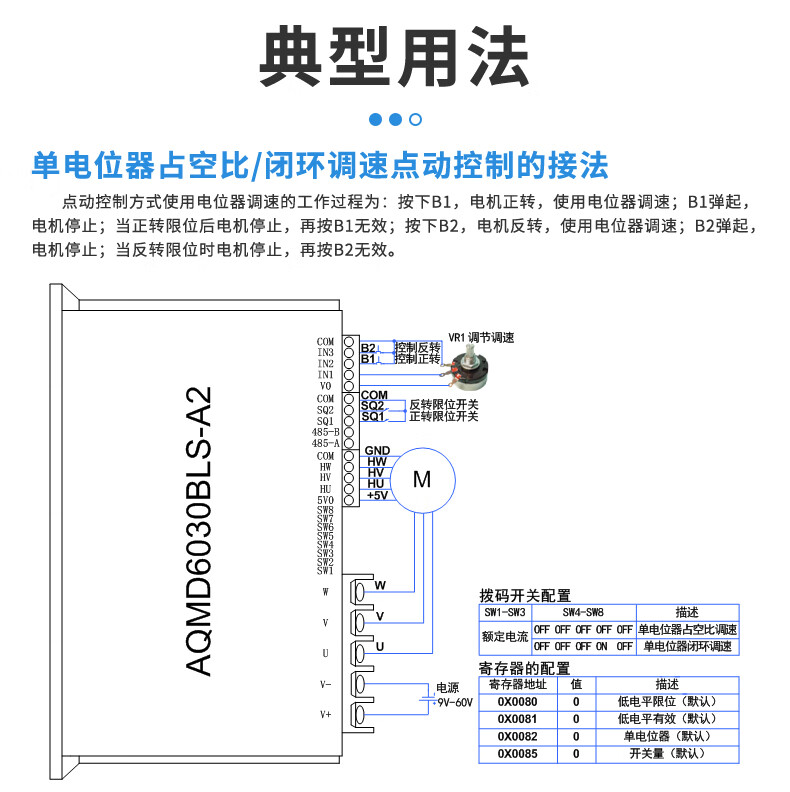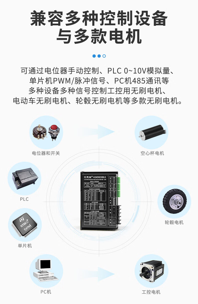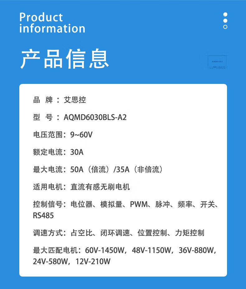 Acetron AQMD6030BLS-A2 DC brushless motor driver controller 30A high current analog/pulse/RS485 standard model