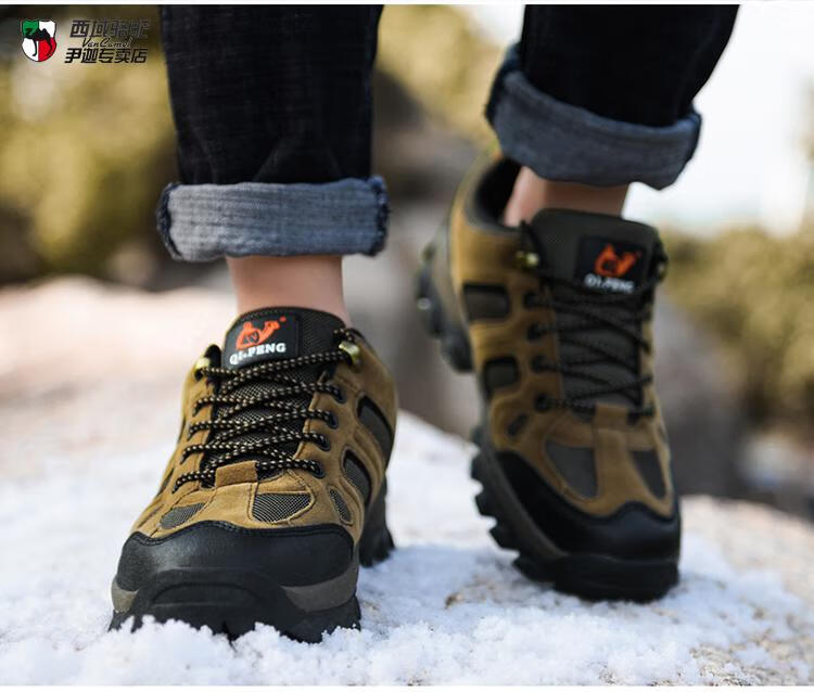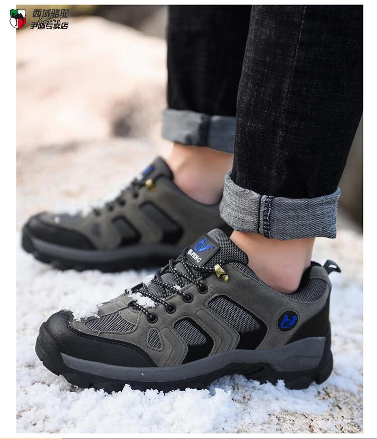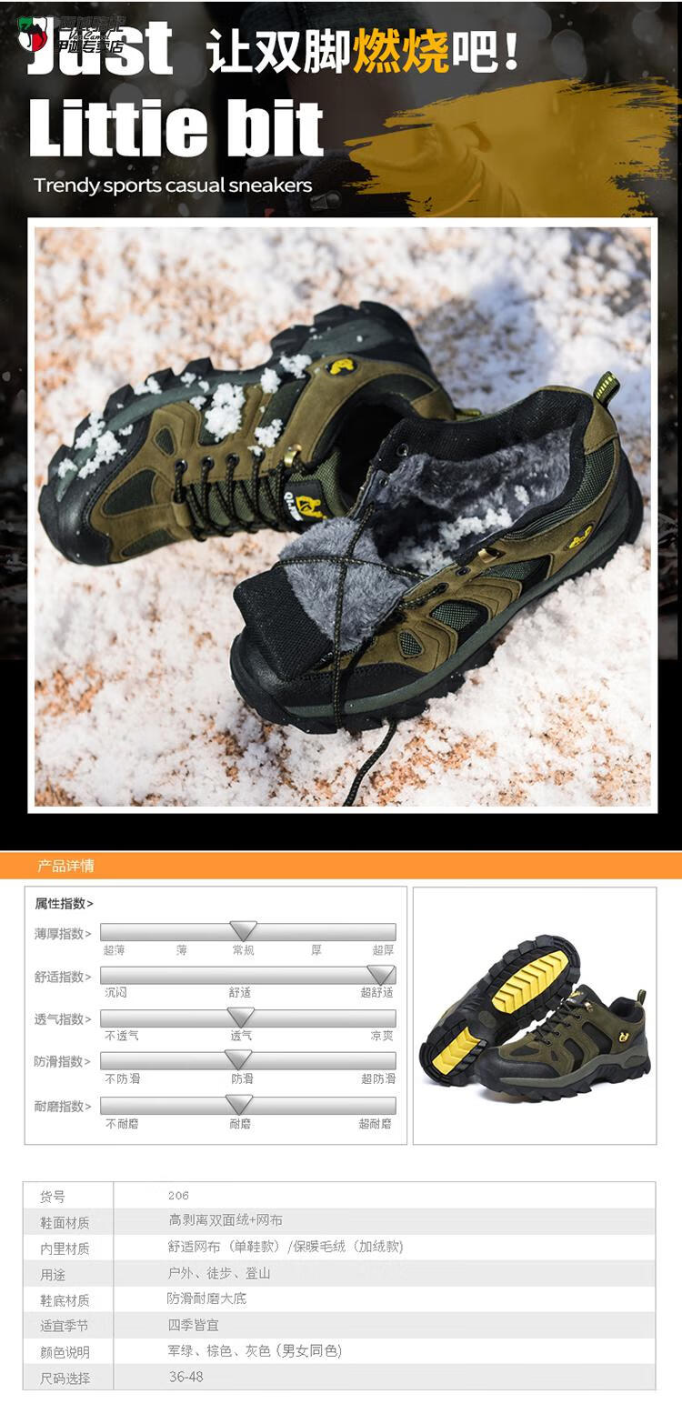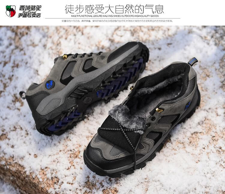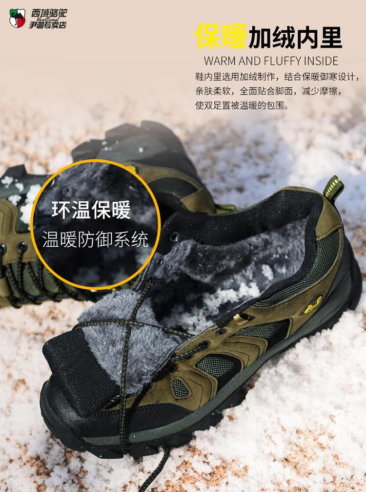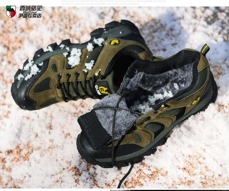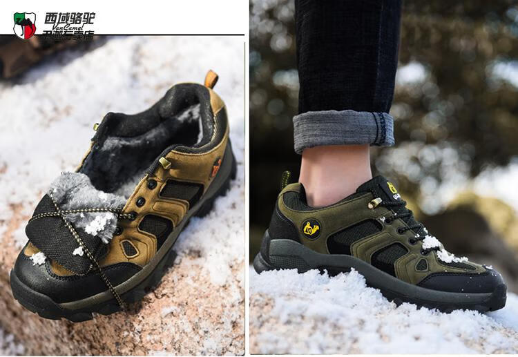 Western Camel (VANCAMEL) waterproof non-slip hiking shoes for men spring and winter outdoor casual hiking shoes for women plus velvet warm couple travel shoes 206 brown (buy 1 size larger) 47
