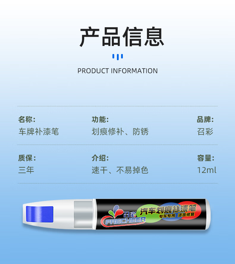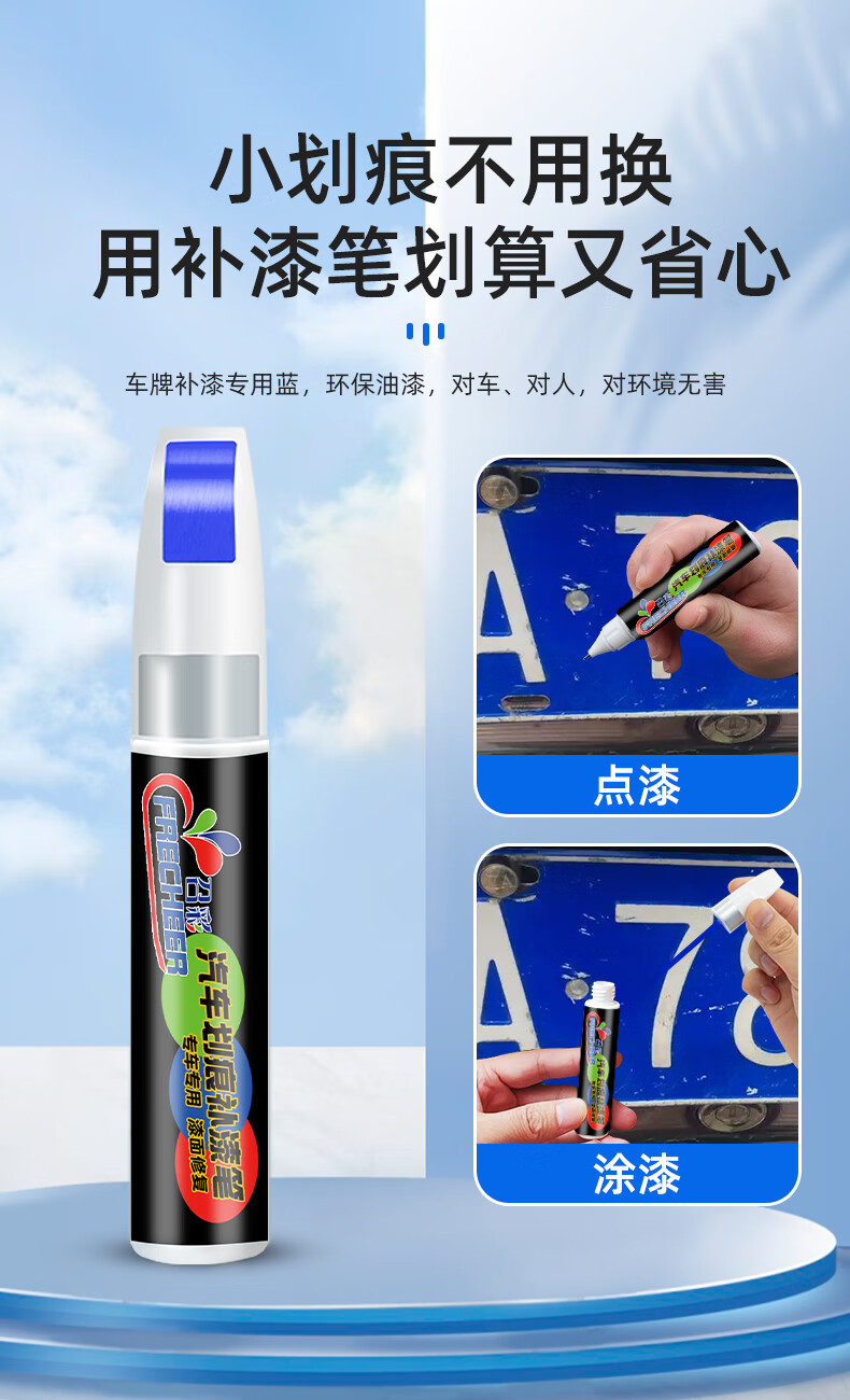 Gongma brand blue touch-up pen white scratch repair license plate scratch renovation repair hand spray paint repair paint pen license plate blue touch-up pen