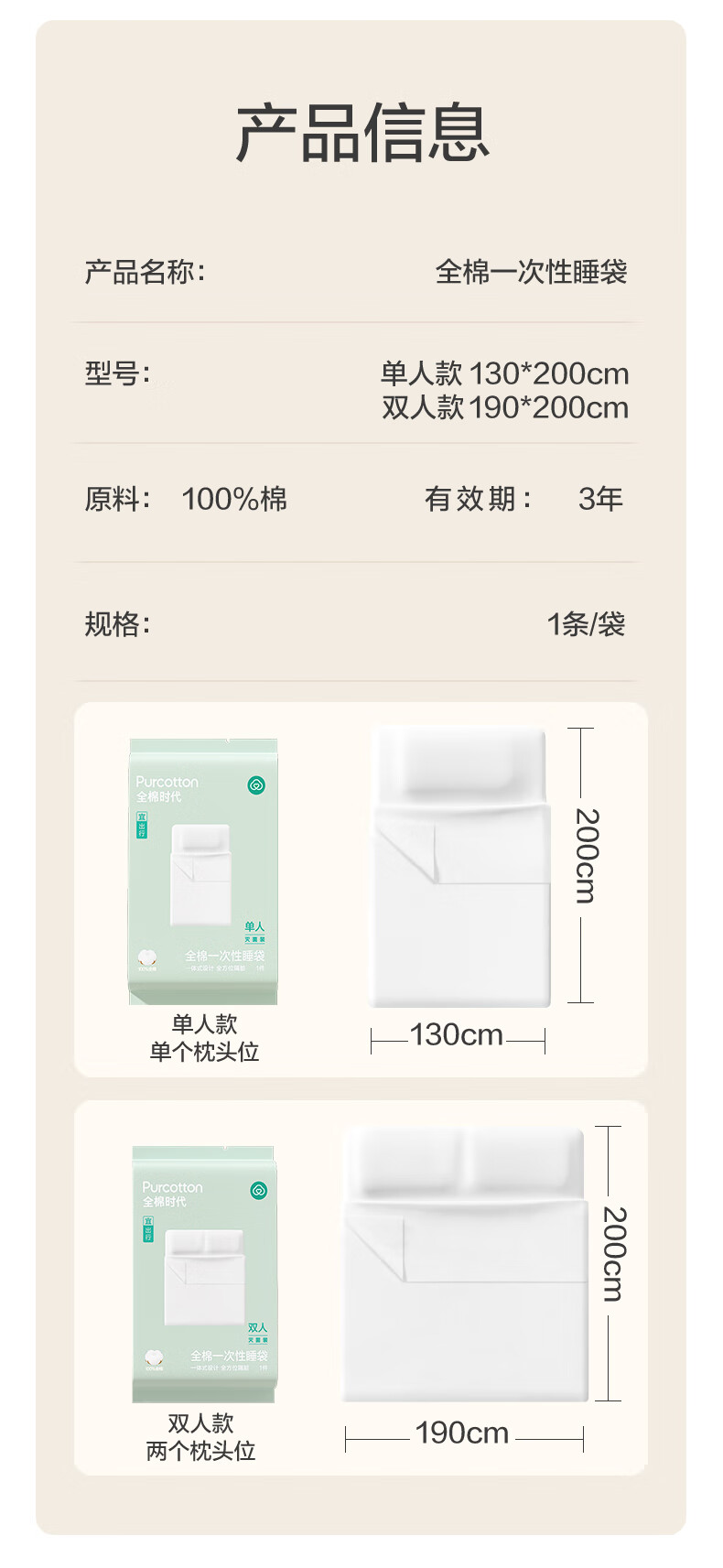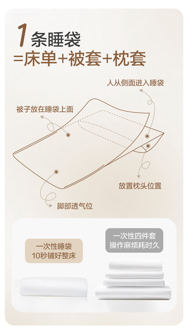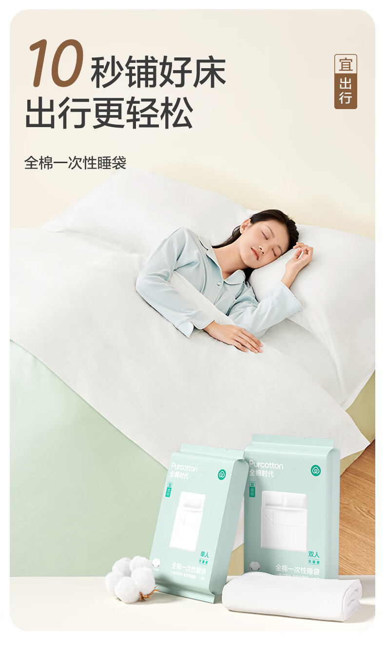 Cotton Era Disposable Bed Sheets, Quilt Covers, Pillowcases, Pure Cotton Hotel Sleeping Bags, Travel Dirt-proof Train Sleeper Four-piece Set, 2 Doubles - 190*200cm