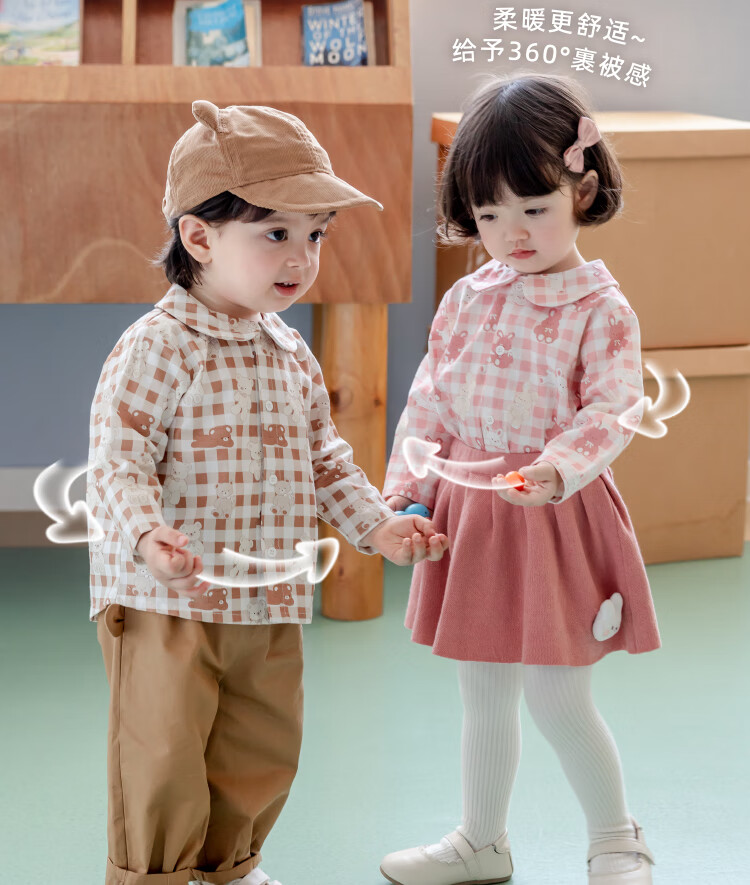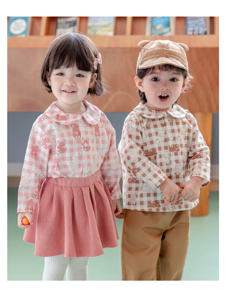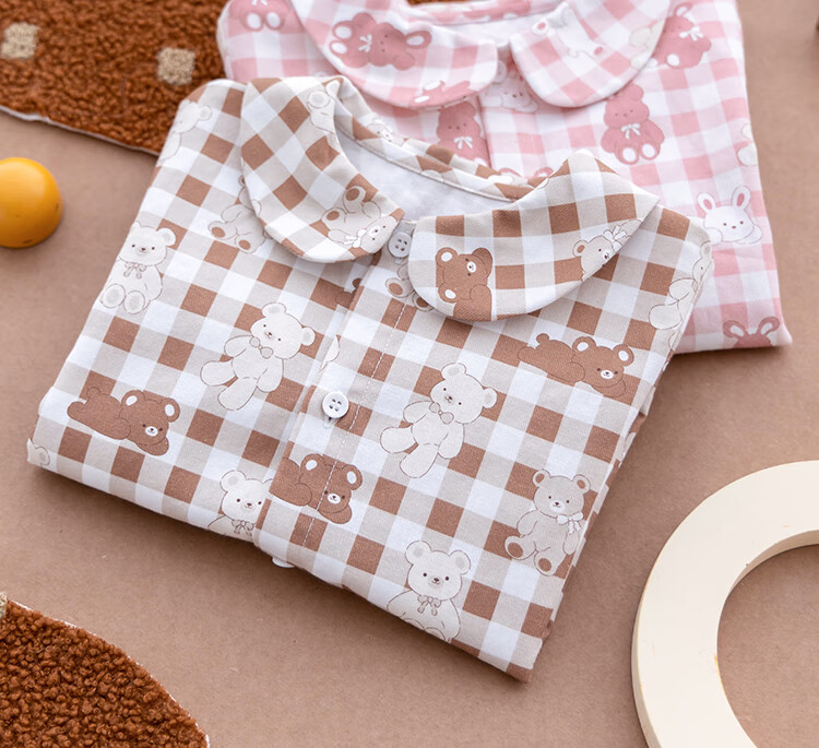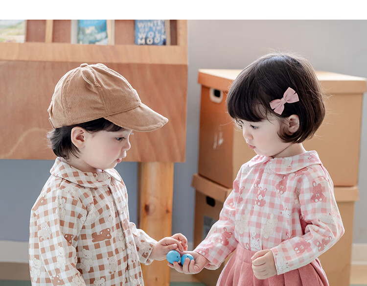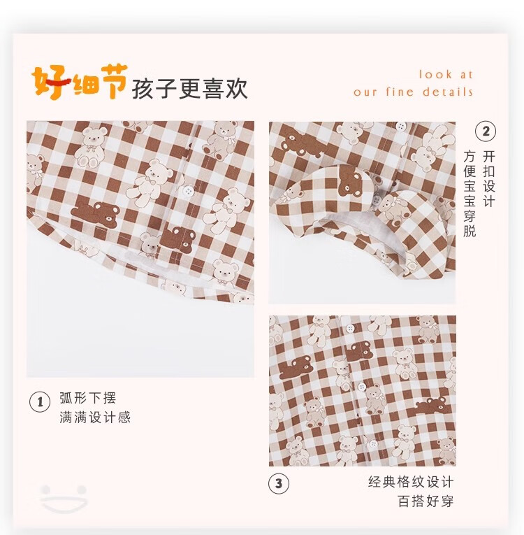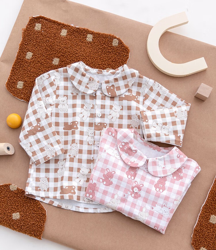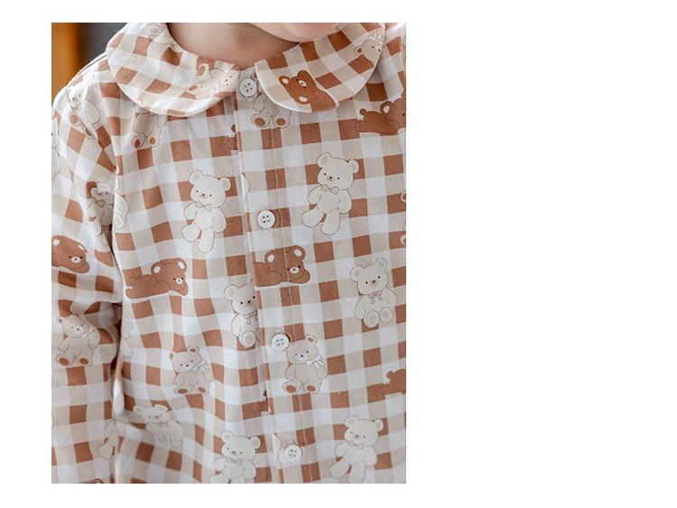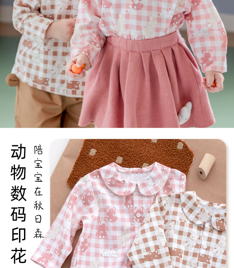 YOUGE infant and toddler autumn new long-sleeved plaid forest bear shirt skin-friendly and breathable children's top Gage Bear 90 cm