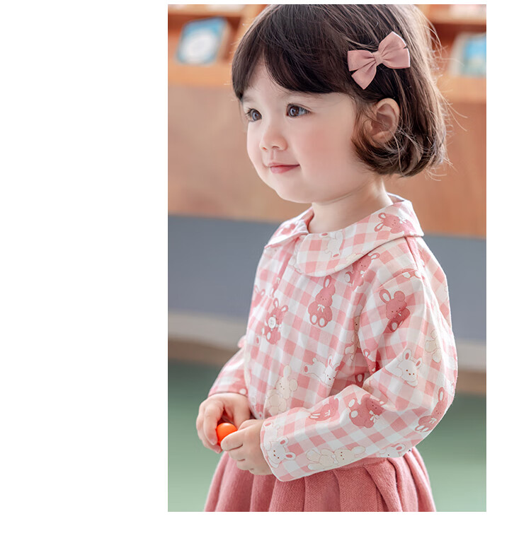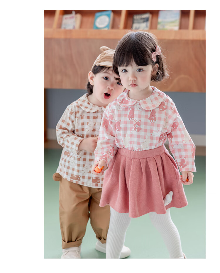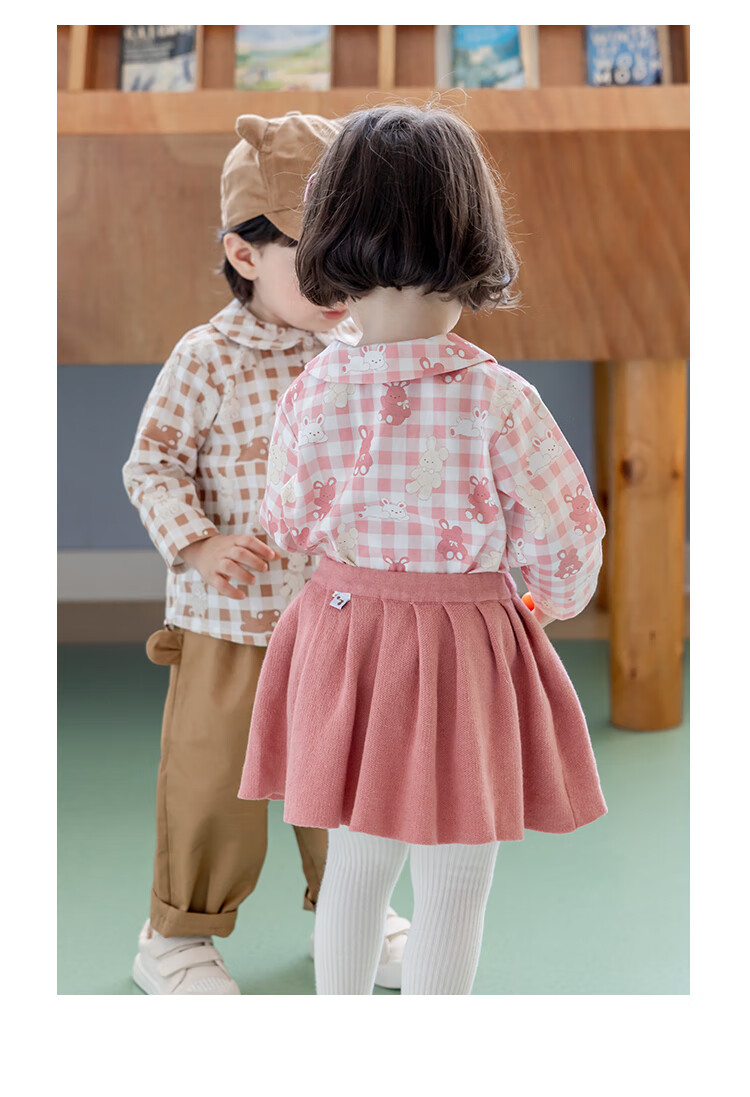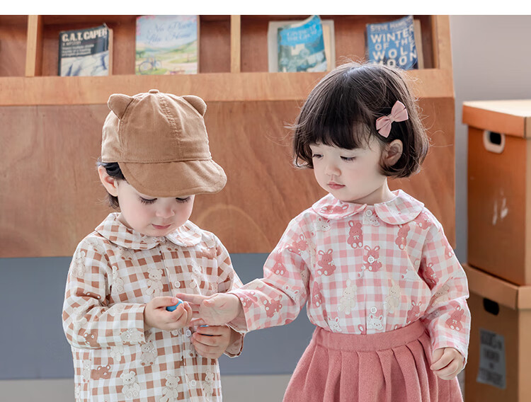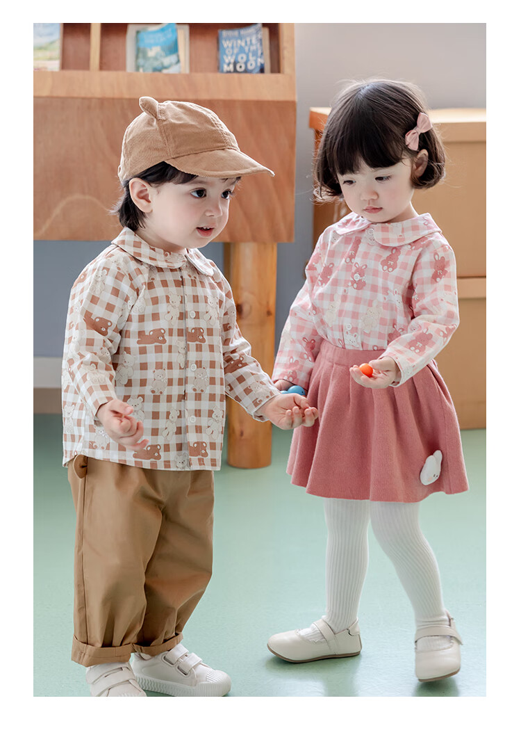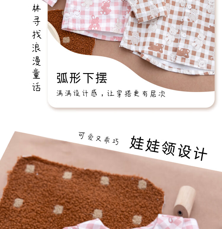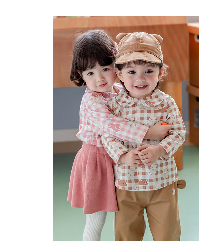 YOUGE infant and toddler autumn new long-sleeved plaid forest bear shirt skin-friendly and breathable children's top Gage Bear 90 cm