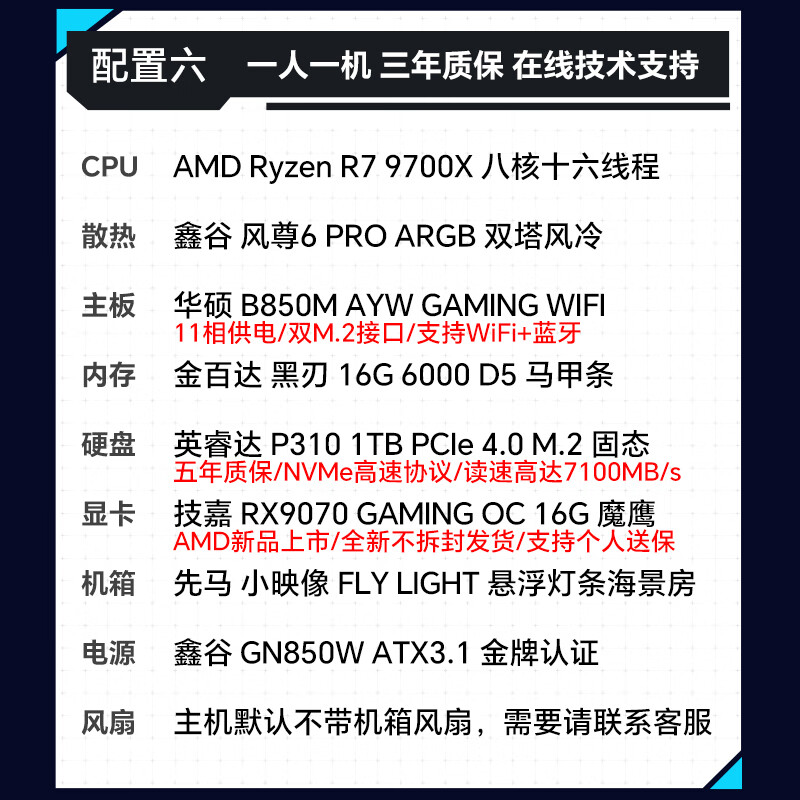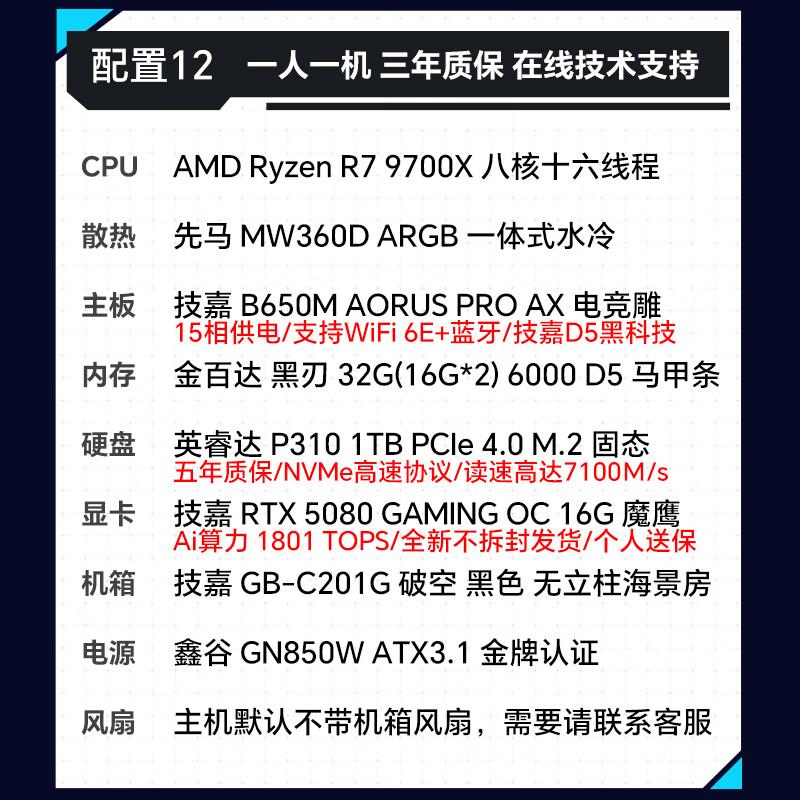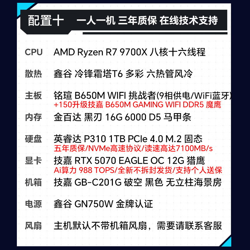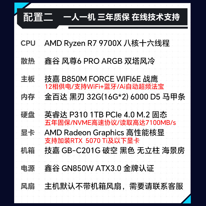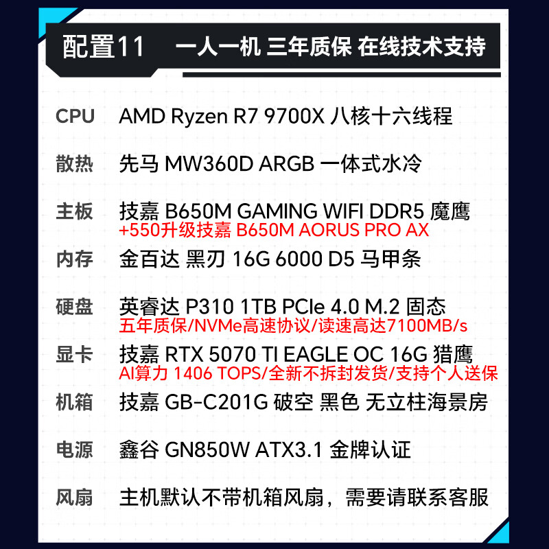Gigabyte AMD Ryzen R7 9700X/RX9070XT/9060XT/5060Ti/5070Ti/5080 e-sports live rendering desktop assembly computer host DIY complete machine with two R7 9700X without graphics card upgraded version
