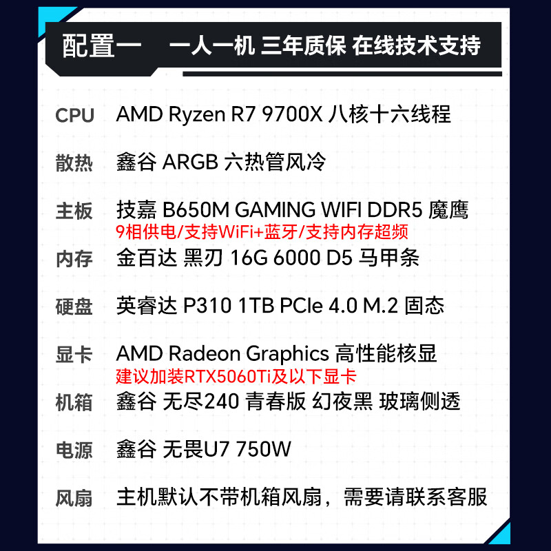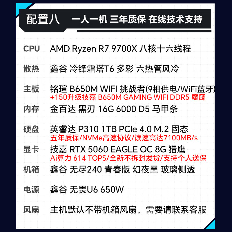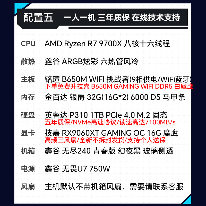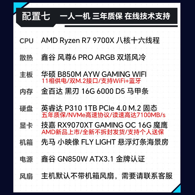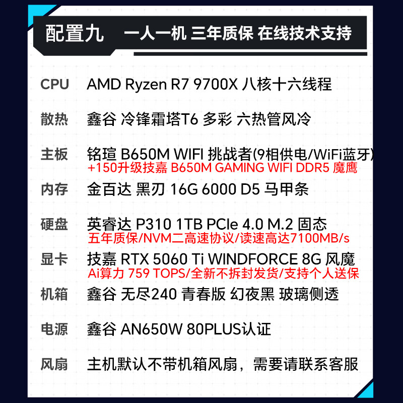 Gigabyte AMD Ryzen R7 9700X/RX9070XT/9060XT/5060Ti/5070Ti/5080 e-sports live rendering desktop assembly computer host DIY complete machine with two R7 9700X without graphics card upgraded version