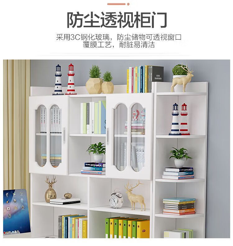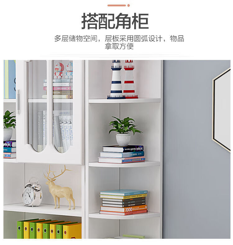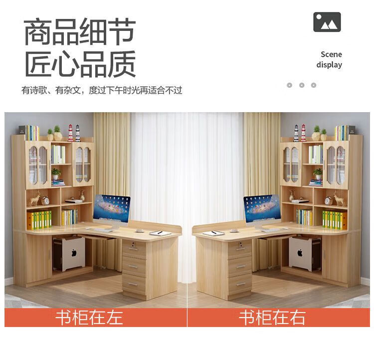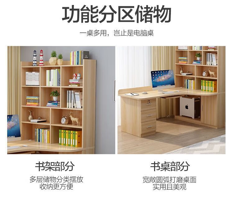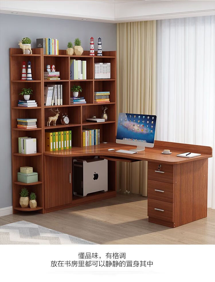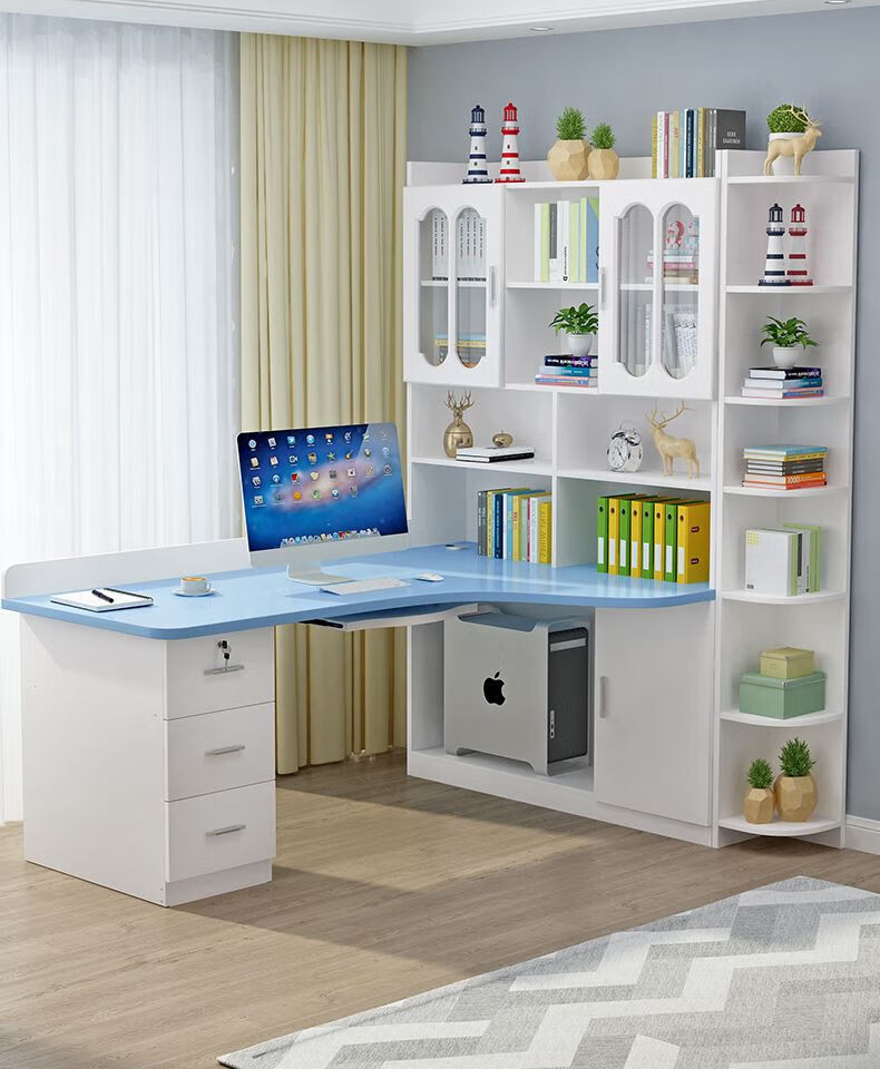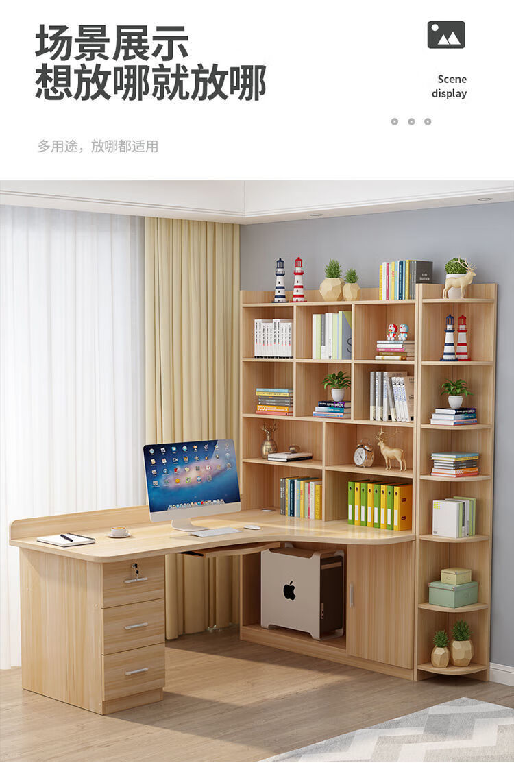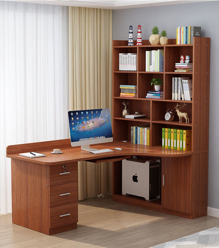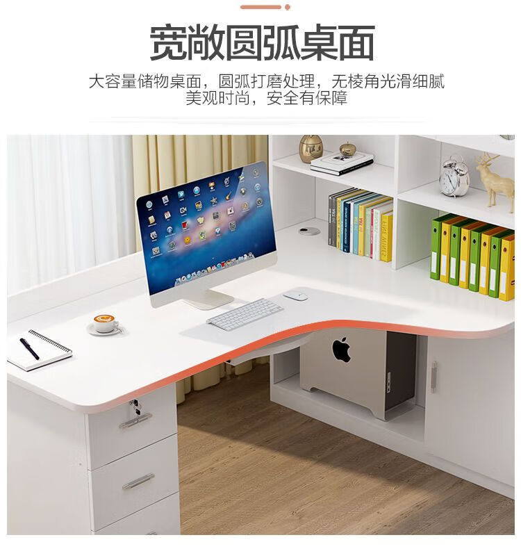Solid wood desk bookshelf combination corner desktop computer desk desk bookcase integrated child bedroom corner study table white 120*80 upper door host model