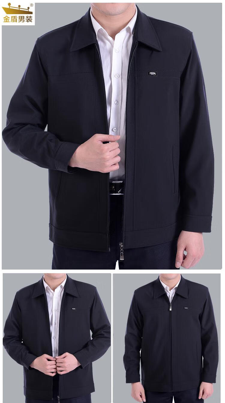 Gold Shield middle-aged and elderly jackets for men and dads, velvet jackets for the elderly, middle-aged men's jackets, elderly men's spring and autumn jackets, cotton and thickened buttoned black 4XL