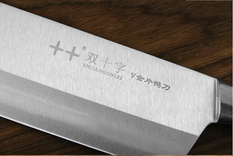 Doppelkreuz-Entenklinge, Leder, Entenbraten, Kochmesser, V-Gold, VG10-Clip, Stahl, scharf, über 60, Weiß x 19