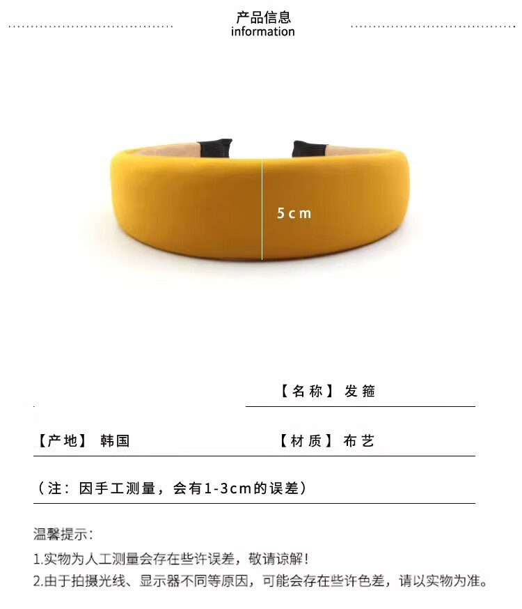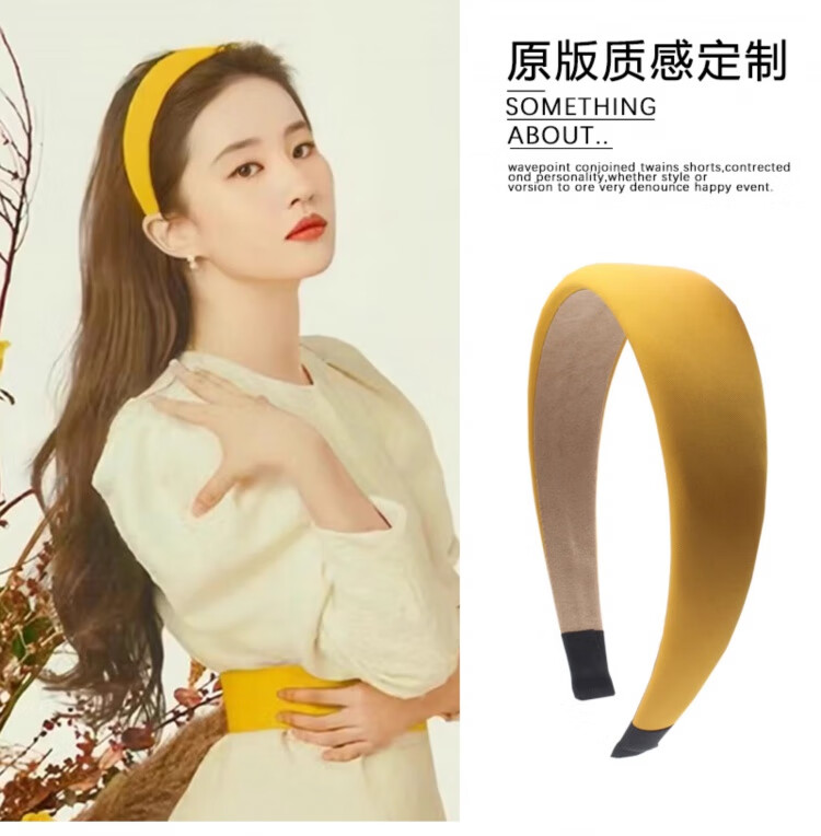 Xiao Panda Rose Story Liu Yifei and Huang Yimei's same yellow satin headband women's fall and winter wide-brimmed versatile outdoor headband yellow